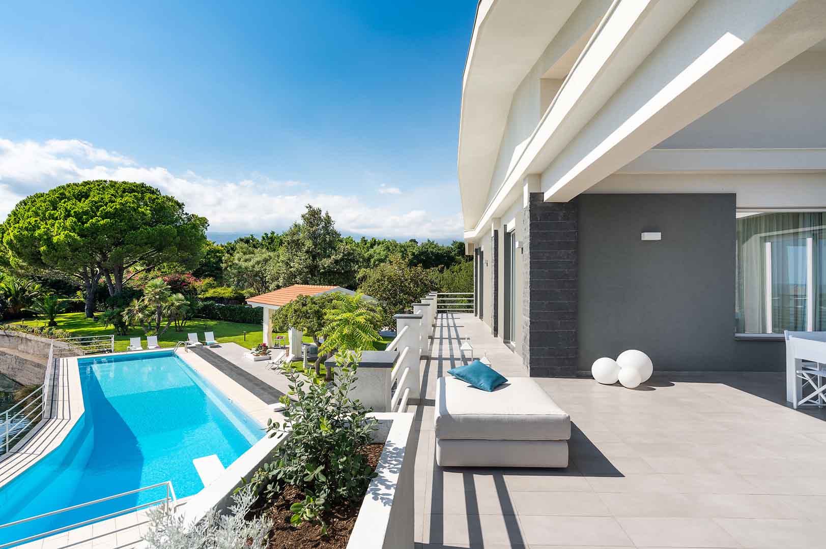 The terrace is ideally laid out so that you can enjoy the Italian sun all together. The swimming pool is like sitting on water, so once in it, you will have the impression of being in the sea ...