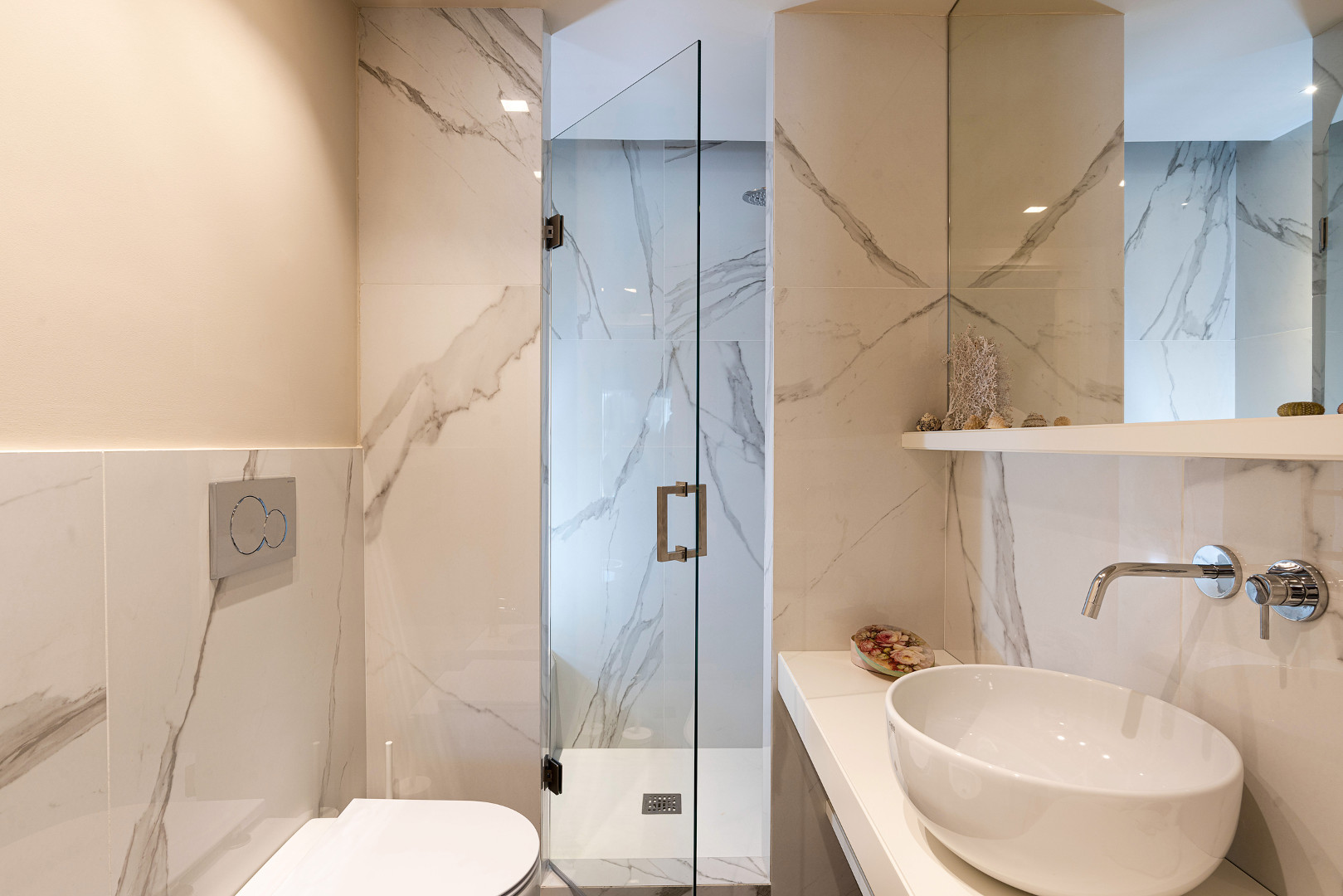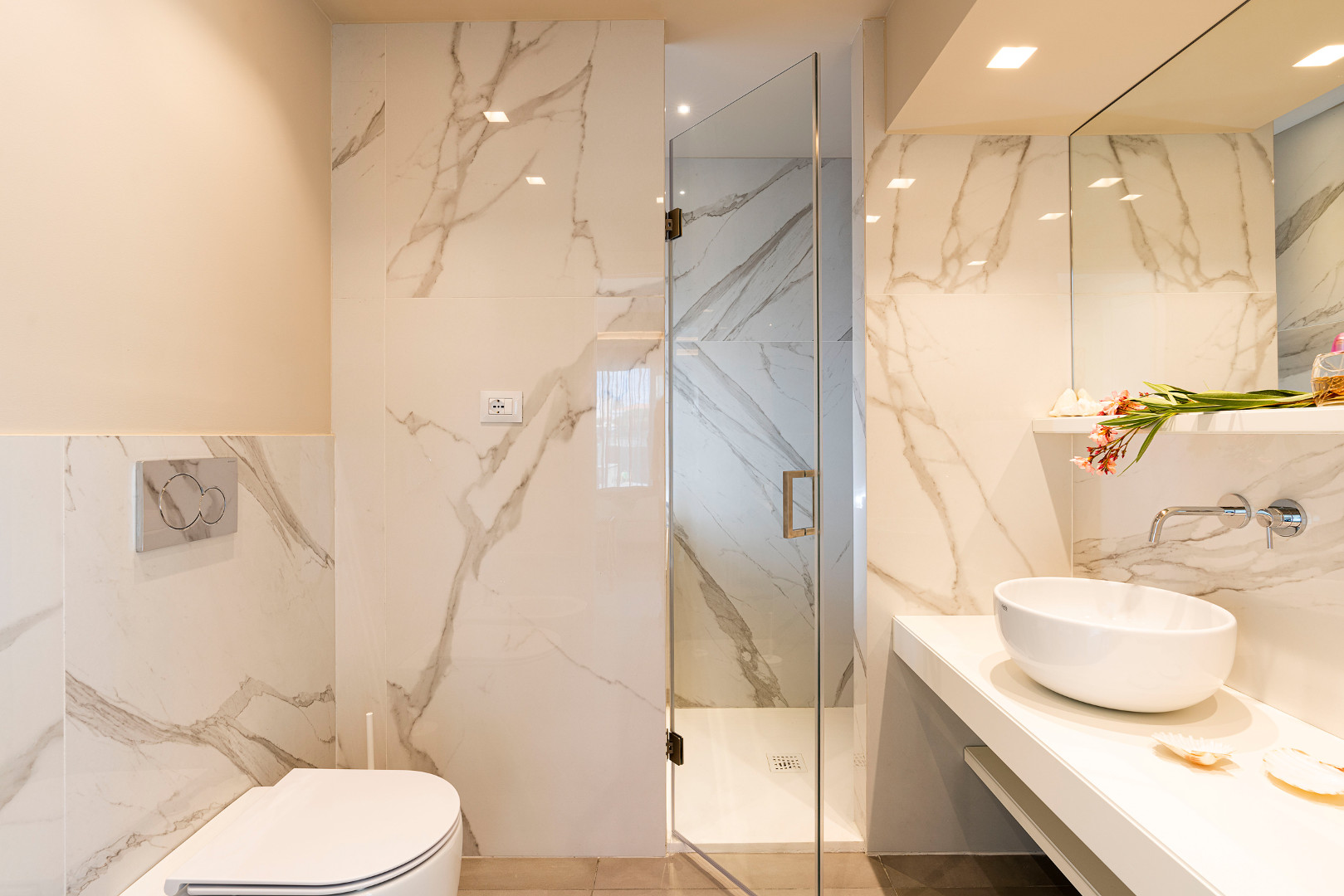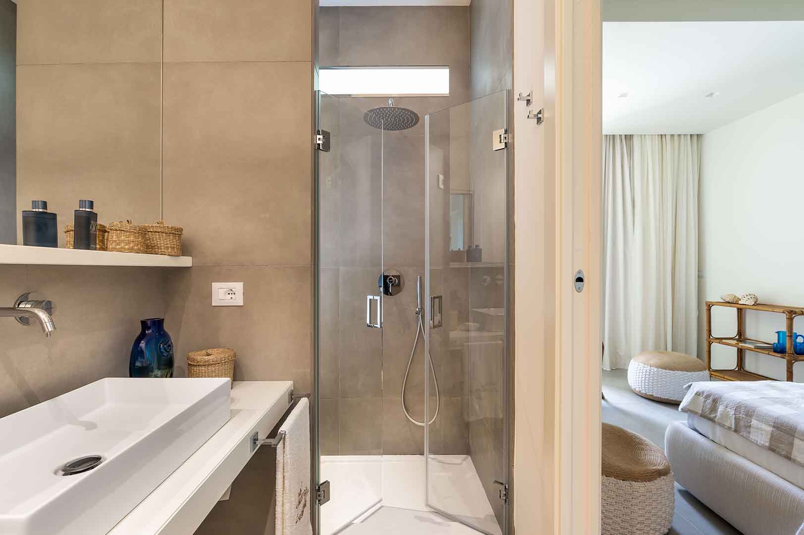 Terrace overlooking the swimming pool with gazebo and sun terrace and Bathroom with shower