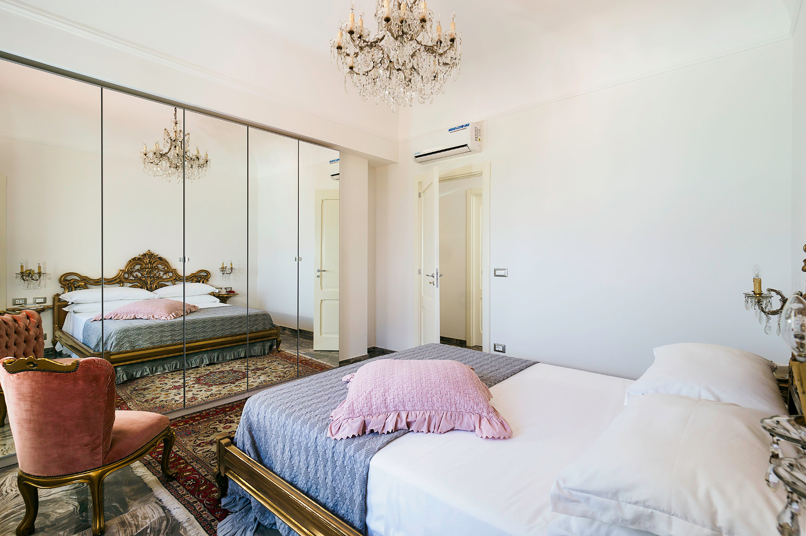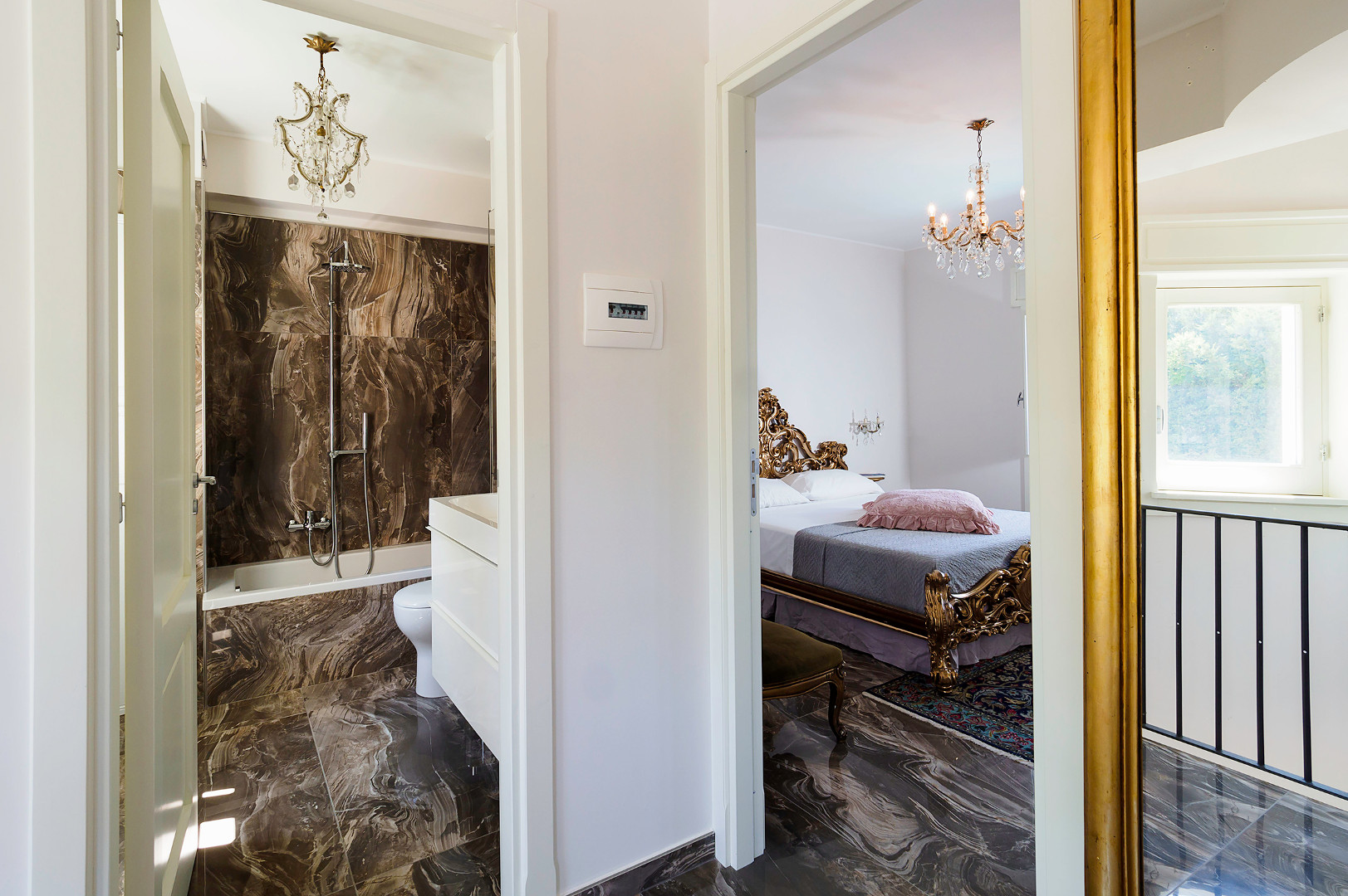 Nestled on the heights, this sumptuous luxury villa overlooks the Cape of Orlando and offers its guests an extraordinary setting. Imposing, the villa stands out particularly for its prestigious character while being contemporary. Crystal chandeliers, marble floors and gilded headboards invite you to chateau life.