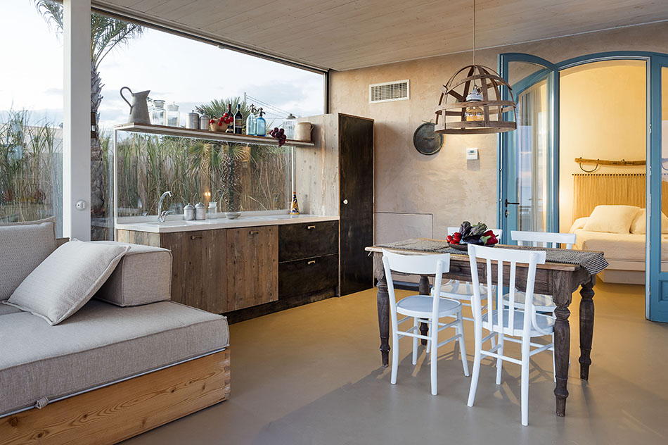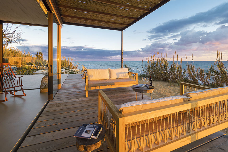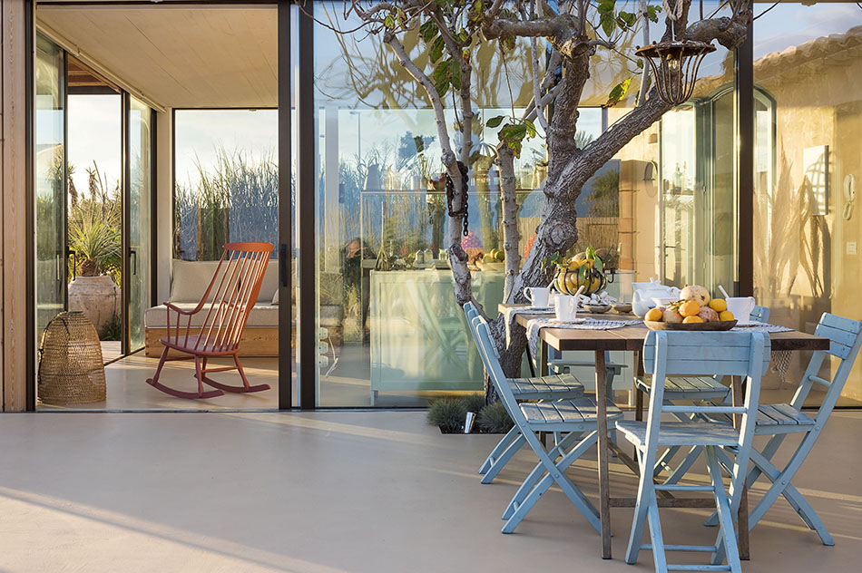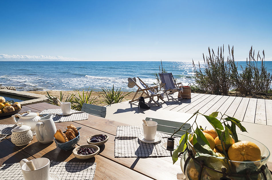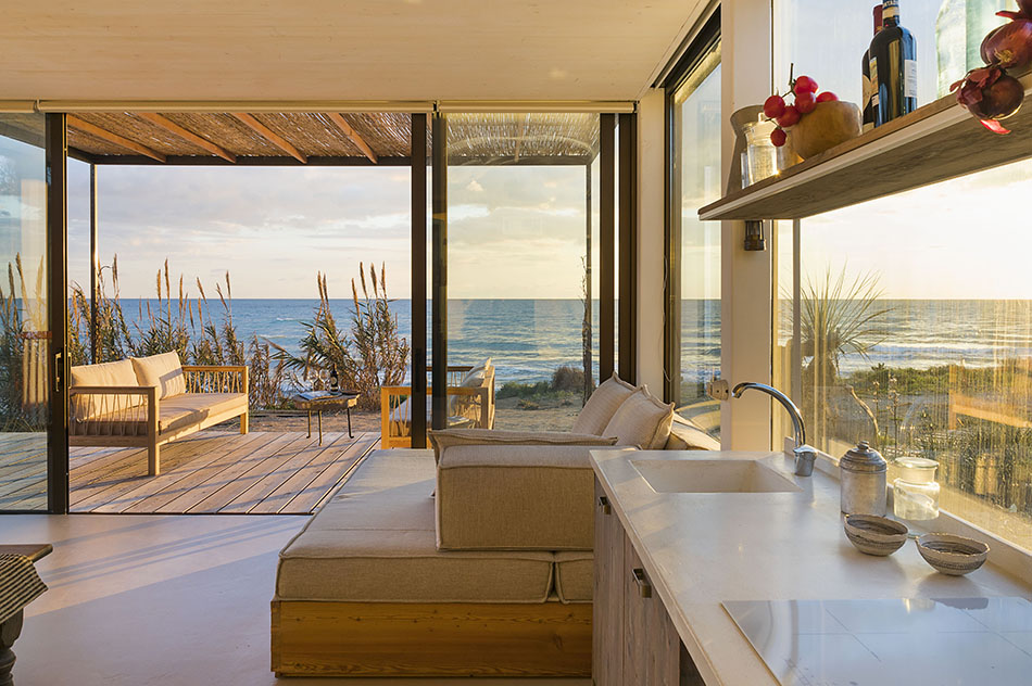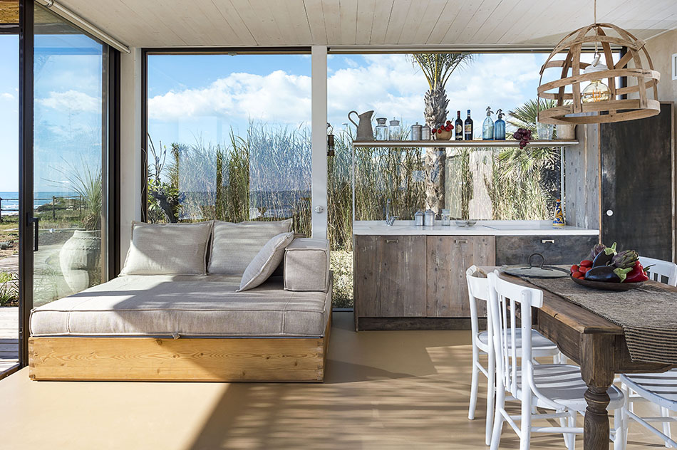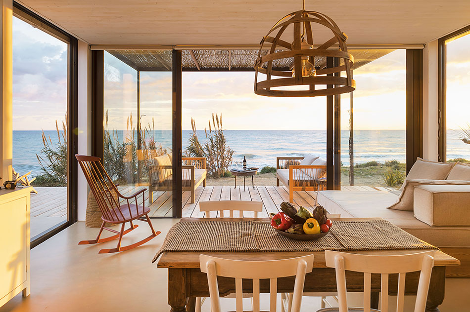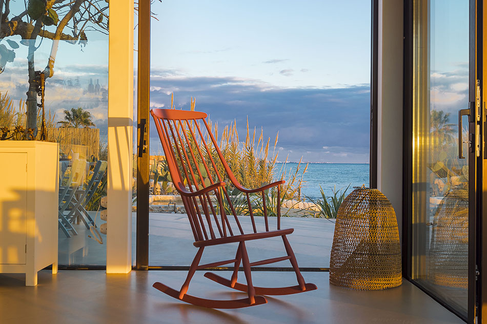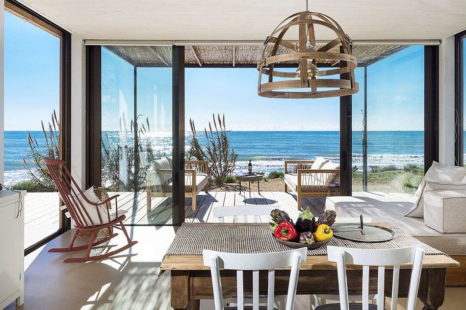 The large glazed living room has been thought of as an extension of the house towards the sea. You will have only a few steps to do to find your feet in the sand.