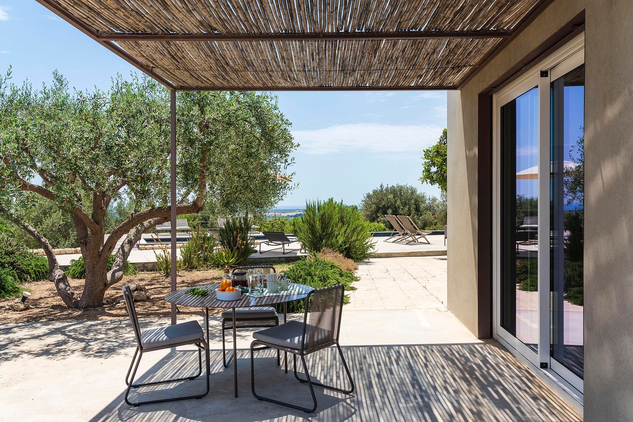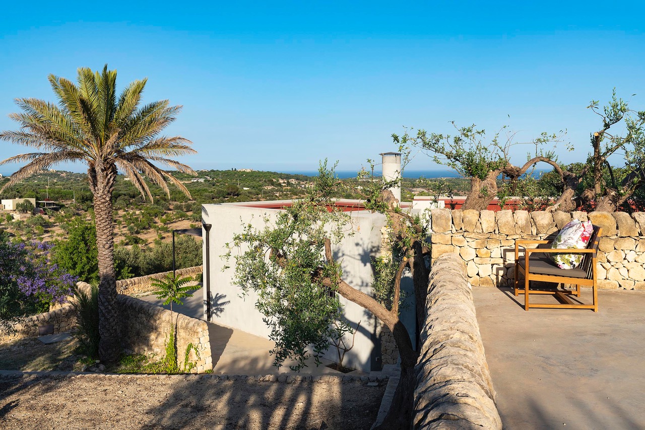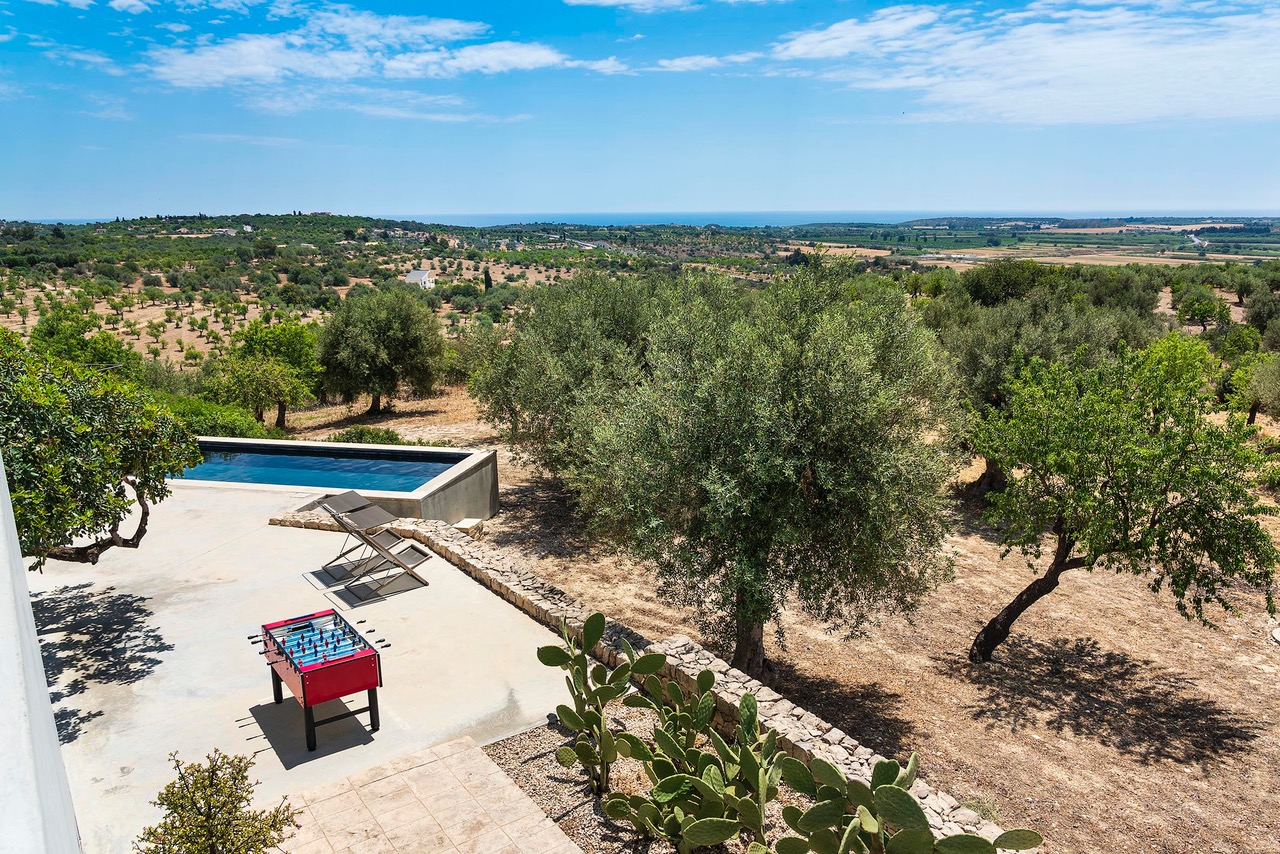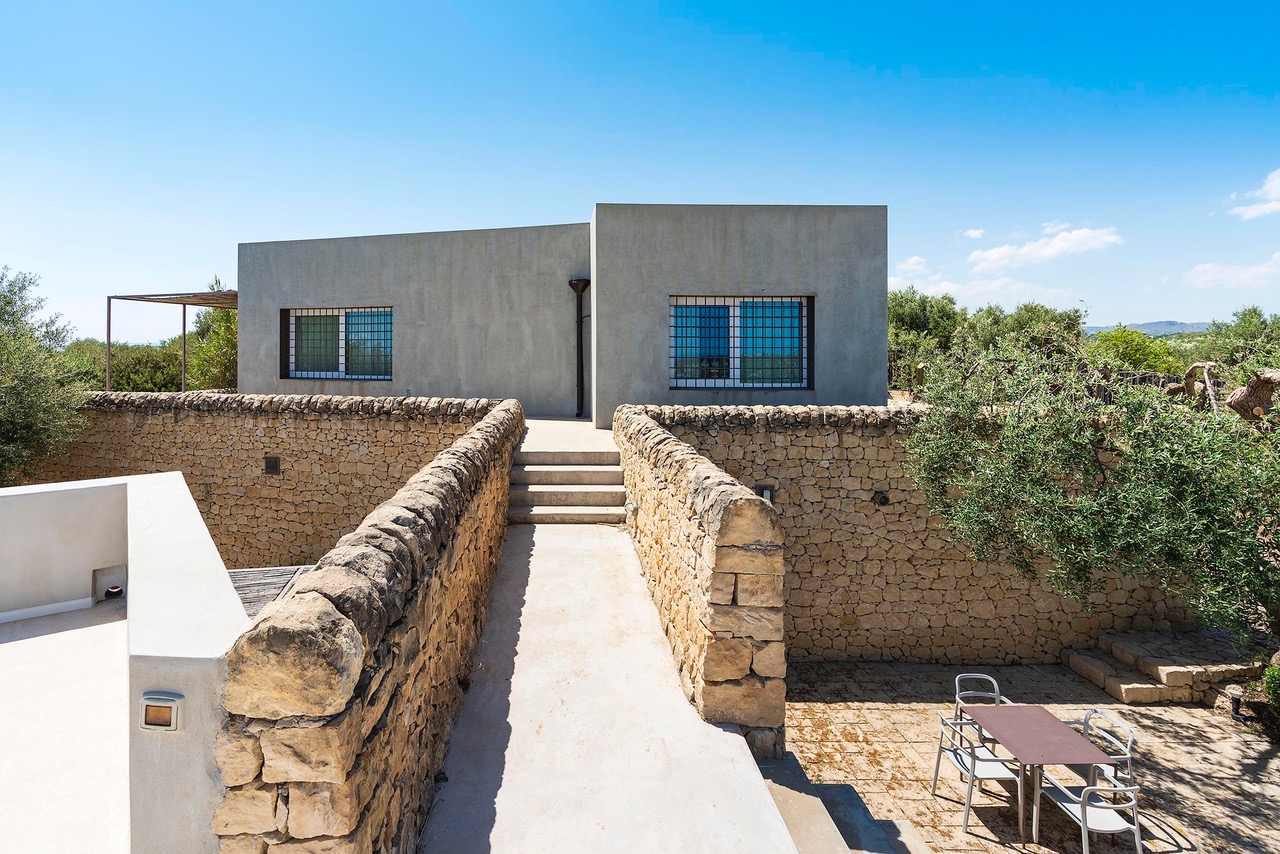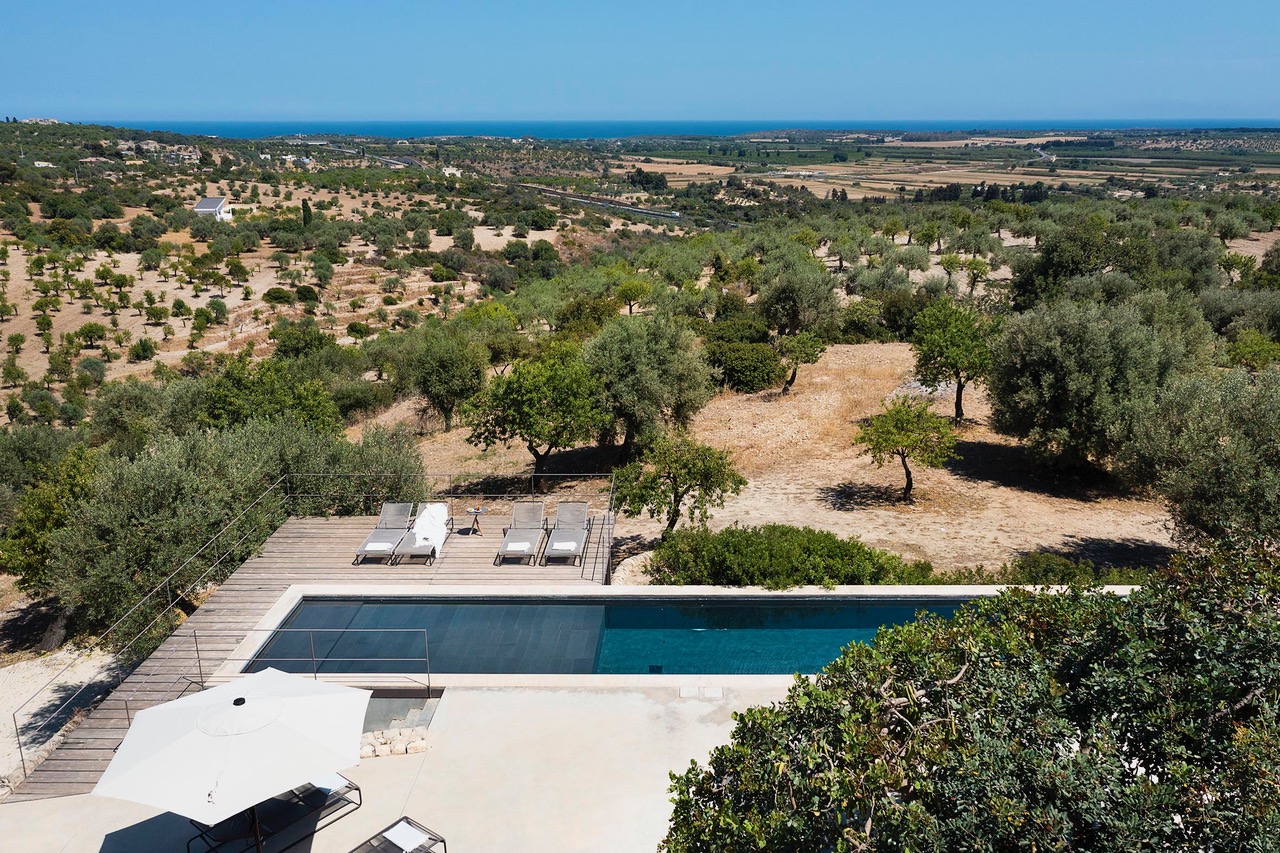 Beautiful villa with private pool located in a dominant position overlooking the Val di Noto to the Mediterranean sea. Indeed, from the villa you can enjoy a breathtaking view of the surrounding countryside where the green of the olive trees contrasts with the yellow of the earth. The modern construction is articulated on three levels, connected both by steps inside as well as stairs and outdoor courtyards. The first part of the villa is devoted to the living space with a large living room and a beautiful dining kitchen, very bright. Indeed, the two rooms have large bay windows as well as terrace access. The second part is a few steps higher and includes 2 bedrooms each with en-suite bathroom. The third part in a dominant position has it also 2 bedrooms with private bathrooms. Each level has a delimited and connected terrace by typical low walls and stone stairs. The main terrace has a covered area ideal for having breakfast, an outdoor dining area for 8 people and a lounge area. But the most popular place remains the swimming pool, 18m long. The beach portion at the start of the pool is perfect for a tanning session while cooling off. If you prefer to swim in the turquoise waters of the Mediterranean you will be spoiled for choice. The Vendicari nature reserve offers many possibilities between small wild beaches difficult to access and large beaches of fine and clear sand, all on the edge of crystal clear water. It is possible to get a closer look at the marine fauna that populates the reserve by snorkeling in opposite Calamosque beach. Or browse the mysterious site of the Marble Columns submerged located about a mile from Marzamemi.