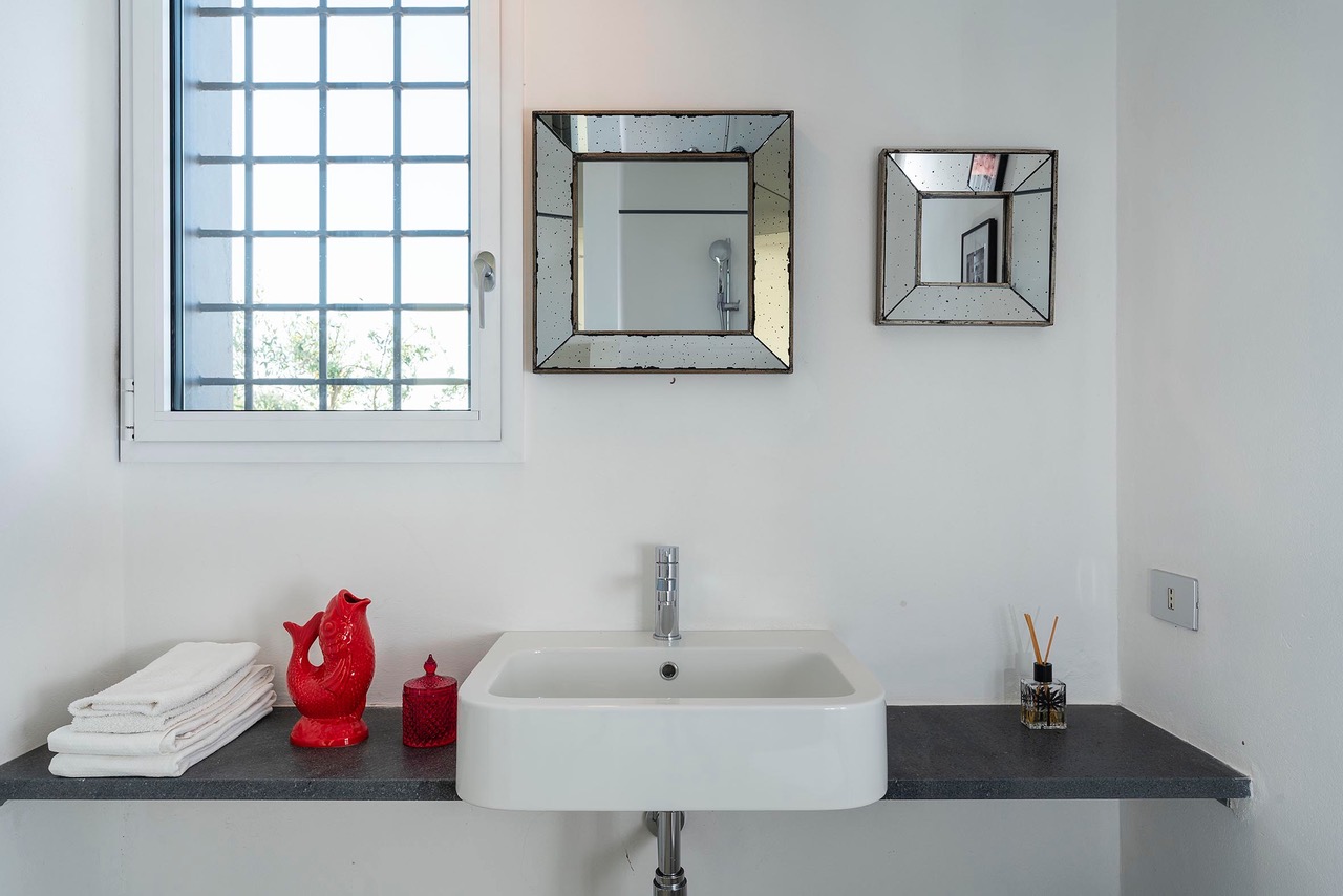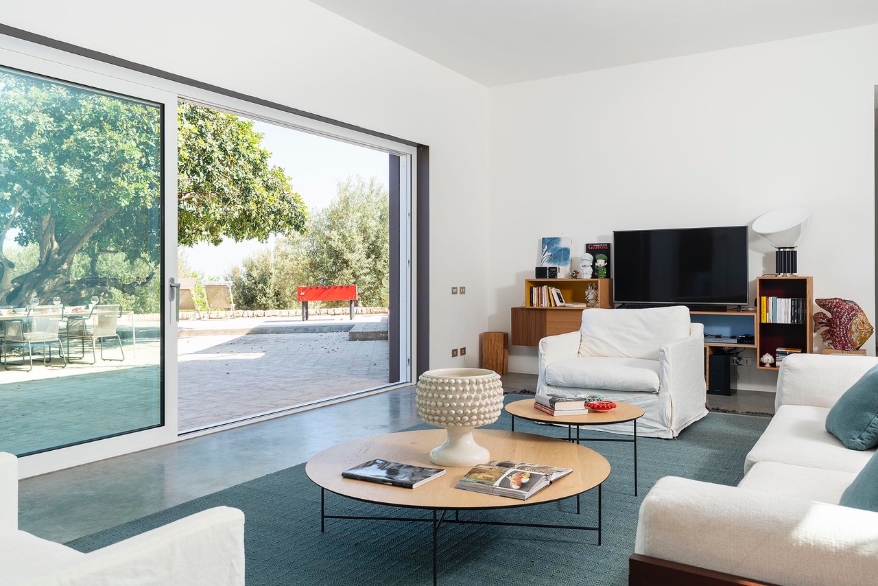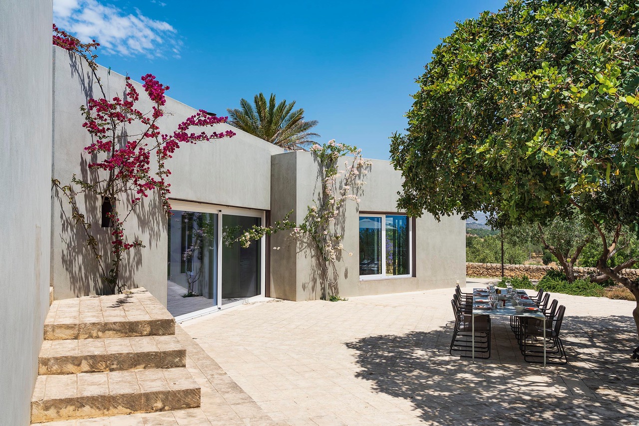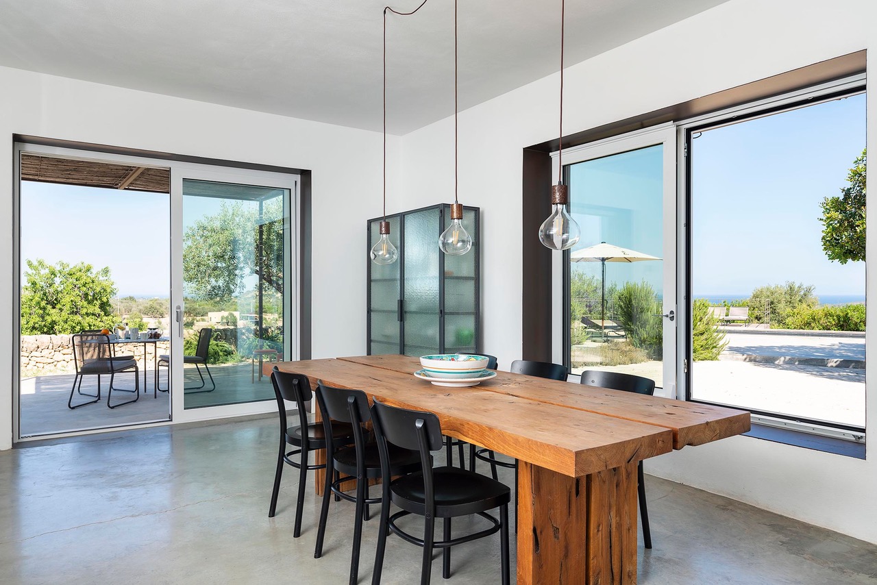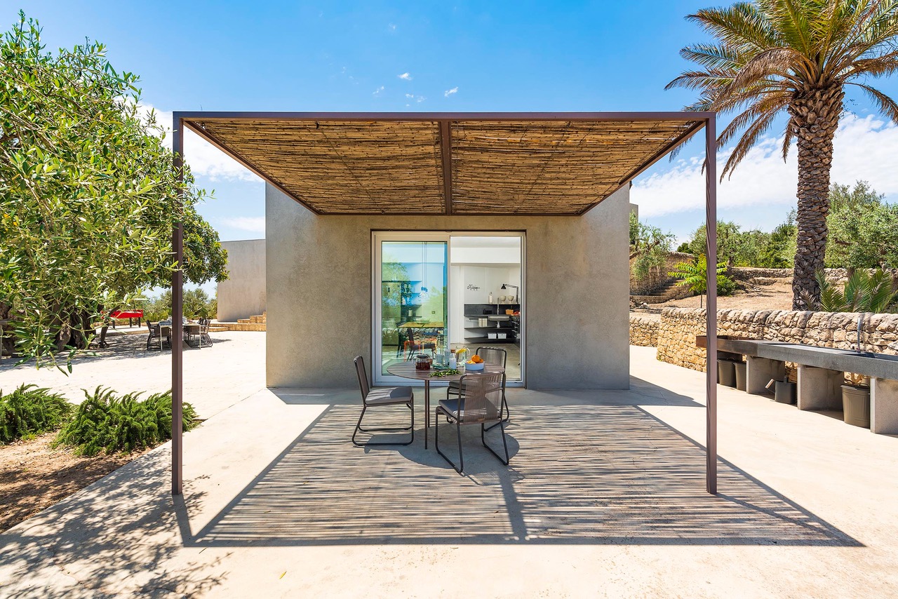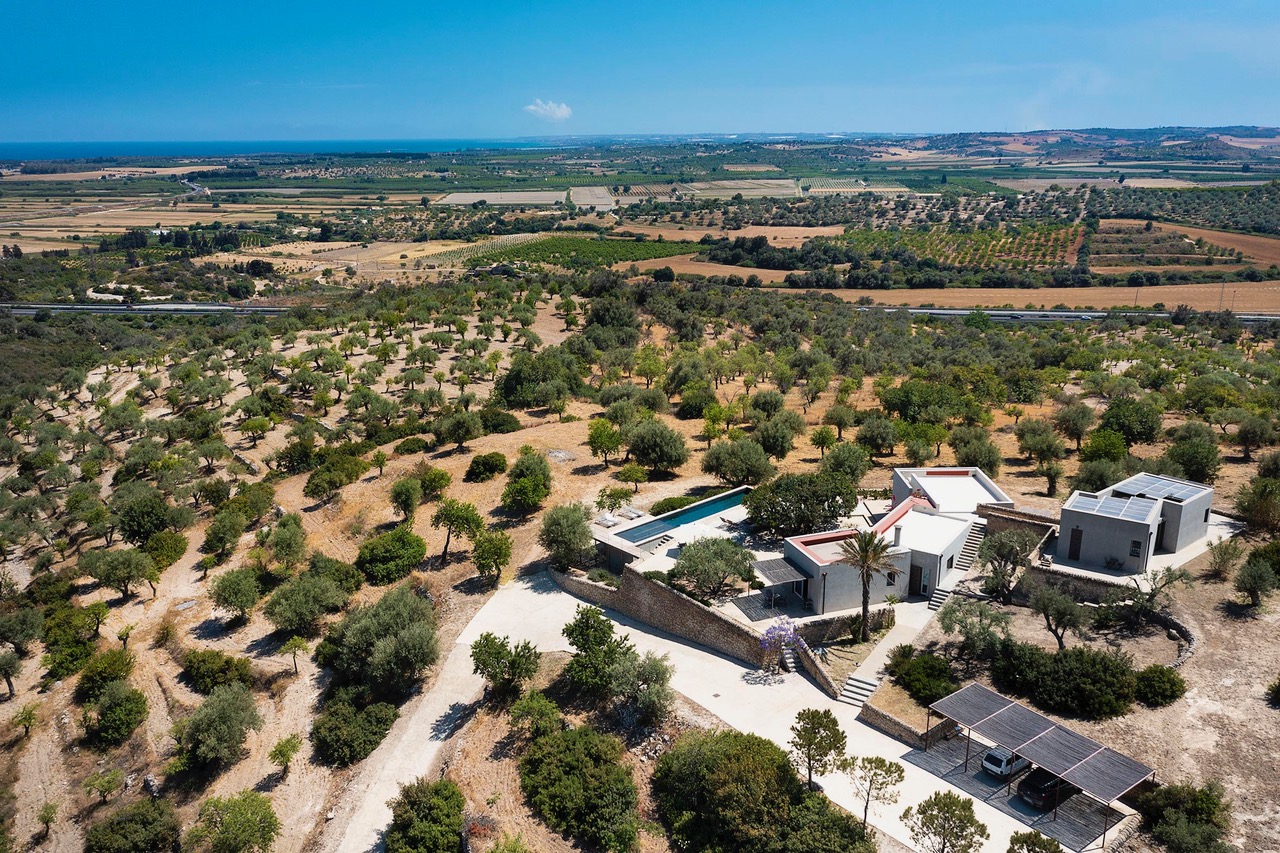 Beautiful villa with private pool located in a dominant position overlooking the Val di Noto to the Mediterranean sea. Indeed, from the villa you can enjoy a breathtaking view of the surrounding countryside where the green of the olive trees contrasts with the yellow of the earth. The modern construction is articulated on three levels, connected both by steps inside as well as stairs and outdoor courtyards. The first part of the villa is devoted to the living space with a large living room and a beautiful dining kitchen, very bright. Indeed, the two rooms have large bay windows as well as terrace access. The second part is a few steps higher and includes 2 bedrooms each with en-suite bathroom. The third part in a dominant position has it also 2 bedrooms with private bathrooms. Each level has a delimited and connected terrace by typical low walls and stone stairs. The main terrace has a covered area ideal for having breakfast, an outdoor dining area for 8 people and a lounge area. But the most popular place remains the swimming pool, 18m long. The beach portion at the start of the pool is perfect for a tanning session while cooling off. If you prefer to swim in the turquoise waters of the Mediterranean you will be spoiled for choice. The Vendicari nature reserve offers many possibilities between small wild beaches difficult to access and large beaches of fine and clear sand, all on the edge of crystal clear water. It is possible to get a closer look at the marine fauna that populates the reserve by snorkeling in opposite Calamosque beach. Or browse the mysterious site of the Marble Columns submerged located about a mile from Marzamemi.