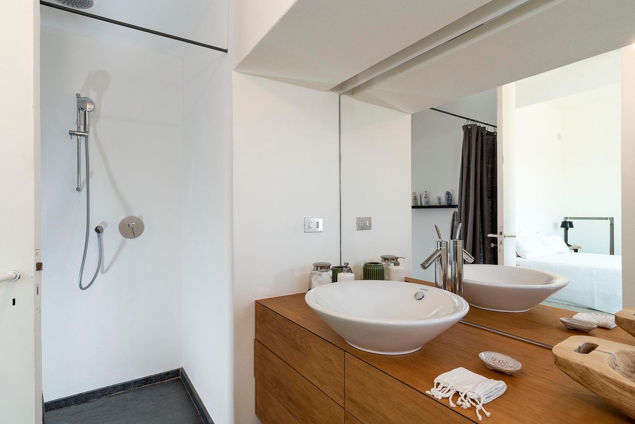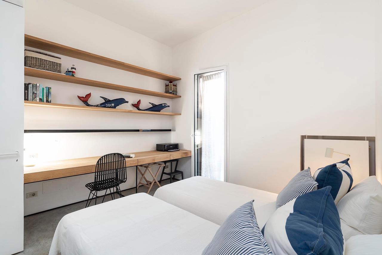 Twin bedroom with terrace access and Ensuite bathroom with shower, wc