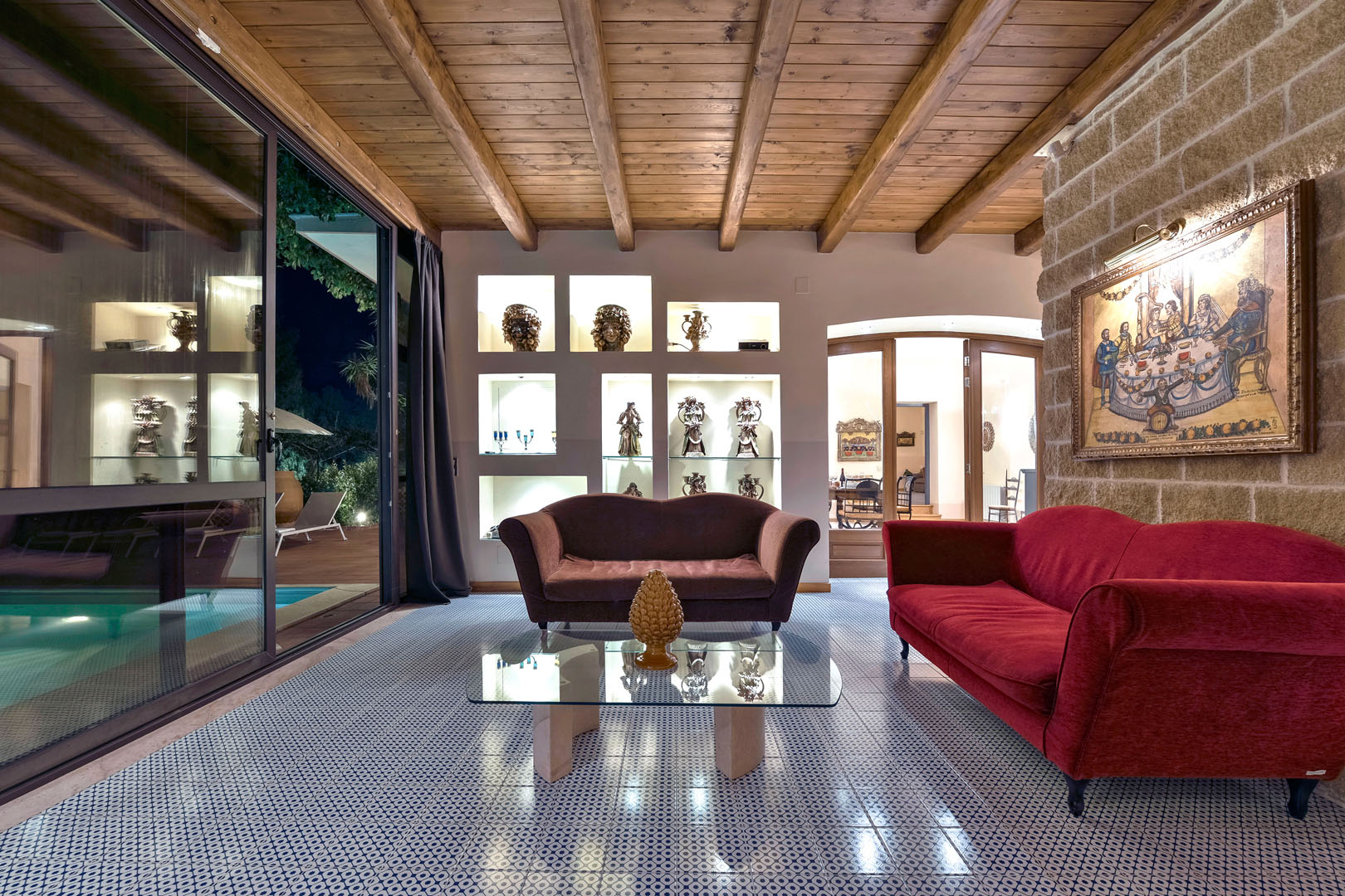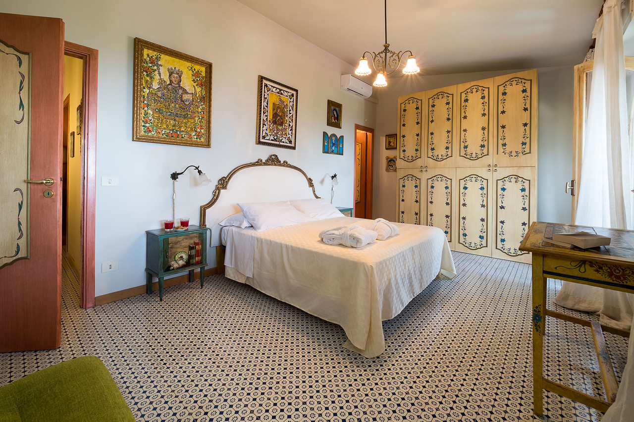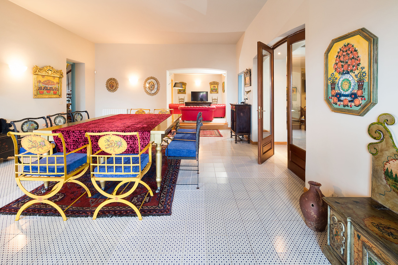 The refined interiors have been beautifully decorated in Sicilian style, from traditional ceramic tiles to antique furnishings, imbuing the property with warmth and character.