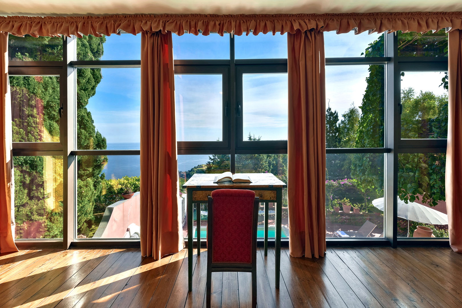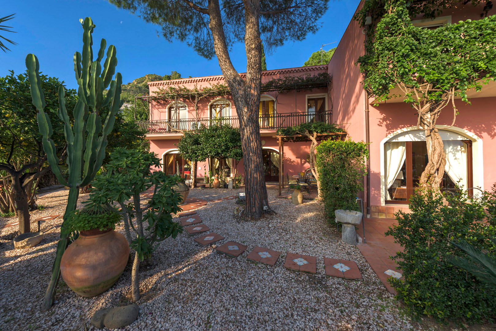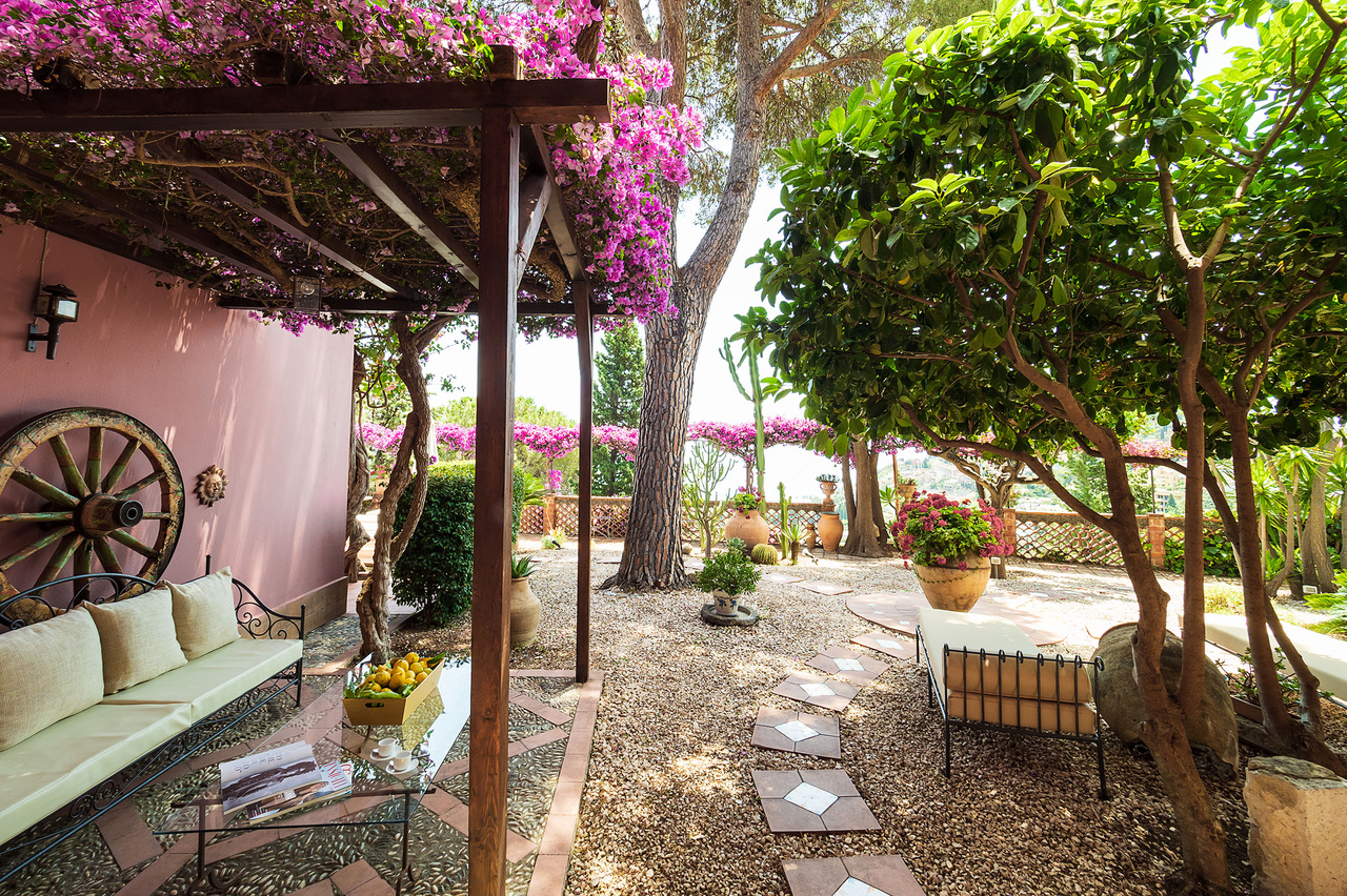 Relax and unwind in a peaceful setting surrounded by cypresses, lemon trees and vivid flowers, while in close proximity to the magnificent Greek Theatre and the elegant Corso Umberto full of chic boutiques.
