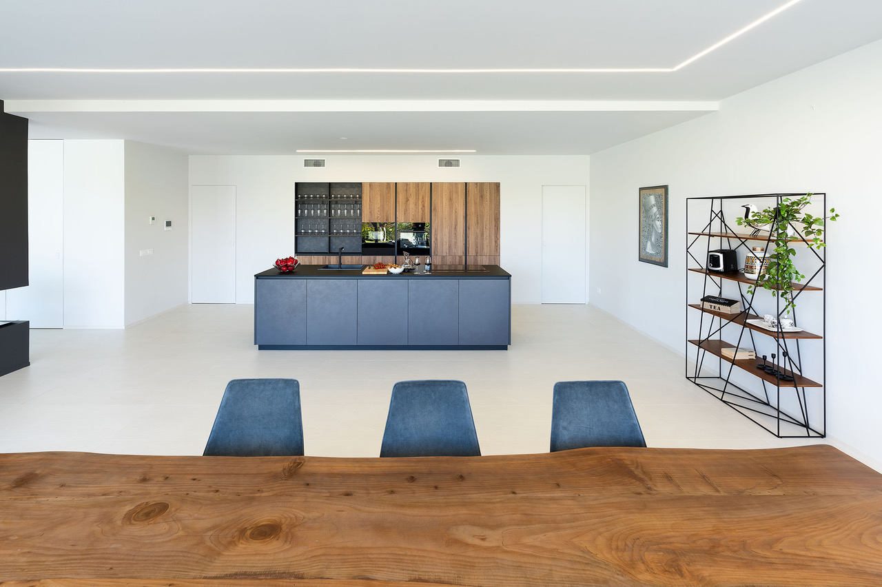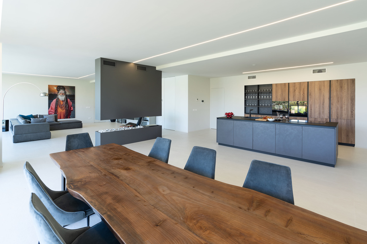 Dining Room and Open kitchen with coffee machine, dishwasher, electric oven, expresso machine, fridge, induction hob, kettle, toaster, microwave oven
