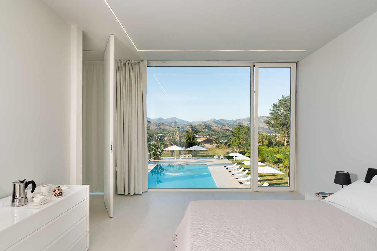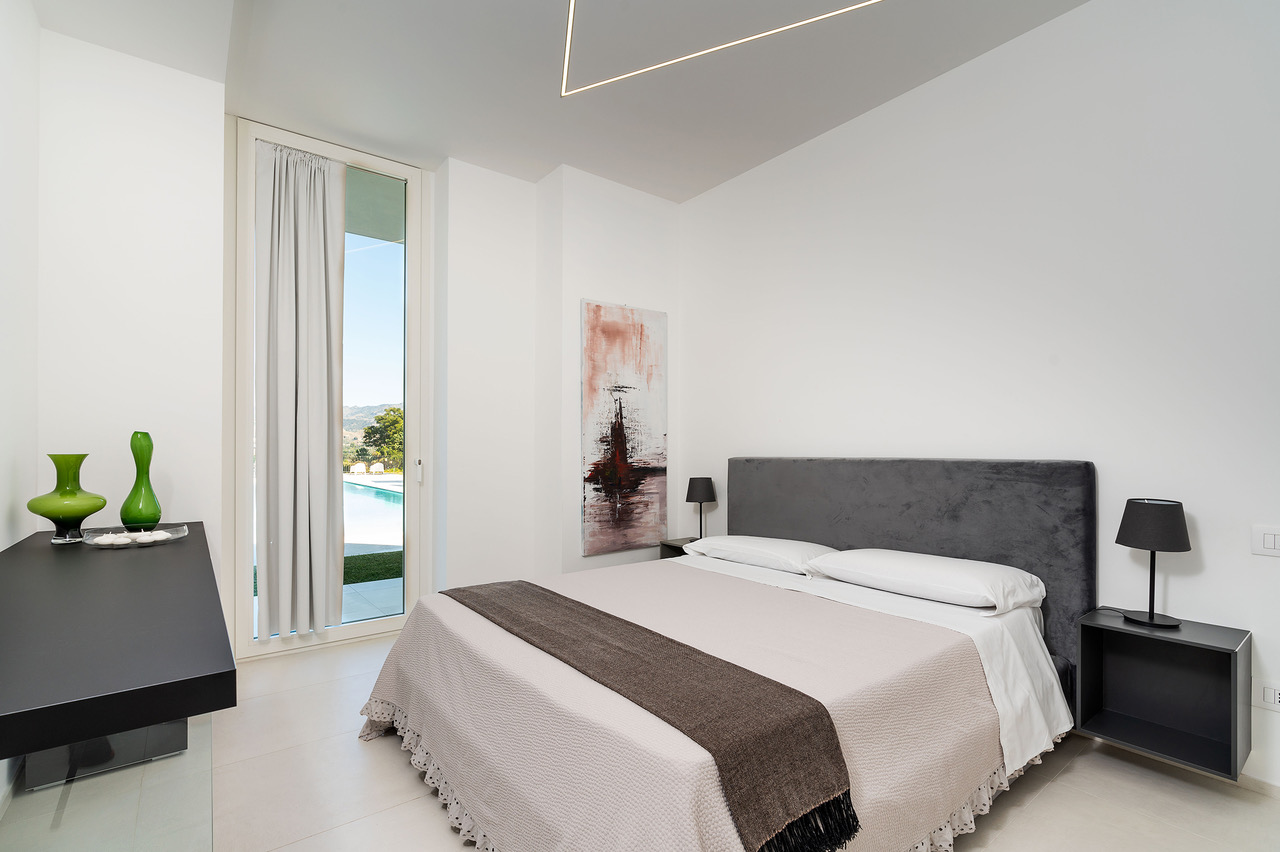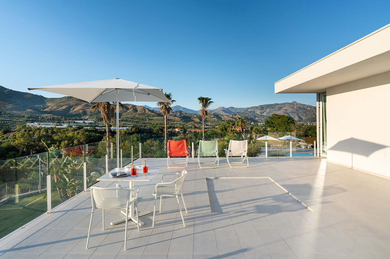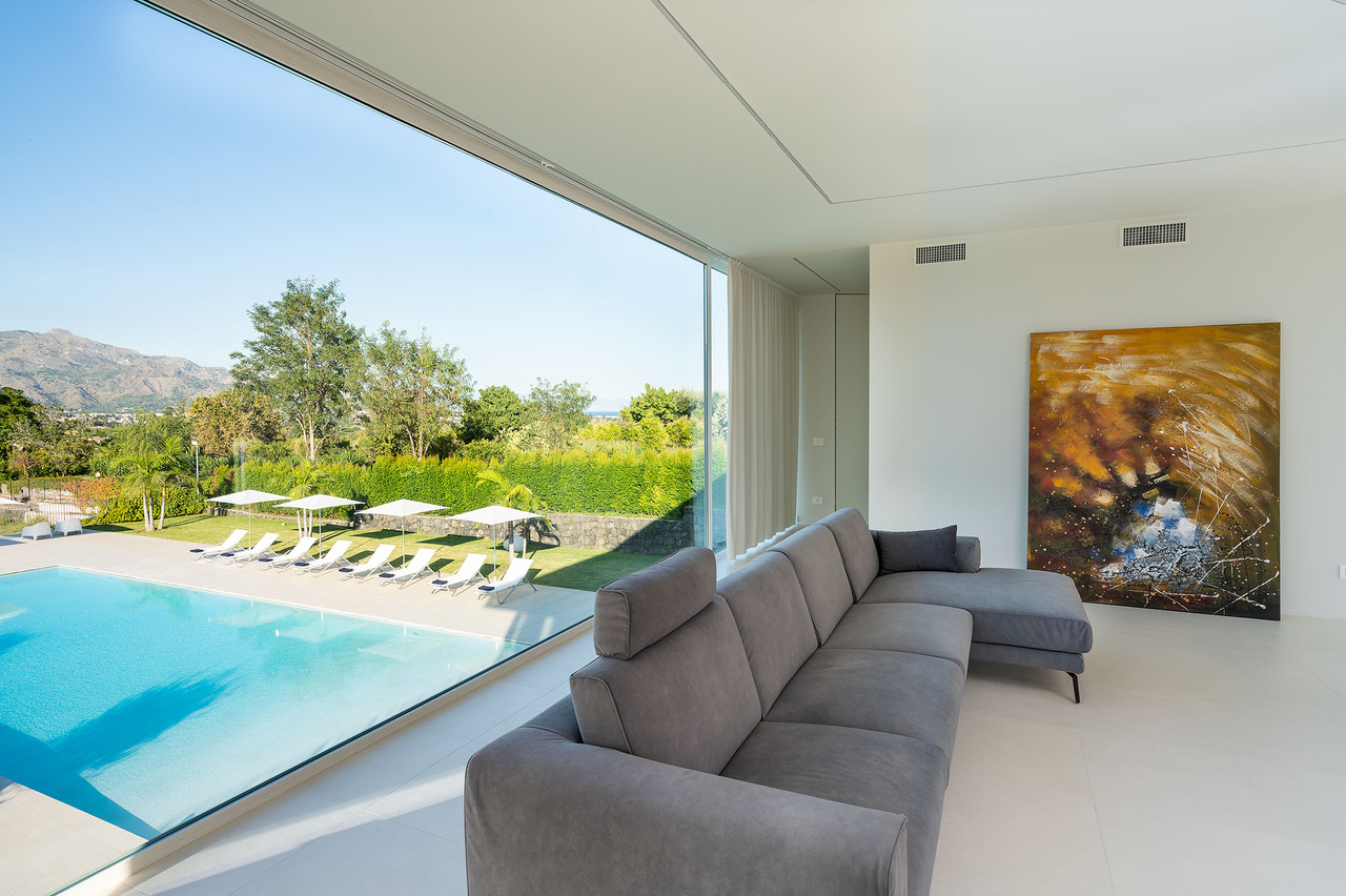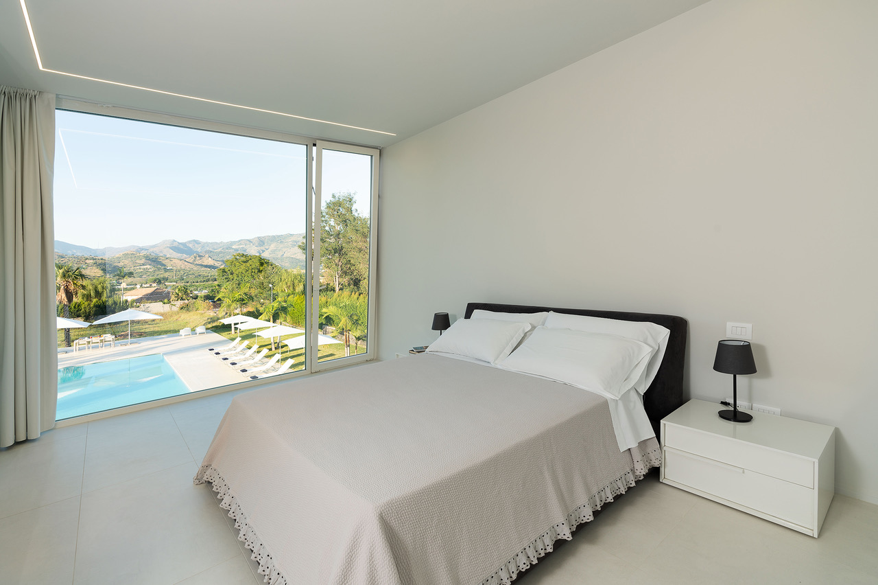 Imagine waking up one morning in the heart of Sicily, facing the mountains ... This is what this sublime contemporary luxury house has to offer. The superb view is appreciable from the living room to the bedrooms, via the terraces. With its horizontal lines, it is proudly setted in a in a green setting. Its very modern structure with large openings as a facade allow all the rooms lighted by he rays of the sun. The choice of this refined decoration allows to highlight the architecture and the style of the house. Everything is very neat right down to the garden. Moreover, a huge inground pool of 21 x 8 m will be your greatest happiness on sunny days.