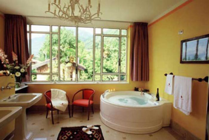 Double bedroom Yellow, lake view with air conditioning and Ensuite bathroom with bath, hydro massage, shower and Equipped Terrace