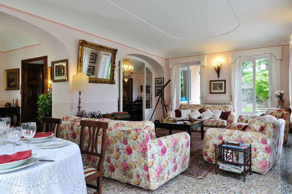 This is a mid XIX century building and has always belonged to the family of Marquis of Rozzano. The villa faces south east, just in the mid lake and has a superb view of the three arms of the lake Como, and the beautiful mountains behind. Its large park has century old trees: sequoias, cedars, oaks, and palms.