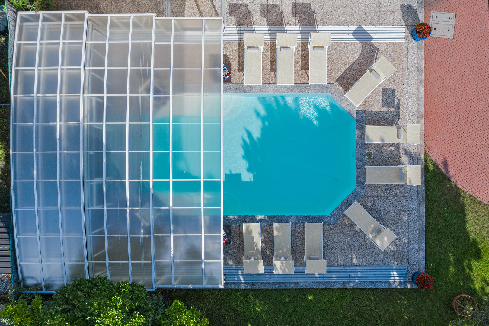Swimming pool private, outdoor, (8m X 5m X 1,2m), heated, protected by a curtain.