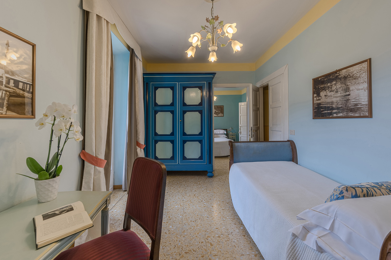 Double bedroom blue - with separable beds with air conditioning and Single bedroom available upon request and with extra cost, no A/C and Ensuite bathroom with shower