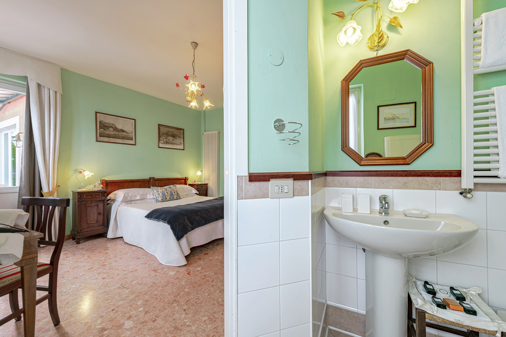 Double bedroom green - with separable beds with balcony, air conditioning and Ensuite bathroom with shower