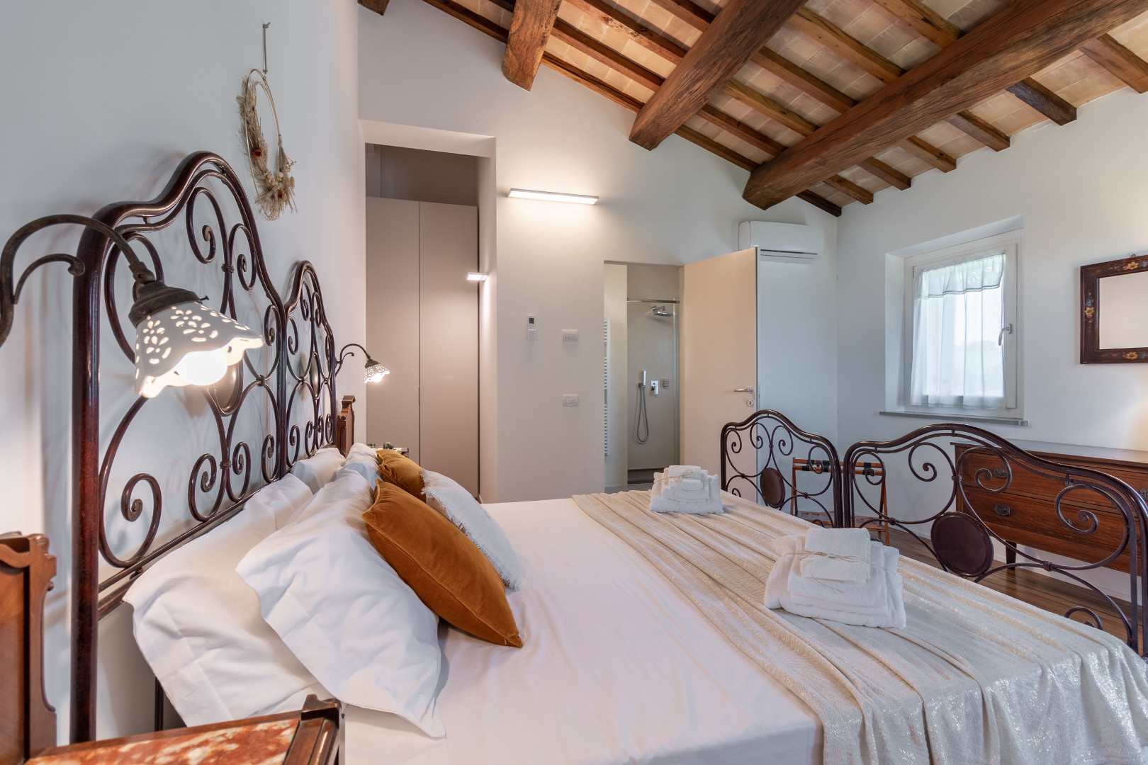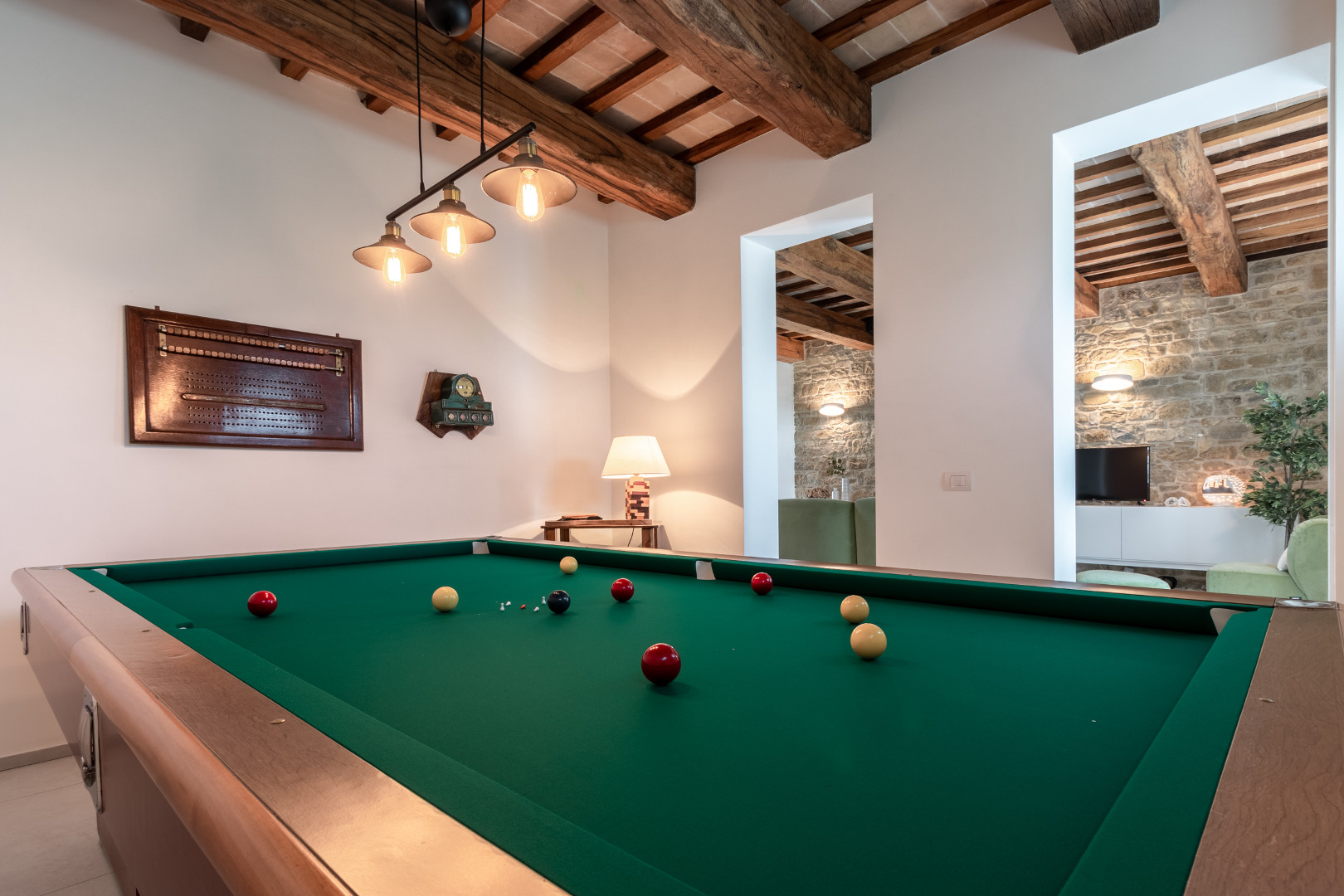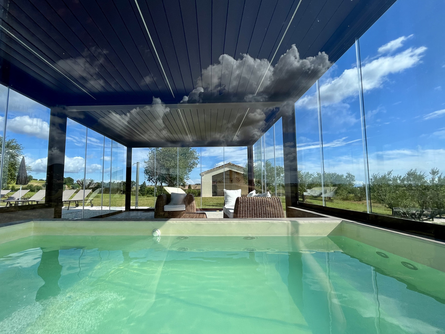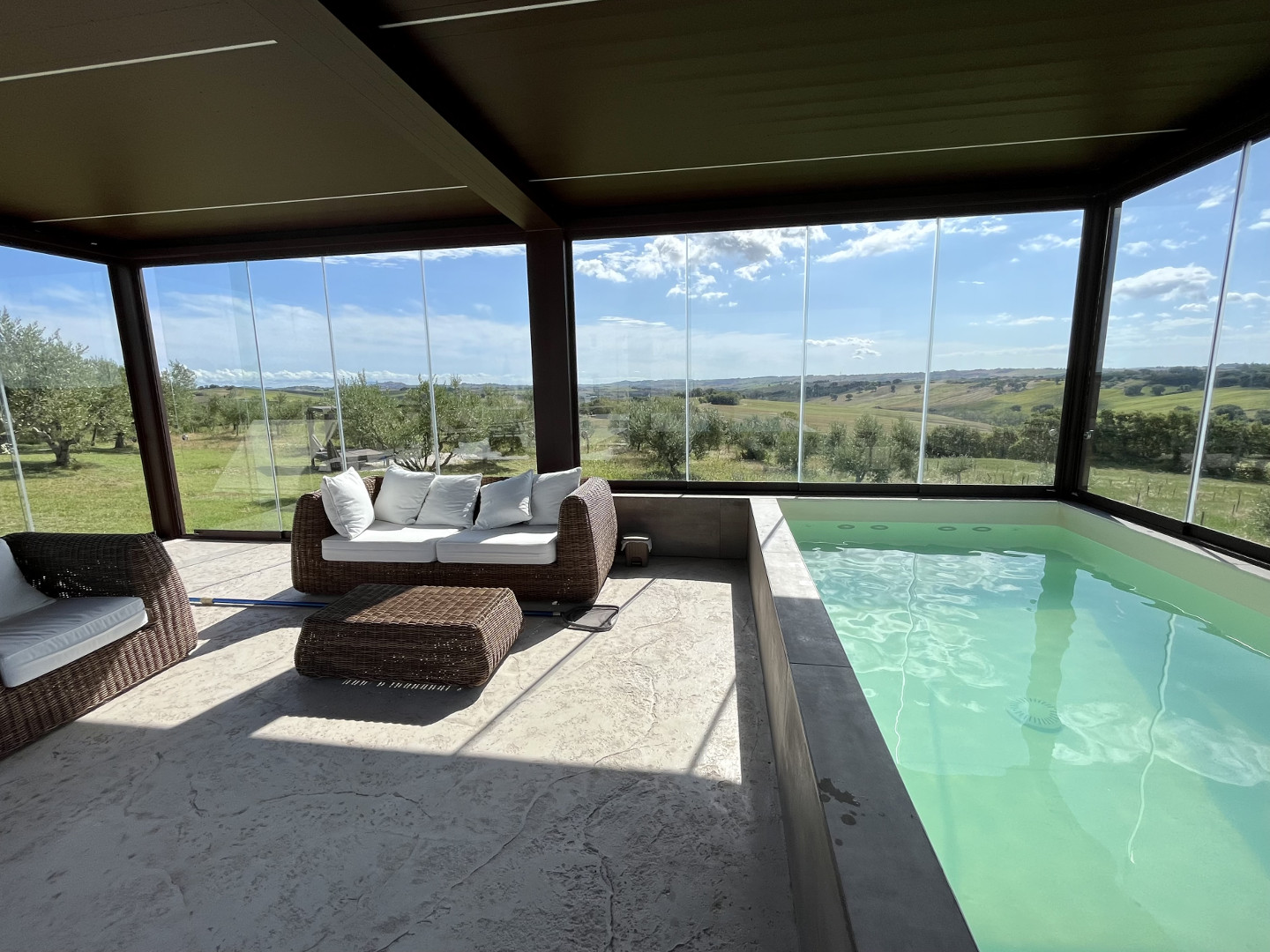 Looking for a breath of fresh air in the Marche region? This air-conditioned character house with private pool and heated whirlpool bath is just what you are looking for! Situated in the heart of hills and fields, it's the ideal place for maximum peace and quiet. The villa has five bedrooms, each with its own en suite bathroom. Four of these are in the main house. The fifth is in a private annex in the large garden. The living spaces are a perfect blend of modernity and old-world charm, bathed in natural light thanks to the large bay windows that surround them. You will find typical regional decorations such as wooden beams and stone walls. On the terrace, you will have the opportunity to share delicious meals while admiring the gradation of colors in the surrounding countryside. If you are looking to recharge your batteries and pamper yourself, relax in the heated poolside bath. Once you' have enjoyed the comforts of this magnificent villa, there's a wide range of activities on offer to help you discover the local area. Start your escapade with a horseback ride through the hills, the best way to soak up the picturesque scenery and tranquility of the region. Then lose yourself in the streets of Cingoli, also known as "The Balcony of the Marches". Perched on the summit of Monte Circe, this small village boasts breathtaking monuments and scenery. Visit the Church of San Filippo Neri or the Palazzo Municipale, now home to the National Archaeological Museum. On sunny days, opt for a picnic at Lake Cingoli. If you like water sports, you can also enjoy a paddle outing on the lake, gliding peacefully over the water while admiring the surrounding scenery. Finally, don't forget to treat your taste buds to lunch or dinner at the Lo Smeraldo restaurant. This tasty experience will transport you back to the culinary traditions of the Marche region. One thing's for sure: you'll leave central Italy with stars in your eyes and unforgettable memories.