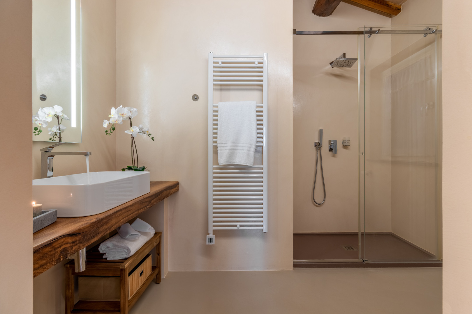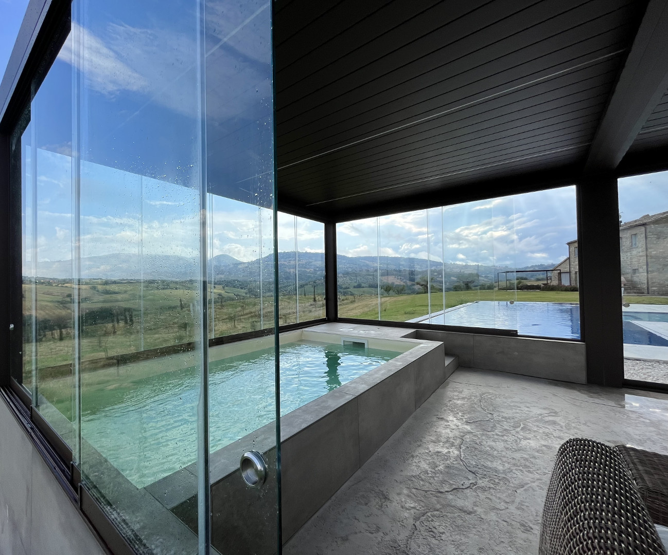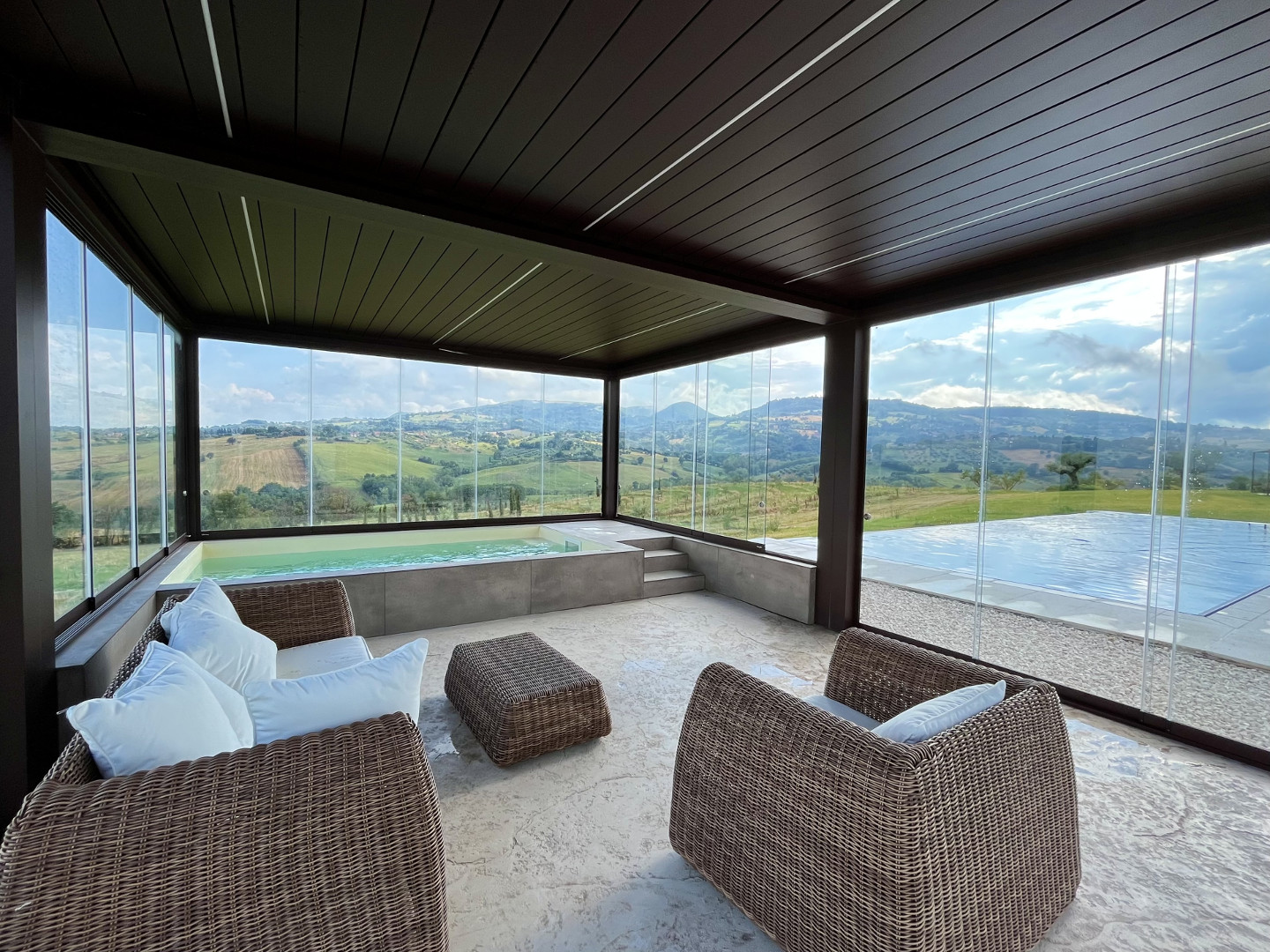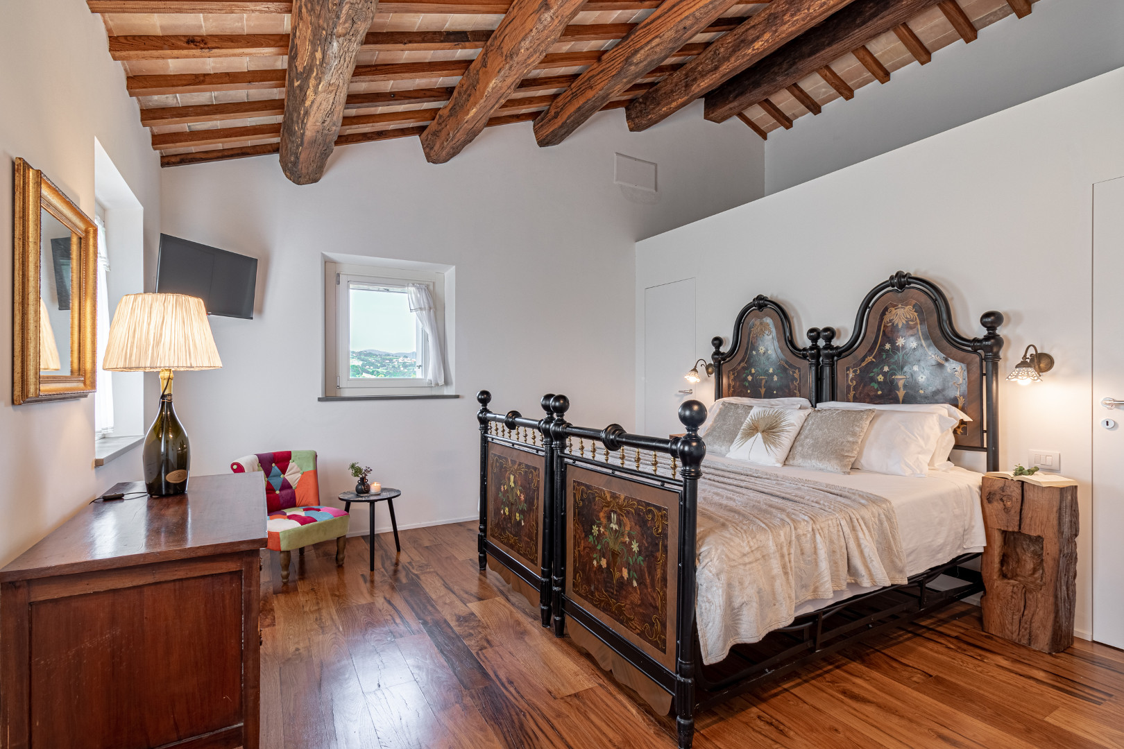 Looking for a breath of fresh air in the Marche region? This air-conditioned character house with private pool and heated whirlpool bath is just what you are looking for! Situated in the heart of hills and fields, it's the ideal place for maximum peace and quiet. The villa has five bedrooms, each with its own en suite bathroom. Four of these are in the main house. The fifth is in a private annex in the large garden. The living spaces are a perfect blend of modernity and old-world charm, bathed in natural light thanks to the large bay windows that surround them. You will find typical regional decorations such as wooden beams and stone walls. On the terrace, you will have the opportunity to share delicious meals while admiring the gradation of colors in the surrounding countryside. If you are looking to recharge your batteries and pamper yourself, relax in the heated poolside bath. Once you' have enjoyed the comforts of this magnificent villa, there's a wide range of activities on offer to help you discover the local area. Start your escapade with a horseback ride through the hills, the best way to soak up the picturesque scenery and tranquility of the region. Then lose yourself in the streets of Cingoli, also known as "The Balcony of the Marches". Perched on the summit of Monte Circe, this small village boasts breathtaking monuments and scenery. Visit the Church of San Filippo Neri or the Palazzo Municipale, now home to the National Archaeological Museum. On sunny days, opt for a picnic at Lake Cingoli. If you like water sports, you can also enjoy a paddle outing on the lake, gliding peacefully over the water while admiring the surrounding scenery. Finally, don't forget to treat your taste buds to lunch or dinner at the Lo Smeraldo restaurant. This tasty experience will transport you back to the culinary traditions of the Marche region. One thing's for sure: you'll leave central Italy with stars in your eyes and unforgettable memories.
