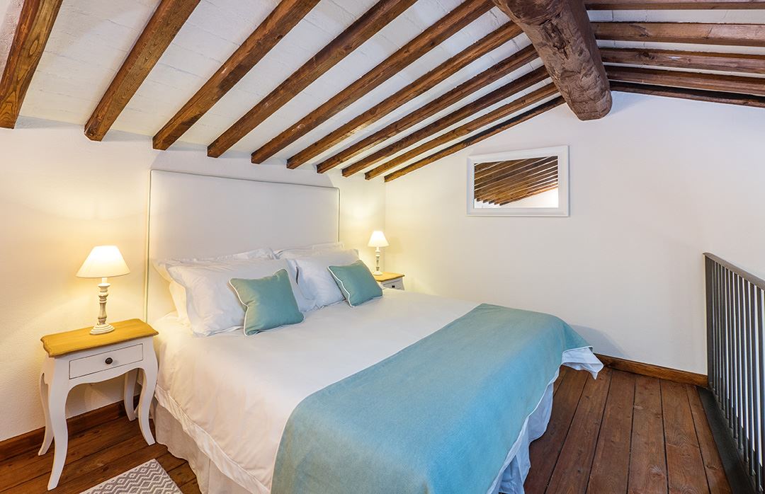Double bedroom on a mezzanine level with air conditioning and Ensuite bathroom with shower