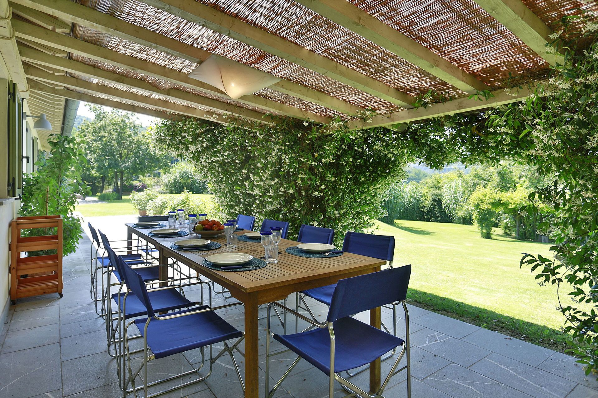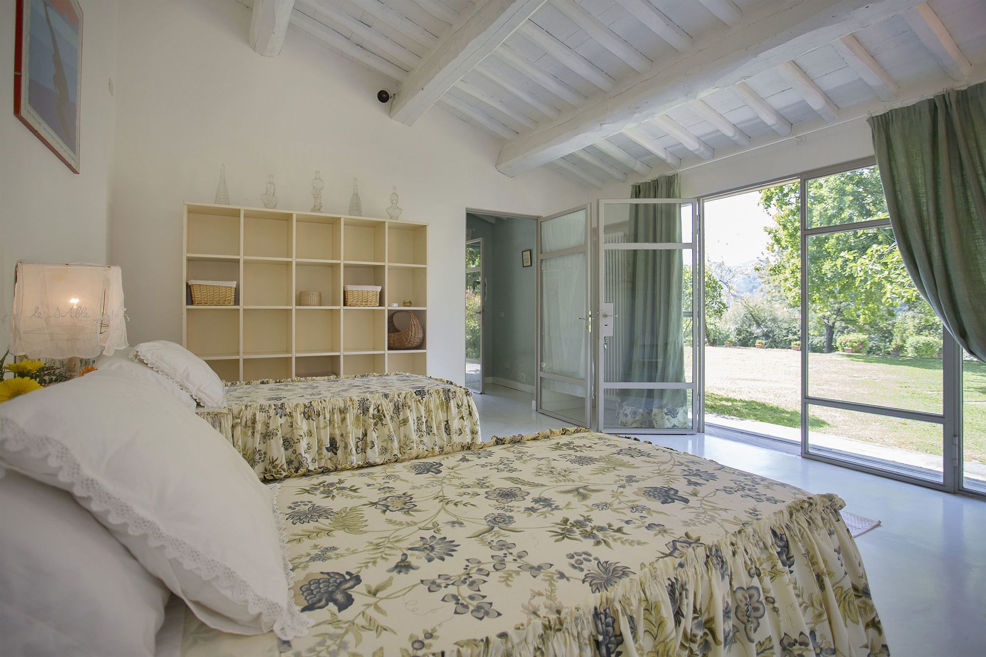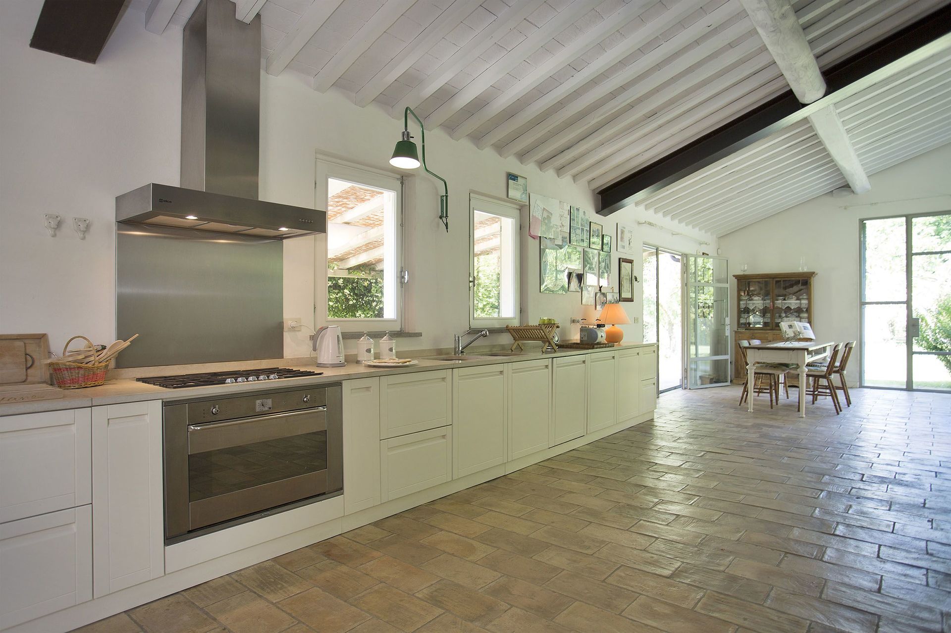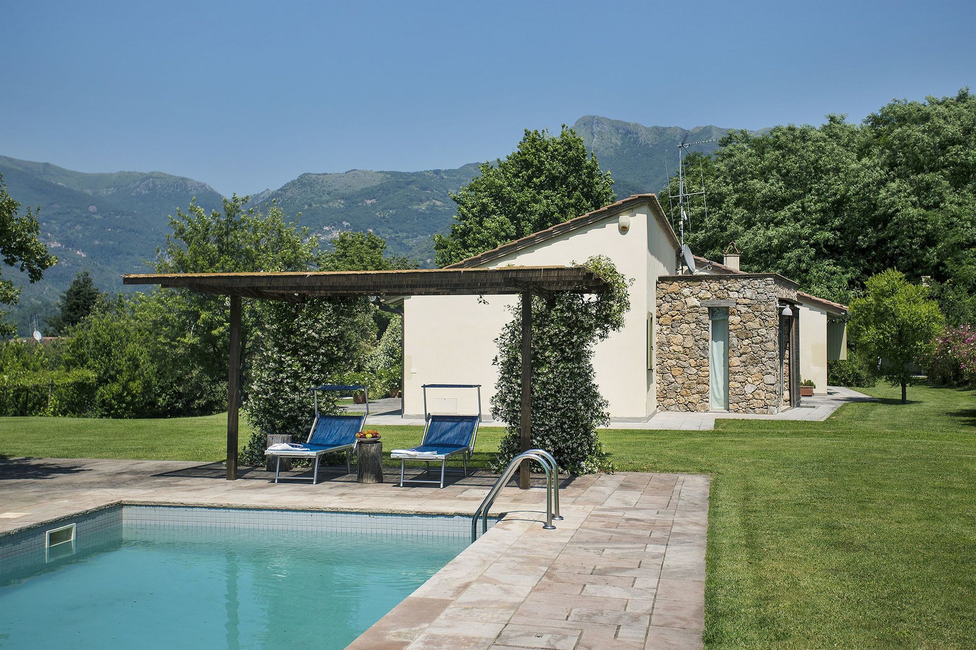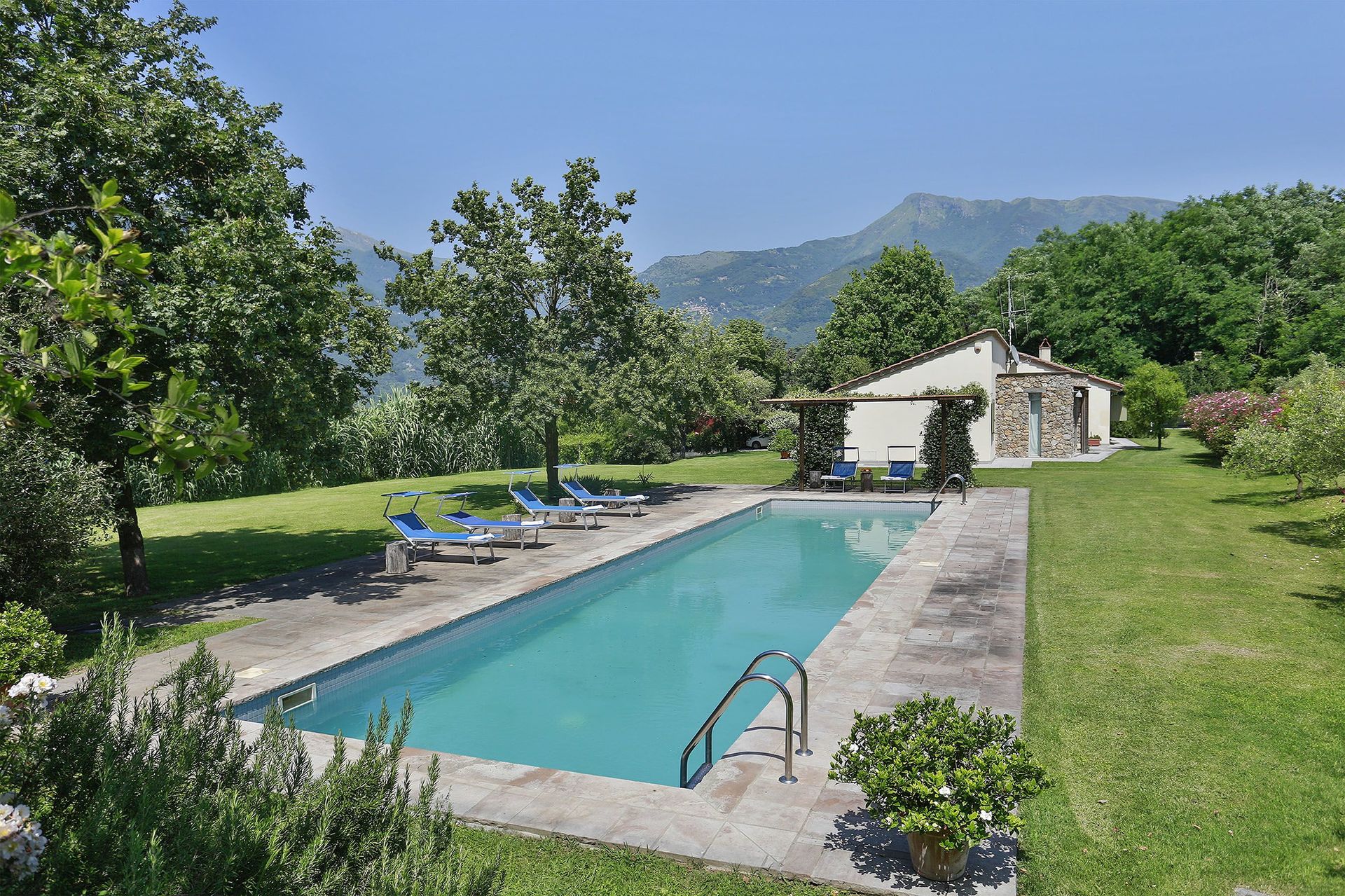 This property is located in a residential area only 1,5 km from Camaiore. This historic town is renowned for its ideal location at the foot of the Apuan Alps, less than 9 km from the Versilia beaches. The well-known towns of Pietrasanta and Forte dei Marmi, famous for smart restaurants, boutiques and night clubs, are also very close. Only 8 km from the nearest motorway exit, this villa is an ideal base for day trips to the main Tuscan towns. The owner of villa fell in love with this idyllic location, and bought a ruin that she has now transformed into a holiday base for her family and friends. The restoration was designed by the owner's daughter - a renowned modern architect - who emphasized the light on the spaces rather than trying to keep the original traditional Tuscan style. The property now consists of three different units, a main house and two guest houses, thus making this villa ideal for those looking to holiday together yet enjoying their own privacy. A particular feature of the main house is the huge open space including a sitting area with fire-place, a dining area and a large kitchen, all opening on to the garden and a covered veranda ideal for 'al fresco' dining. In front of the main house is the beautiful swimming pool (15 x 4 meters)