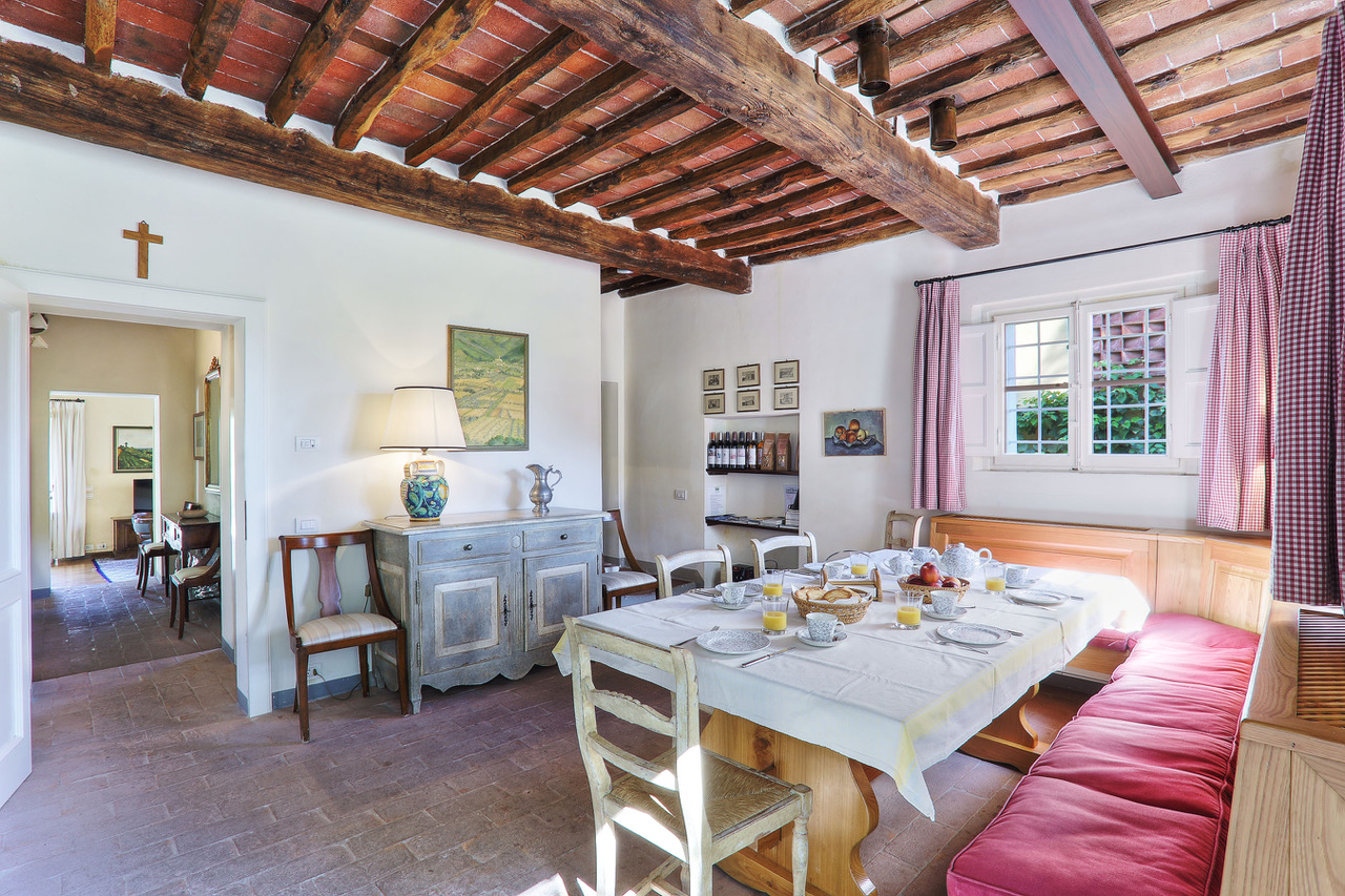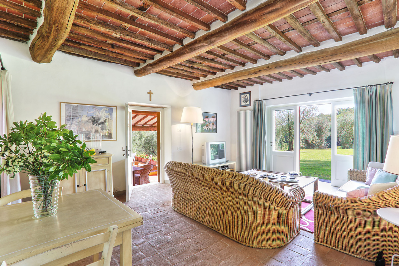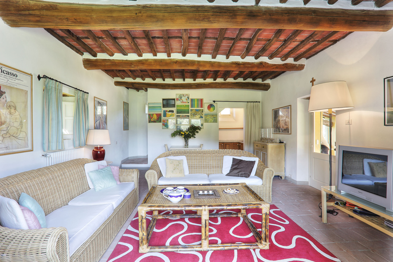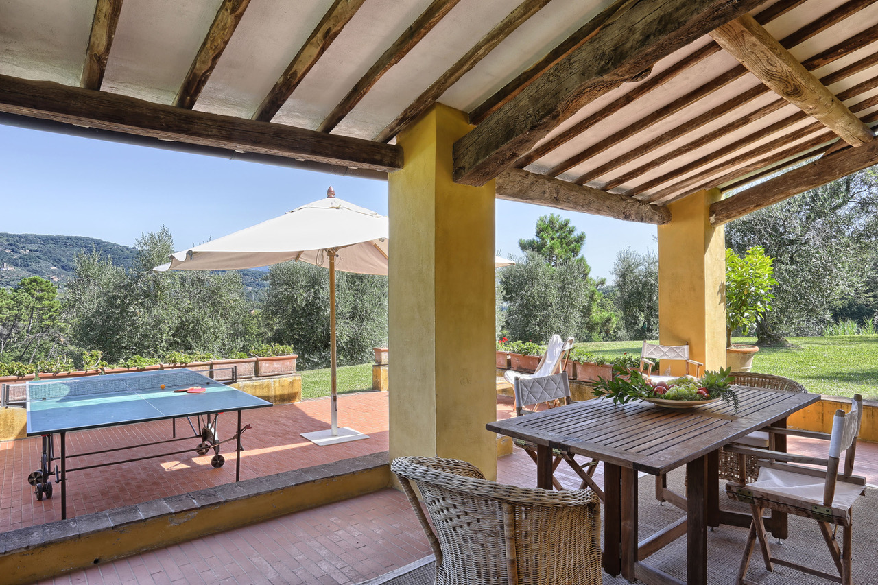You will find this charming villa in the hills of the Tuscan countryside, between olive groves and vineyards. Few kilometers way from there, the fortified city of Lucca offers you shops and all facilities. A little further, you will be impressed by the leaning tower of Pisa or you will also have the possibility to discover the marvelous and well-known city of Florence.