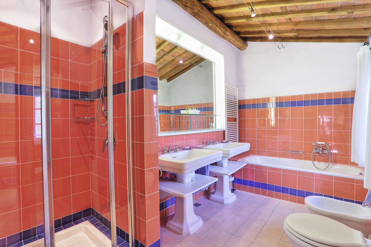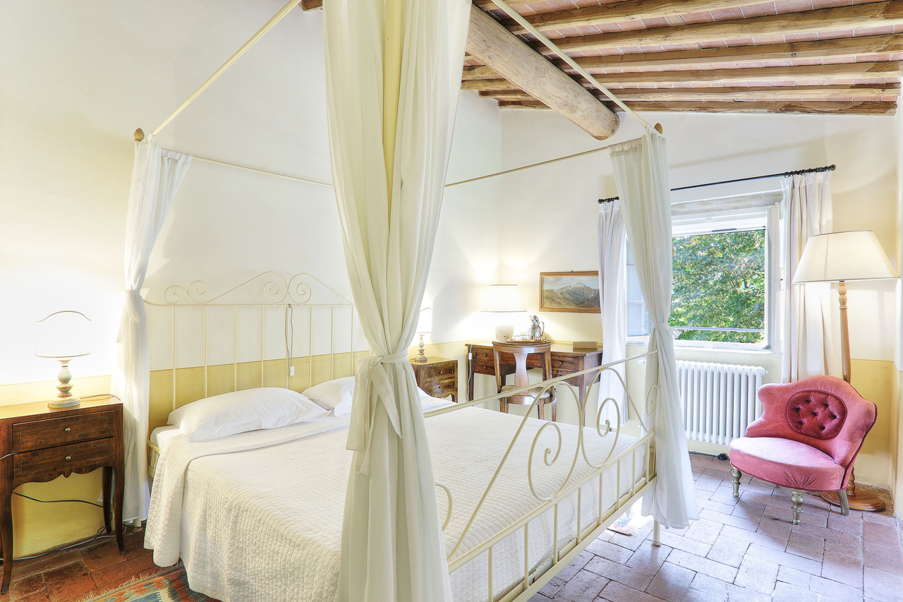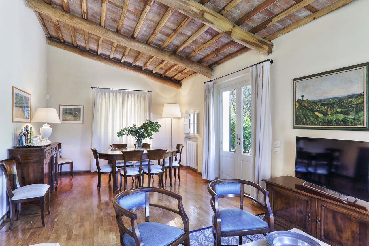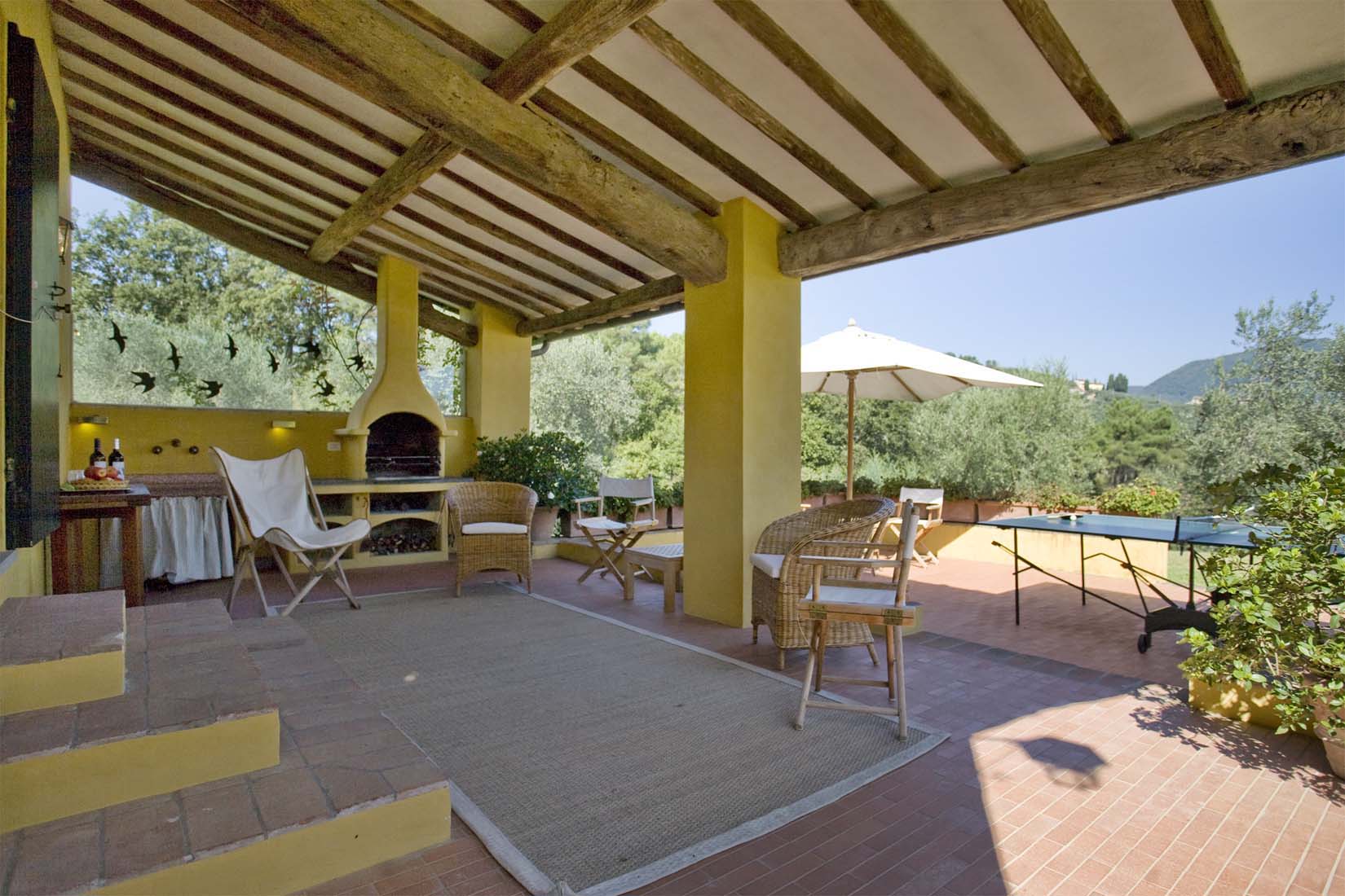 You will find this charming villa in the hills of the Tuscan countryside, between olive groves and vineyards. Few kilometers way from there, the fortified city of Lucca offers you shops and all facilities. A little further, you will be impressed by the leaning tower of Pisa or you will also have the possibility to discover the marvelous and well-known city of Florence.