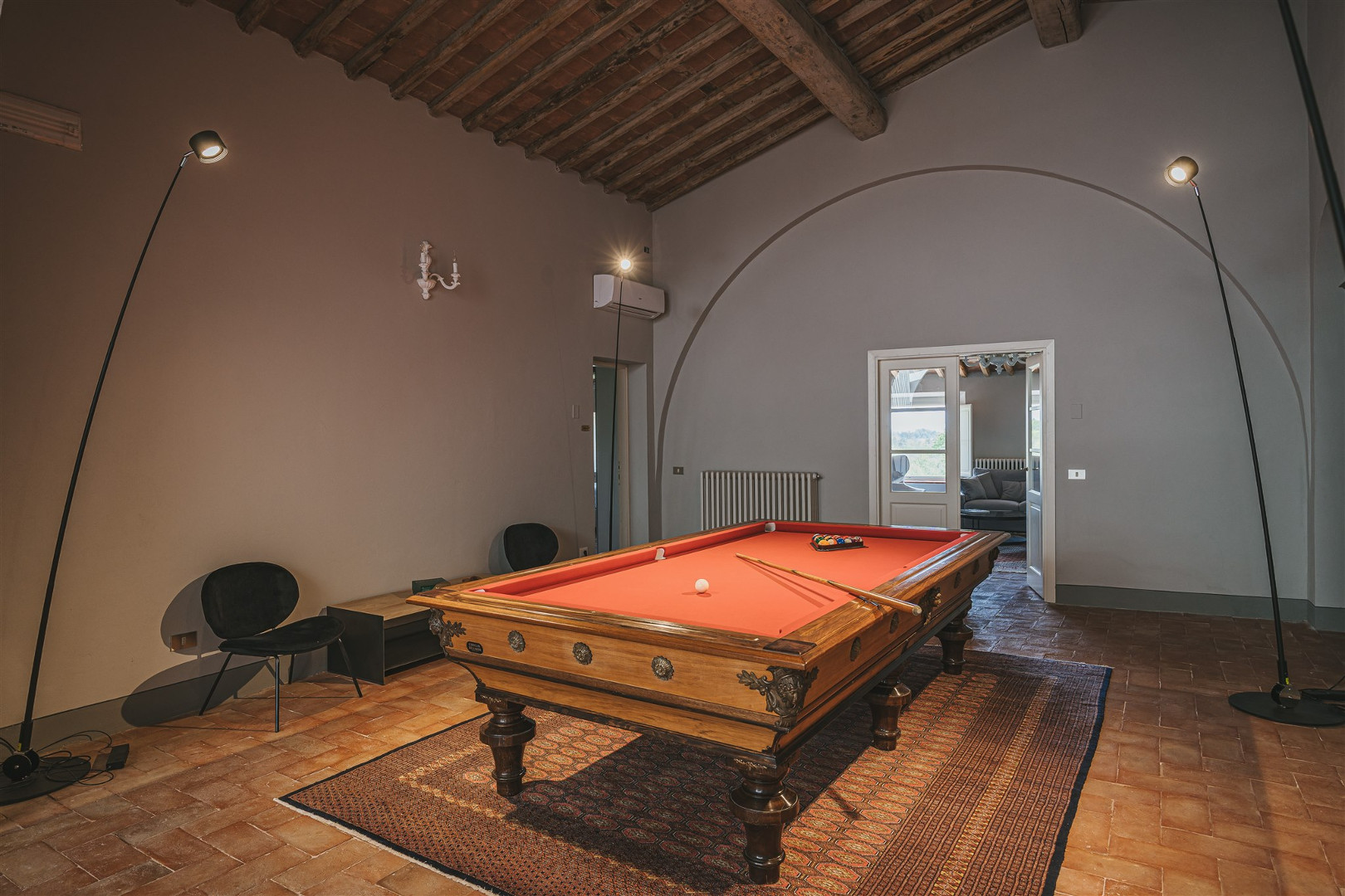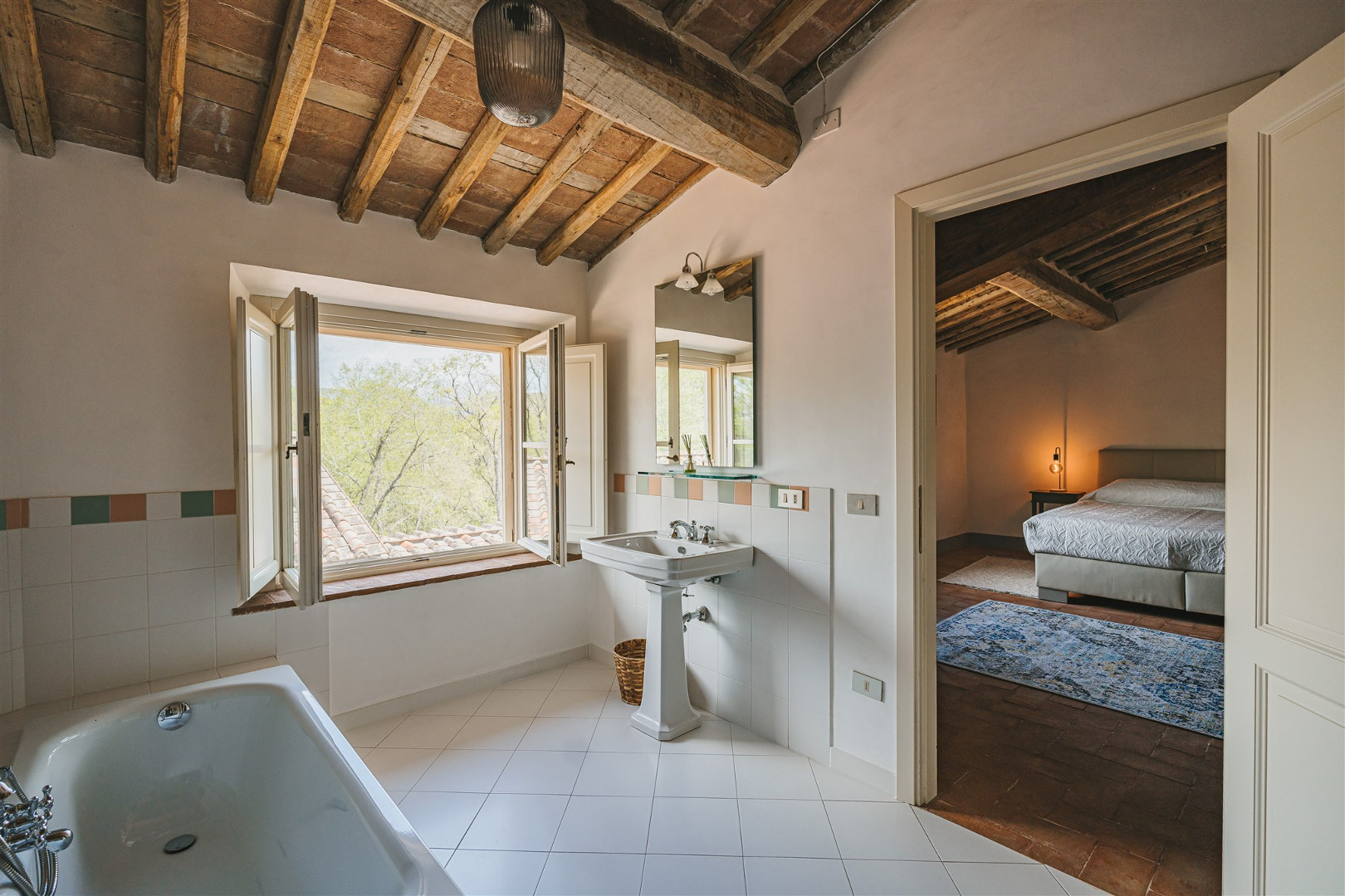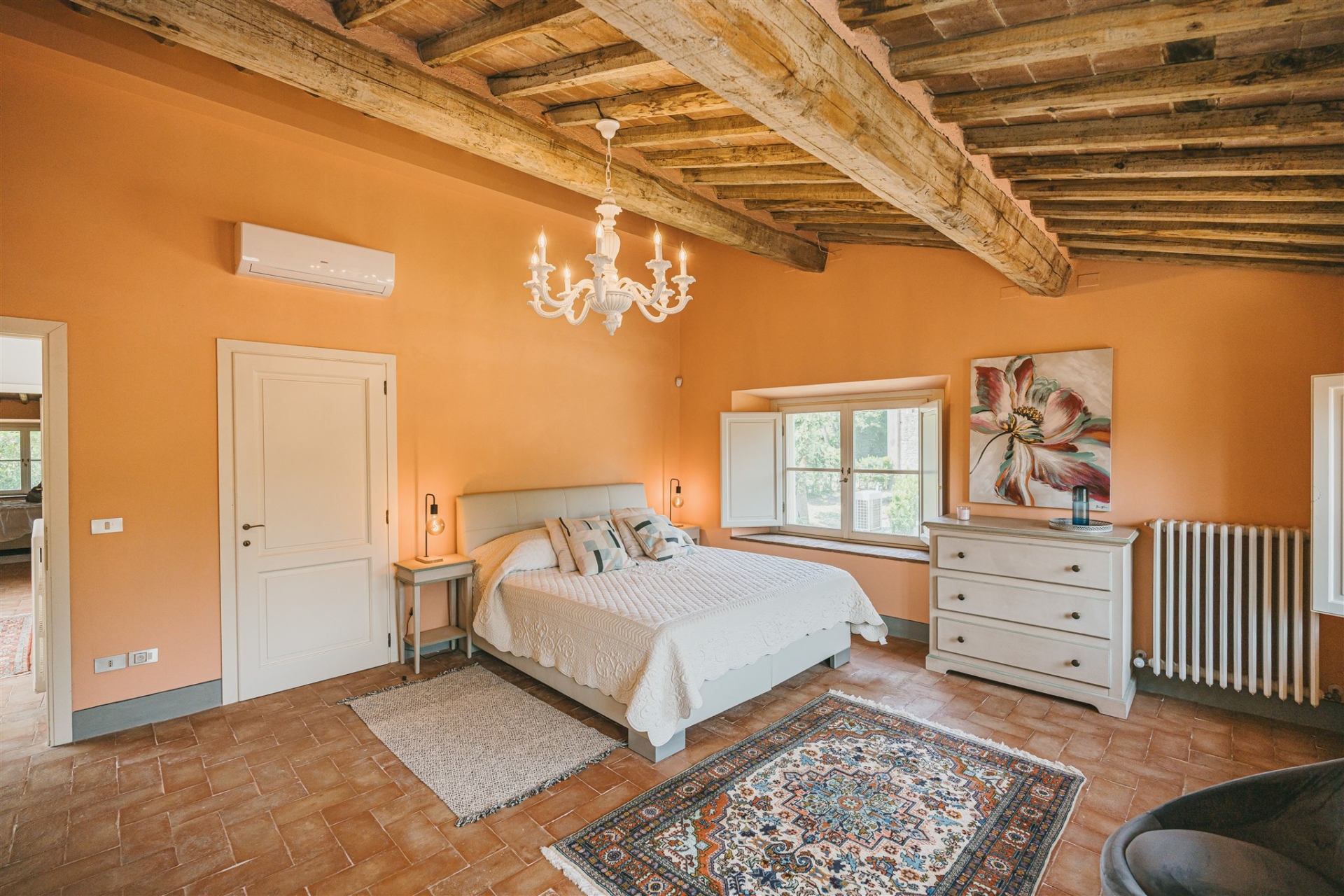 Originally a farm house, this property has been refurbished into a luxury villa, by using authentic materials to reserve the Lucchesian style from the terracotta tiled floors and chestnut beamed ceilings. Modern comfort has also been introduced to the property including the well equipped kitchen, large open sitting and dining area with barbeque for al fresco dining, and a gym.