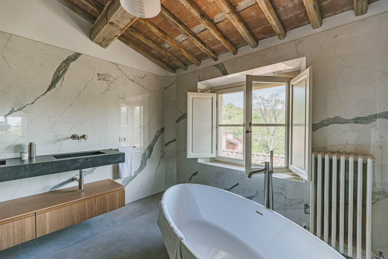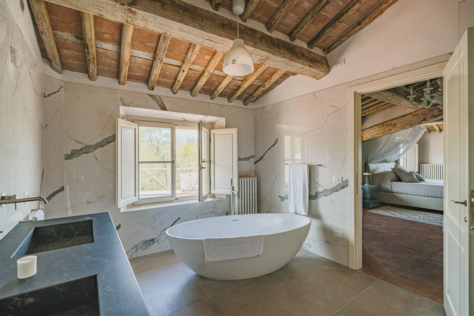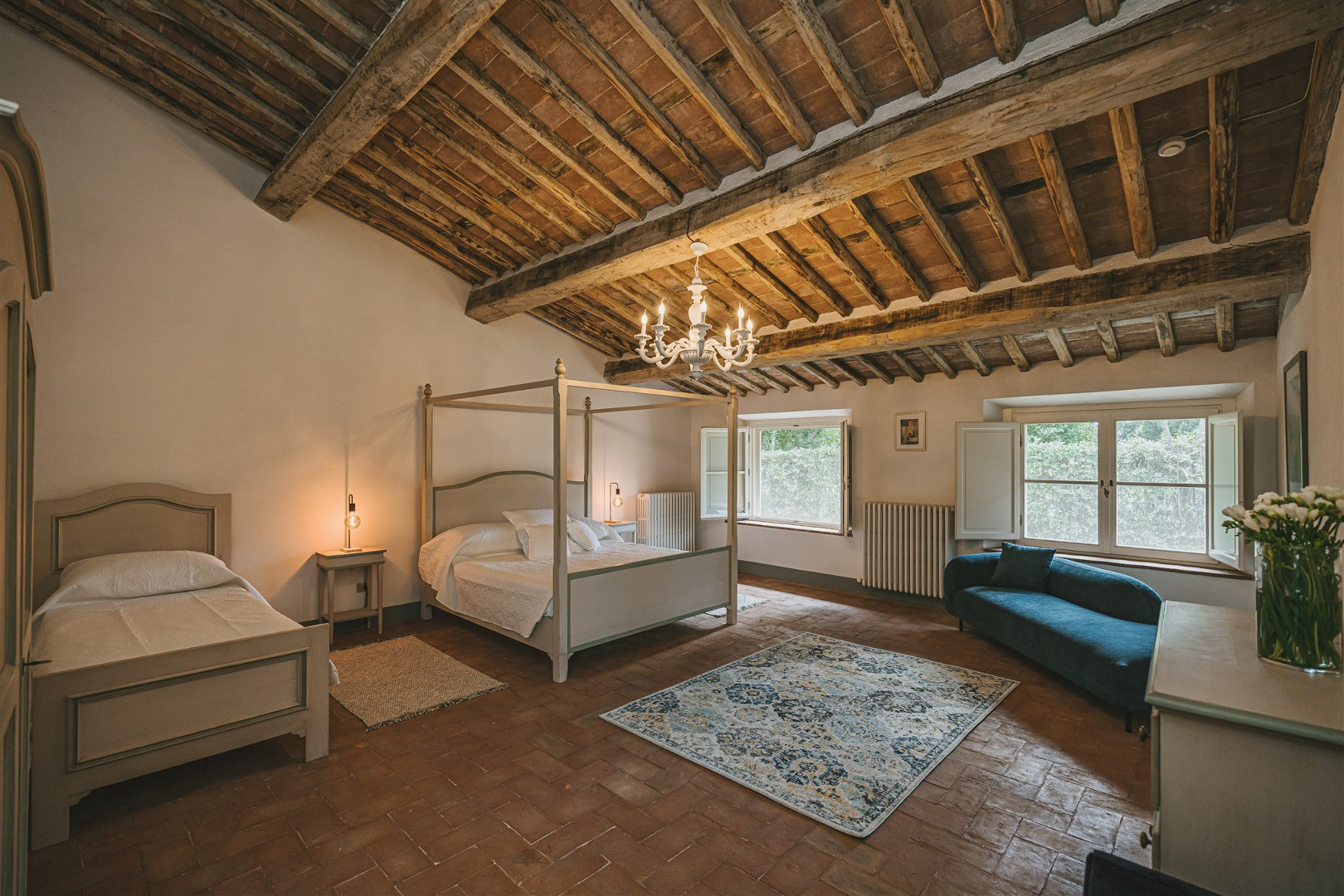Originally a farm house, this property has been refurbished into a luxury villa, by using authentic materials to reserve the Lucchesian style from the terracotta tiled floors and chestnut beamed ceilings. Modern comfort has also been introduced to the property including the well equipped kitchen, large open sitting and dining area with barbeque for al fresco dining, and a gym.
