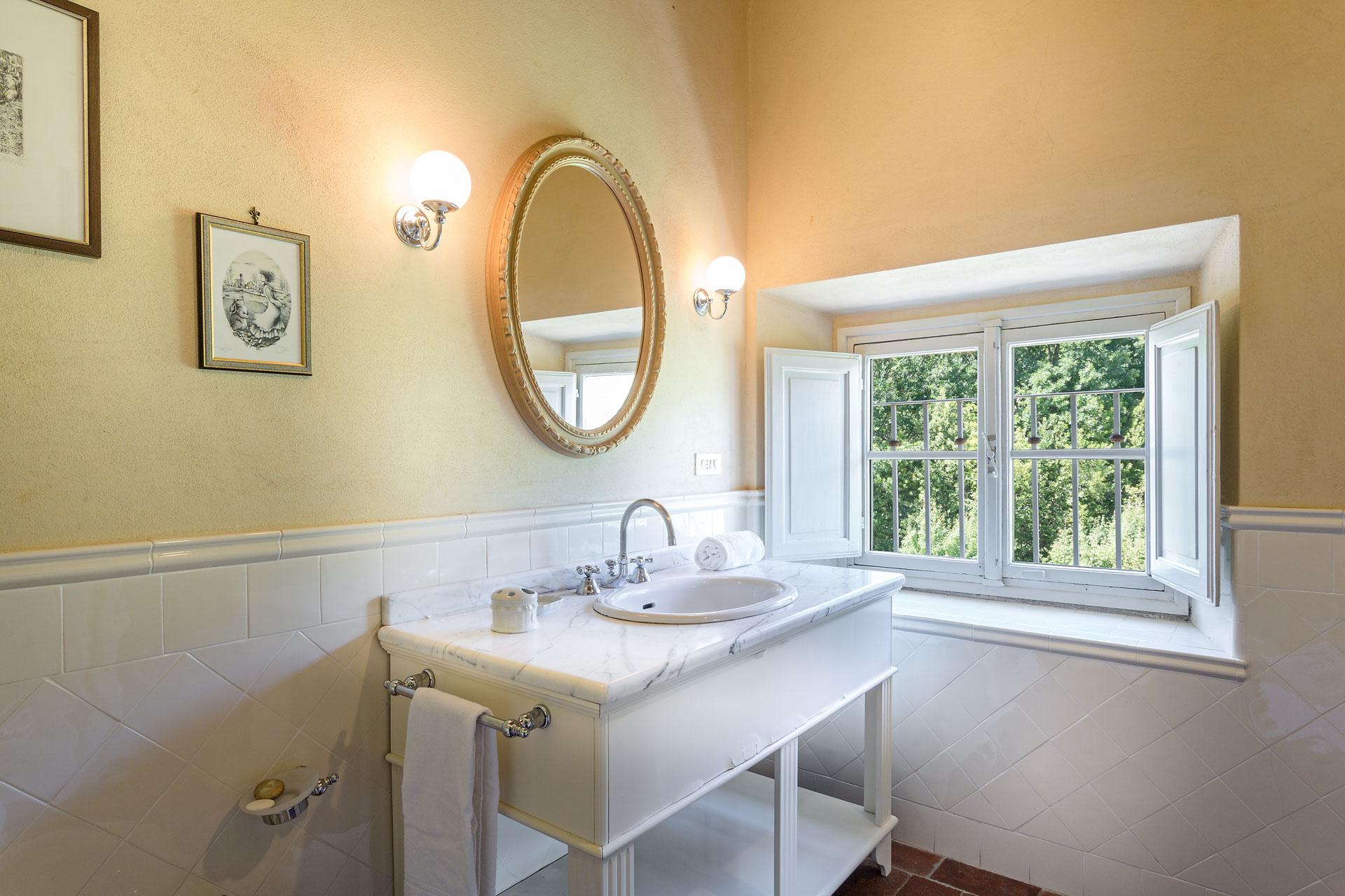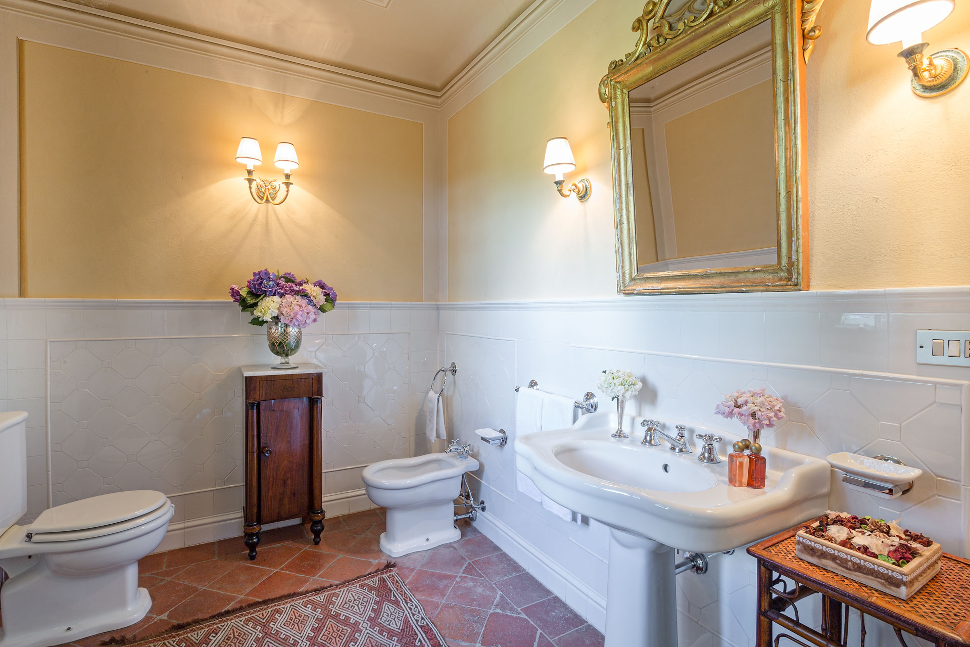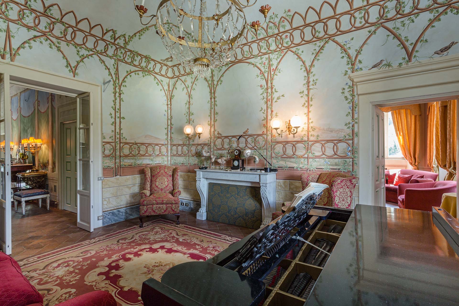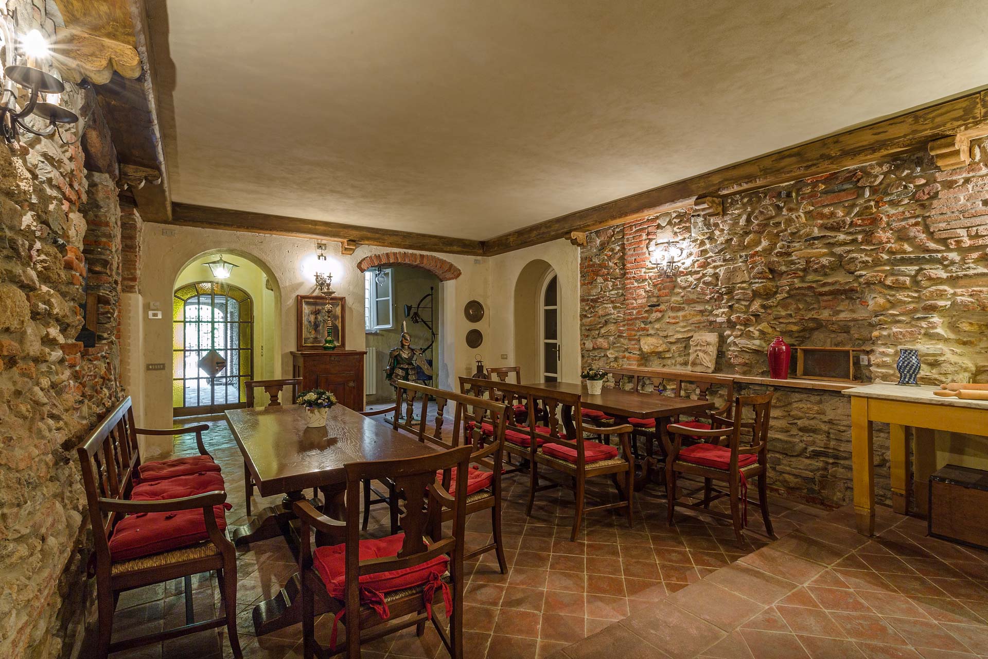 The large and spacious frescoed rooms, filled with antique furnishings, give them elegance that blends with modern comfort in the heart of this rich heritage of this family home. The large reception rooms have lots of charm and character and include a beautiful sitting room, a cosy television lounge, a Tuscan kitchen, a breakfast room and an elegant dining room.