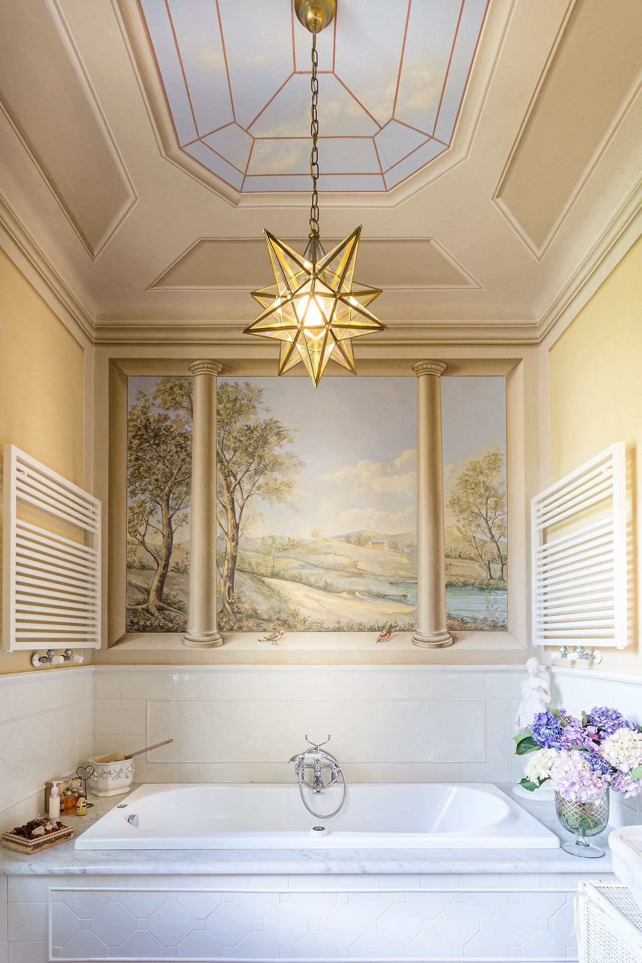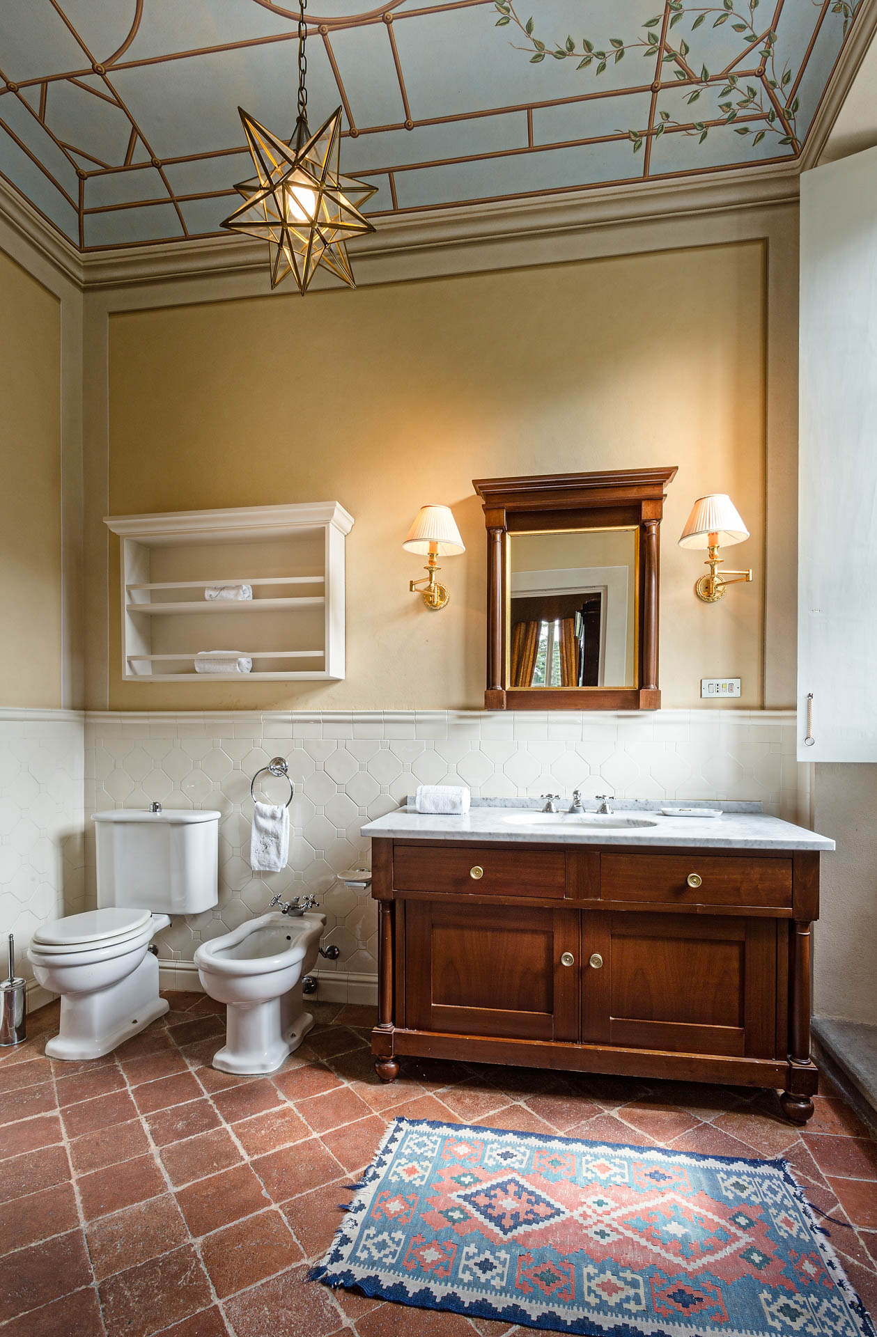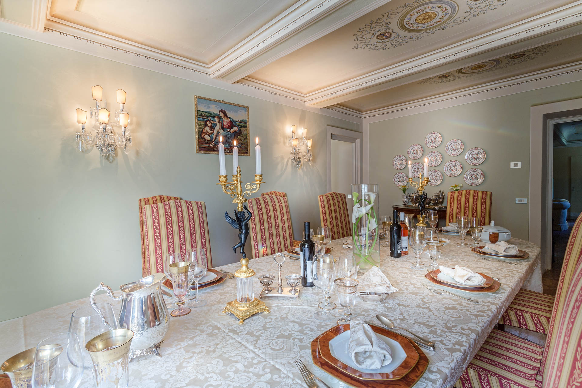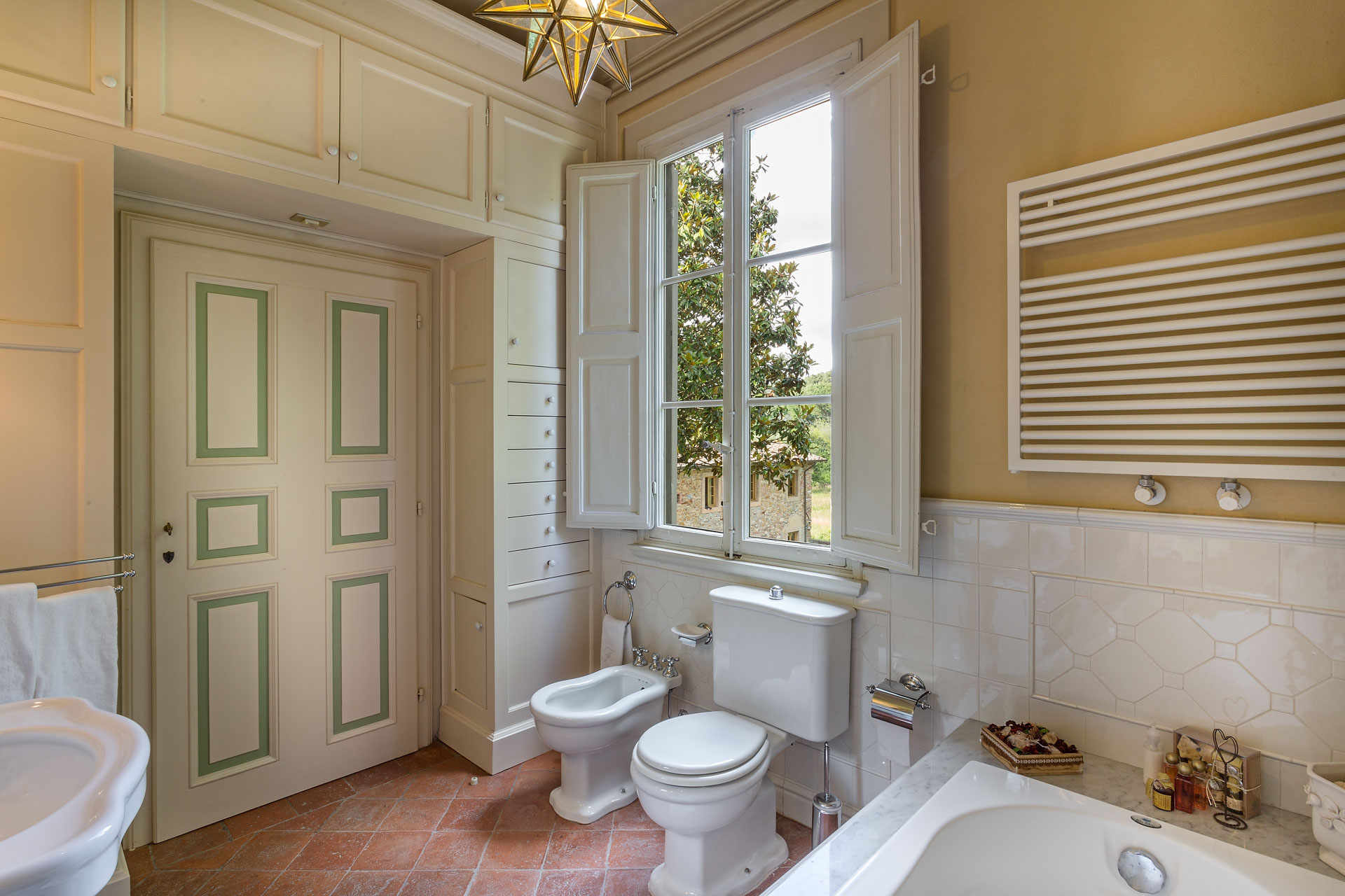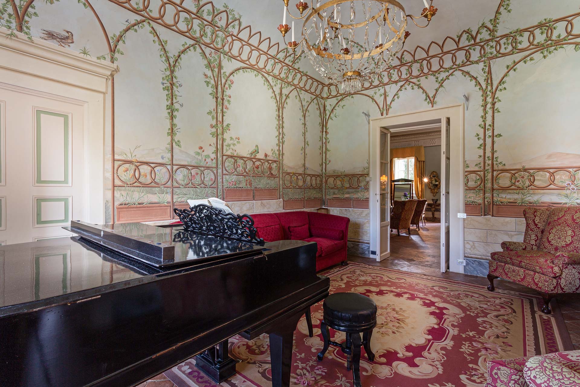 The large and spacious frescoed rooms, filled with antique furnishings, give them elegance that blends with modern comfort in the heart of this rich heritage of this family home. The large reception rooms have lots of charm and character and include a beautiful sitting room, a cosy television lounge, a Tuscan kitchen, a breakfast room and an elegant dining room.