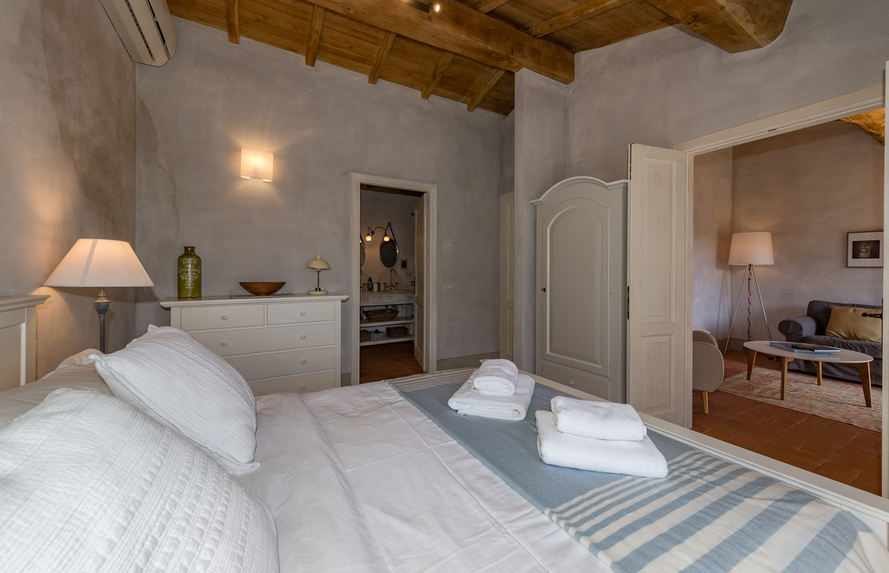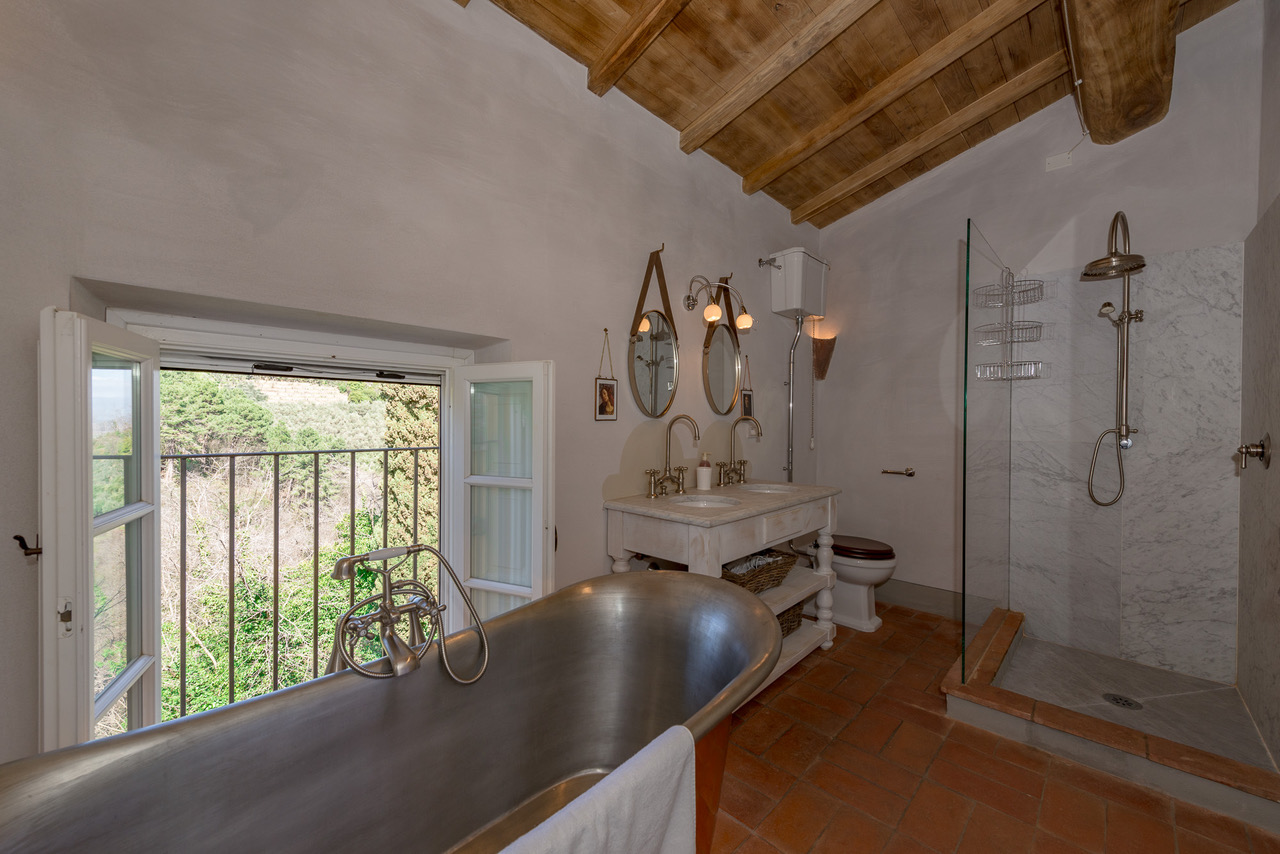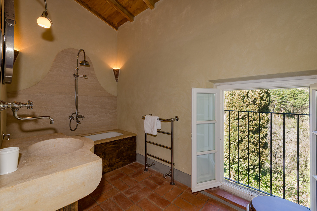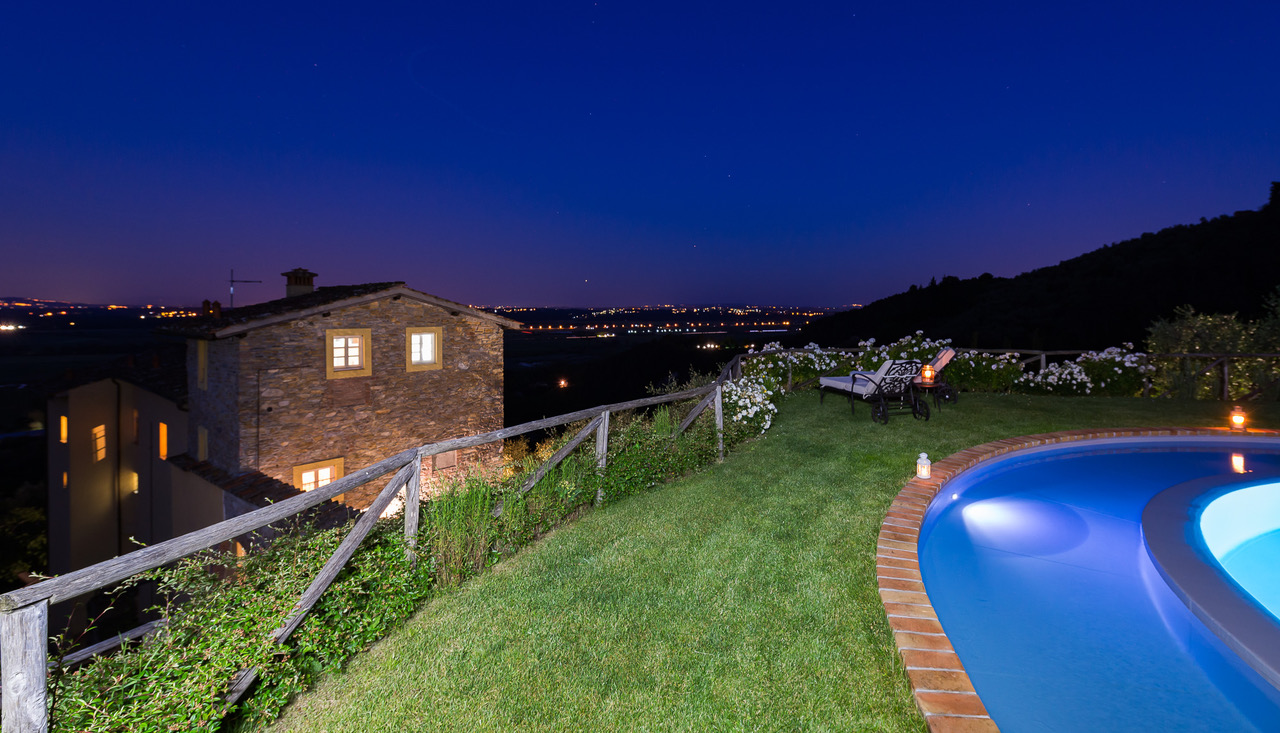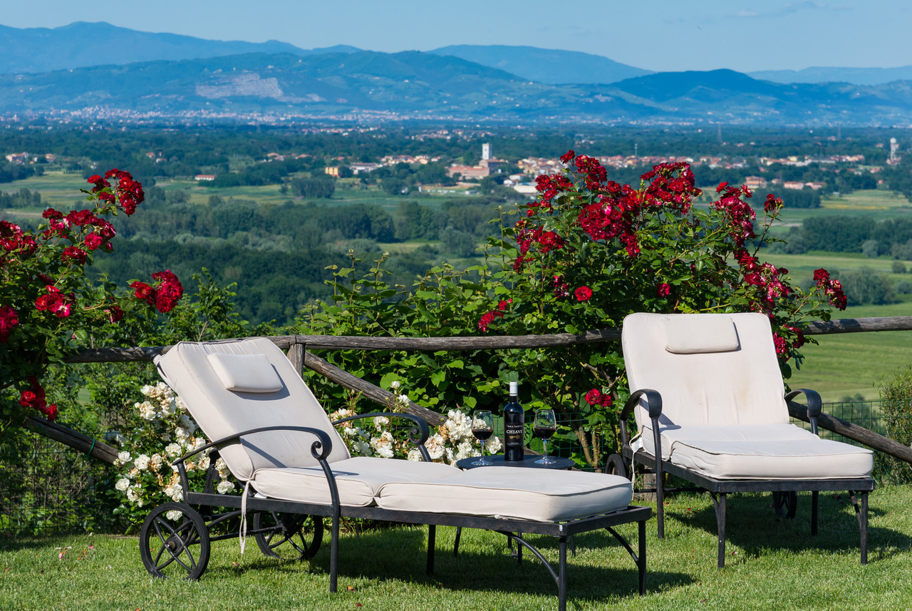 As the sun drops below the horizon, soak up the romantic atmosphere of this Tuscan hideaway, and savour a glass of Montecarlo DOC from the plentifully-stocked cellar as you relax on the terrace.