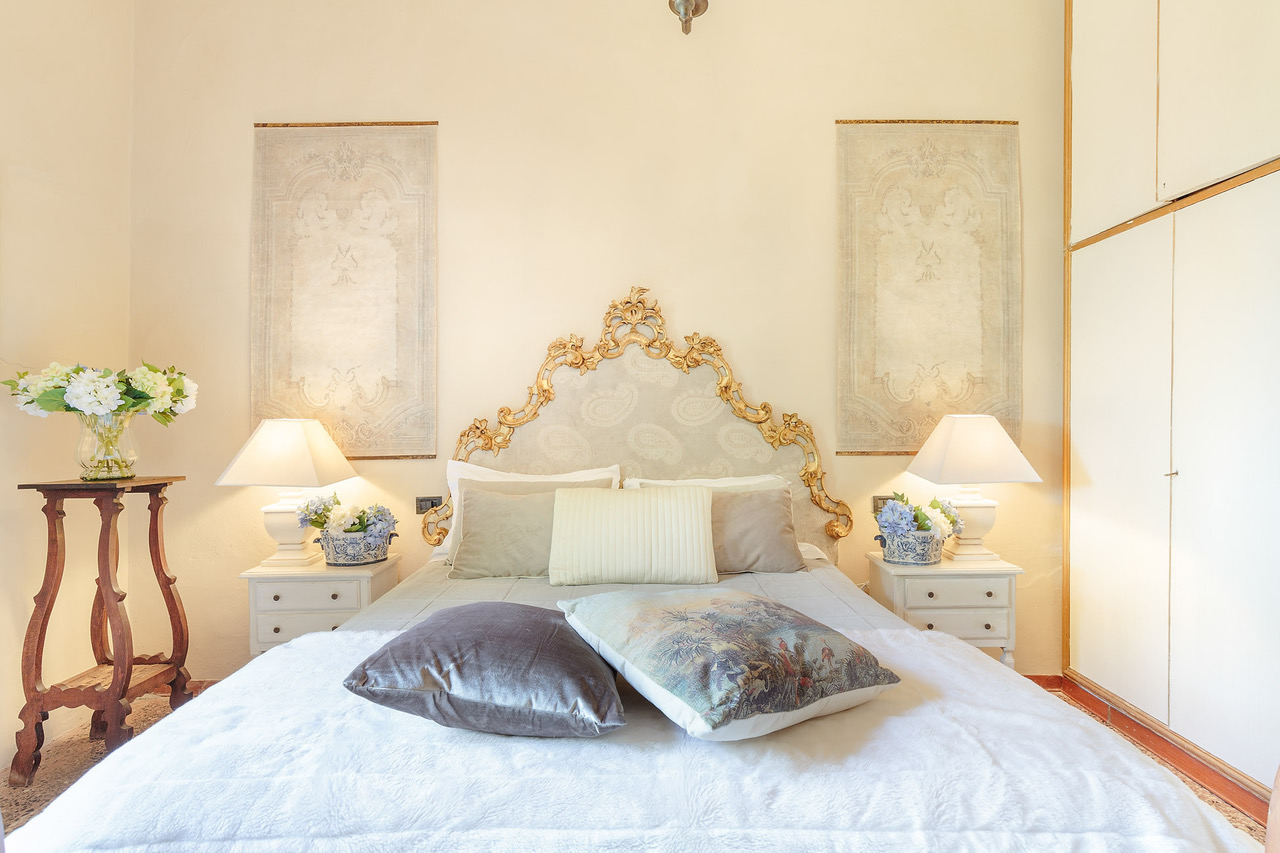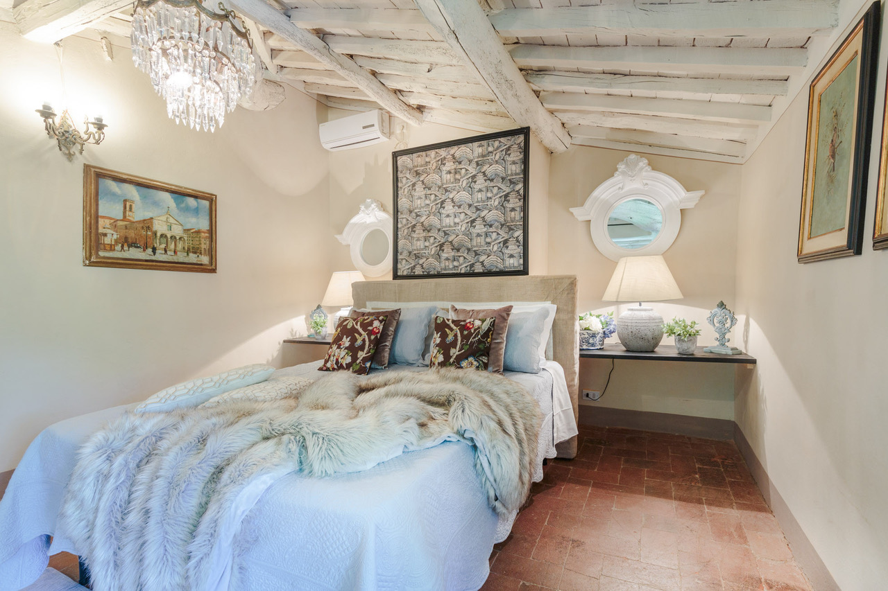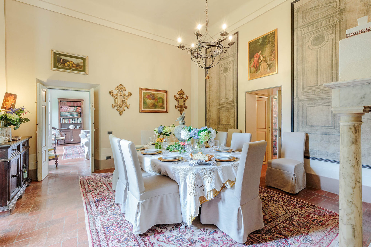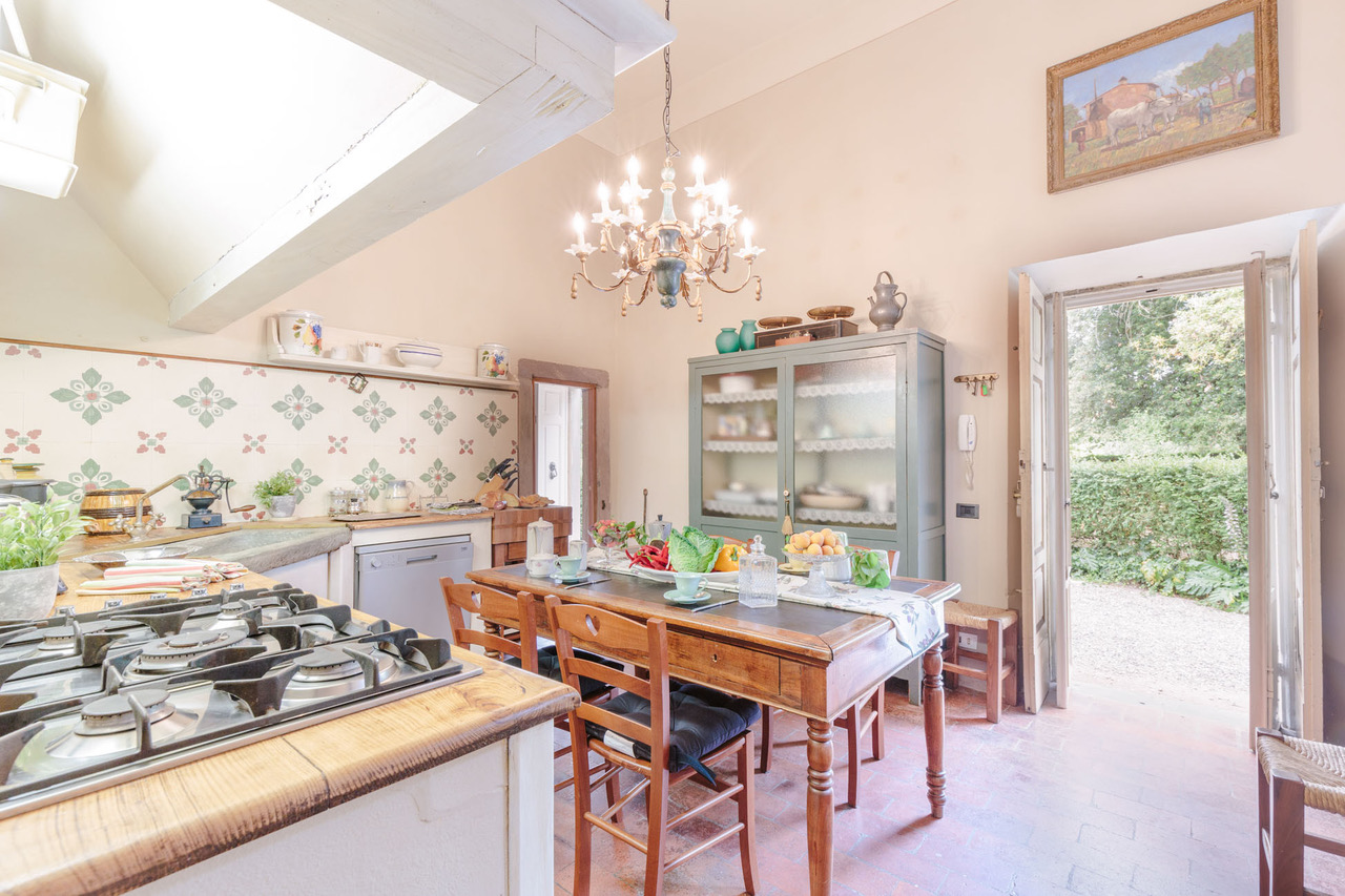 This charming house located on the outskirts of Lucca will be your new favorite. Extremely well maintained, you will discover inside a mix between baroque and contemporary. This alliance gives the house an atmosphere so warm that we would like to enjoy it indefinitely. Here and there, you will find some typical Tuscan elements: exposed beams and terracotta floors have been preserved to bring that touch of authenticity that we love in Tuscany. With its very high ceilings, one might think of this villa that it looks like a castle. This impression is also underlined by the very elaborate gilding and chandeliers that adorn each room. All these luxurious details come from the noble family who decided to build this house in the 17th century.