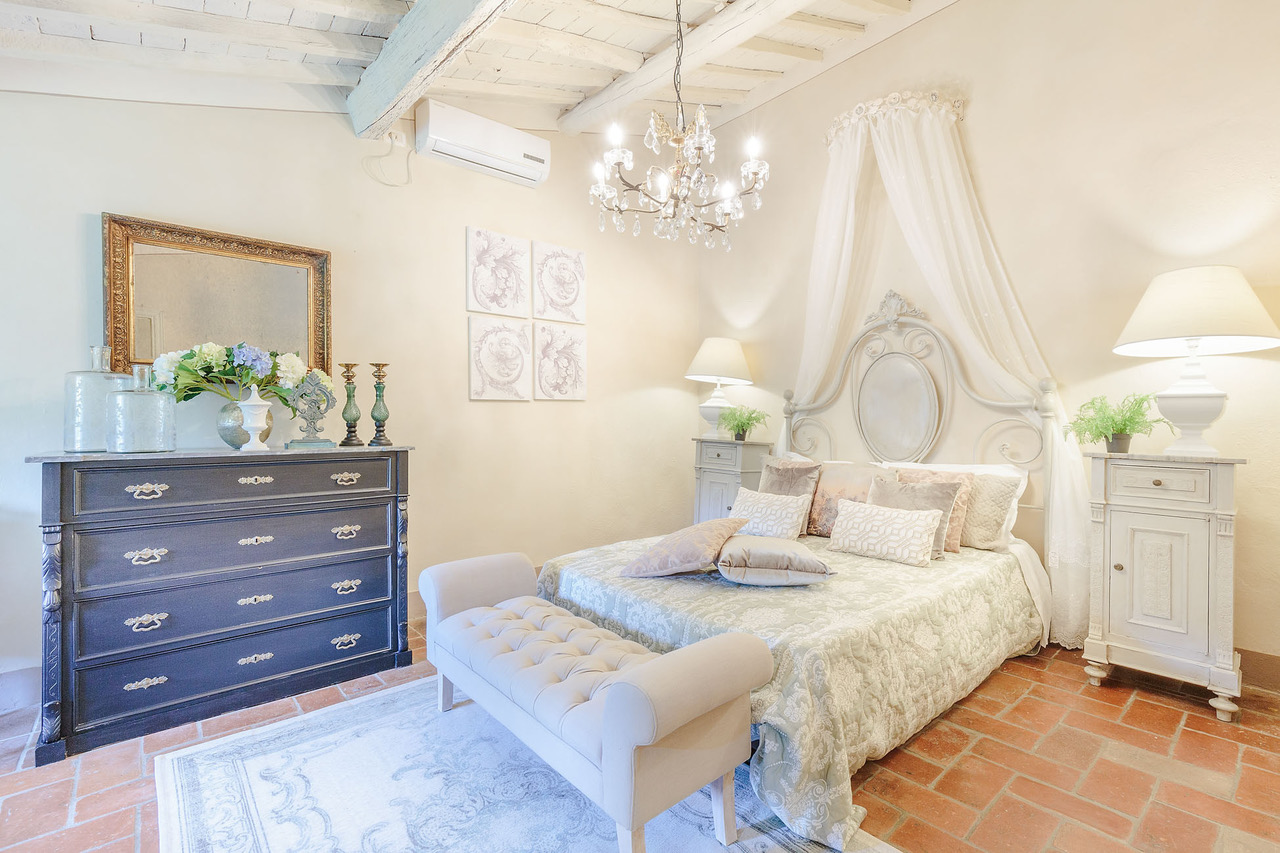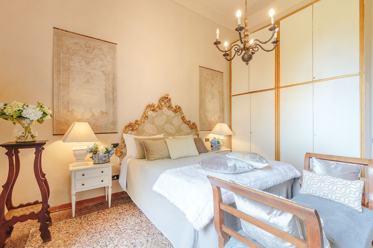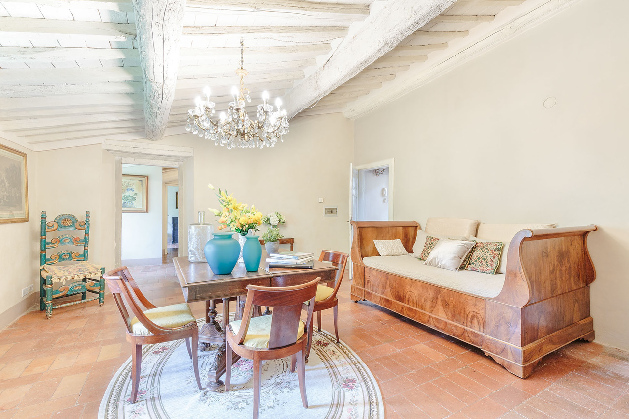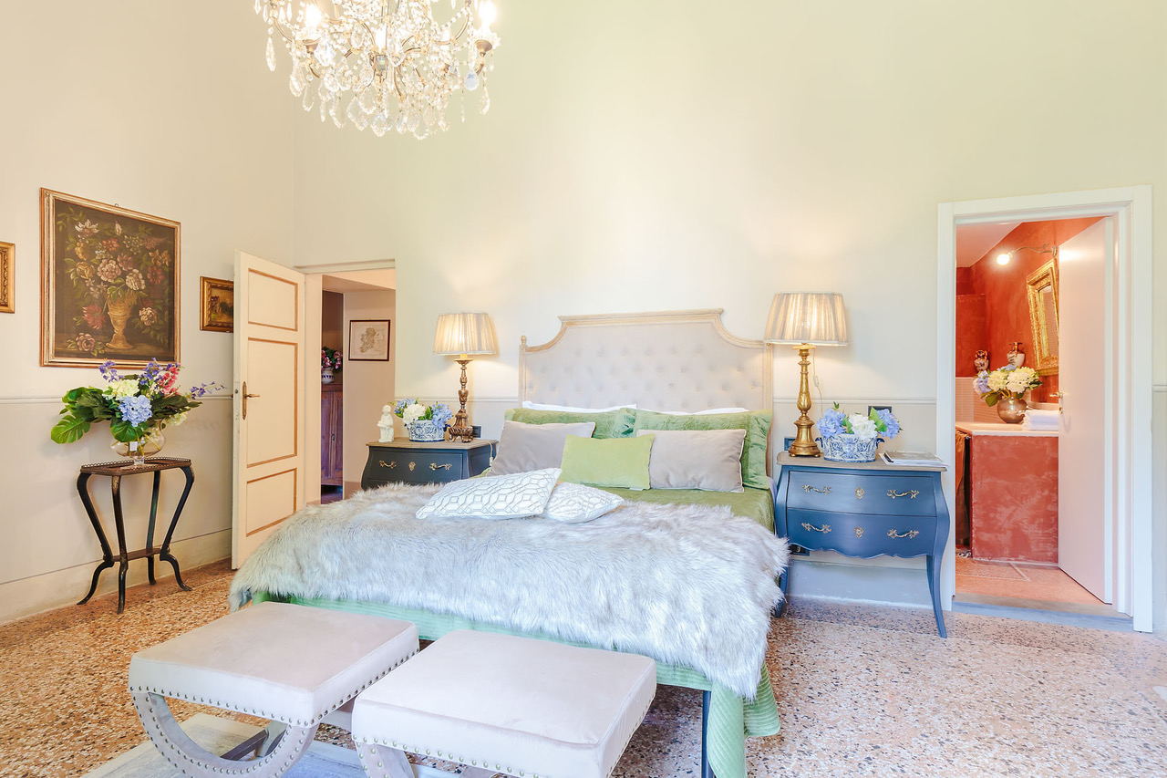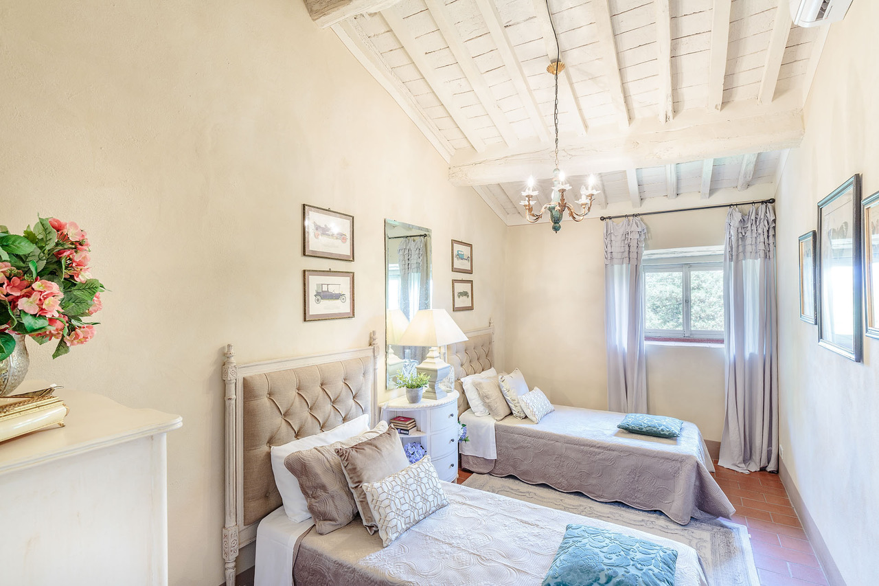 This charming house located on the outskirts of Lucca will be your new favorite. Extremely well maintained, you will discover inside a mix between baroque and contemporary. This alliance gives the house an atmosphere so warm that we would like to enjoy it indefinitely. Here and there, you will find some typical Tuscan elements: exposed beams and terracotta floors have been preserved to bring that touch of authenticity that we love in Tuscany. With its very high ceilings, one might think of this villa that it looks like a castle. This impression is also underlined by the very elaborate gilding and chandeliers that adorn each room. All these luxurious details come from the noble family who decided to build this house in the 17th century.