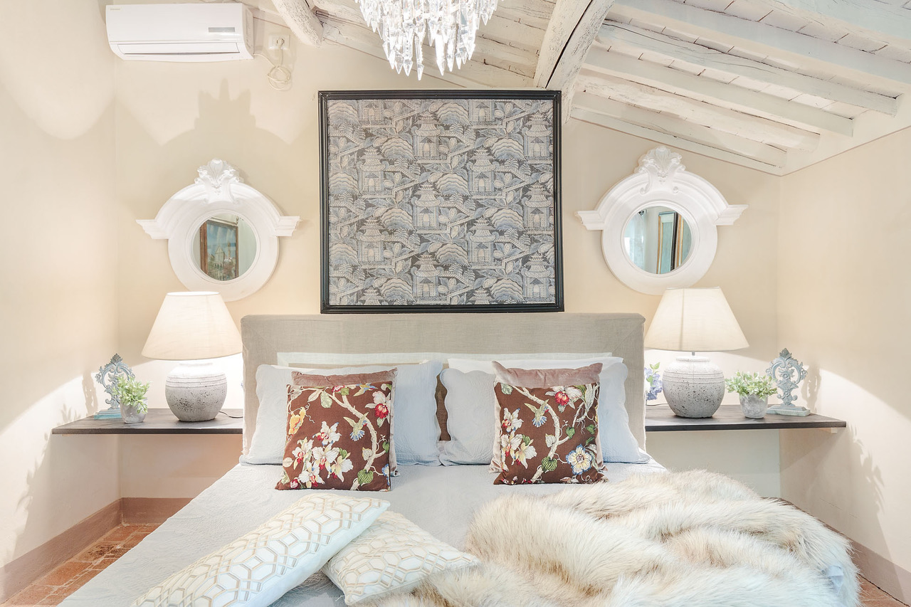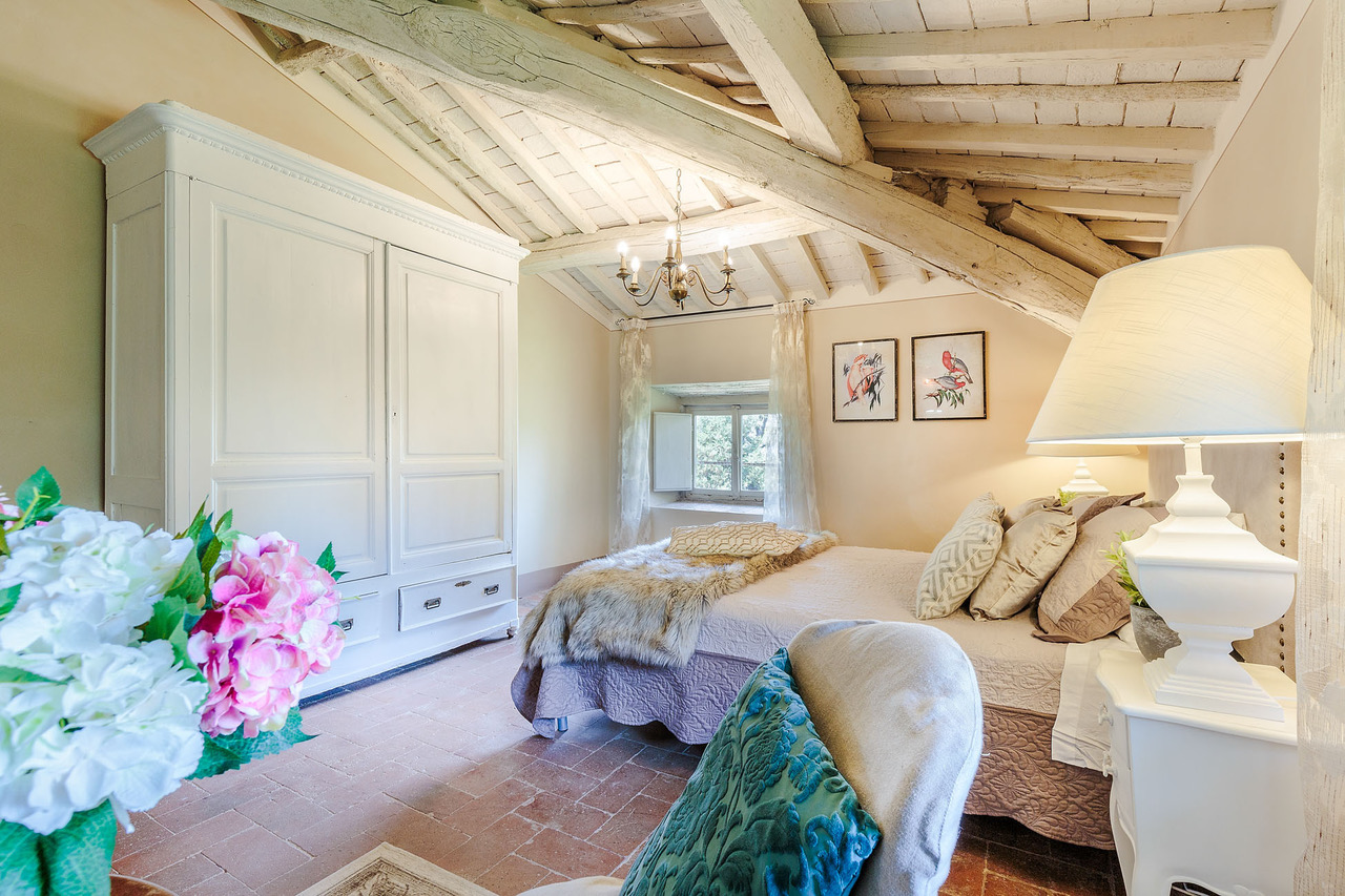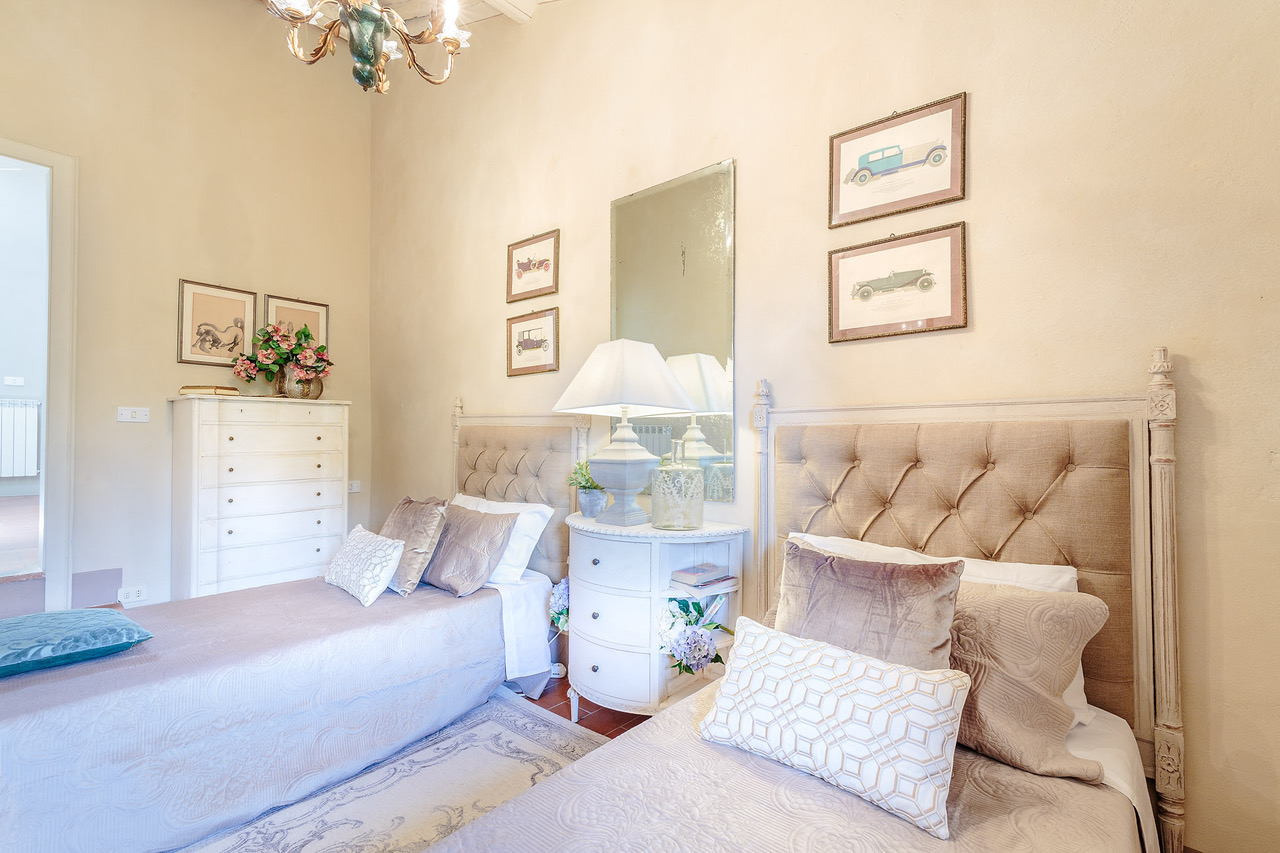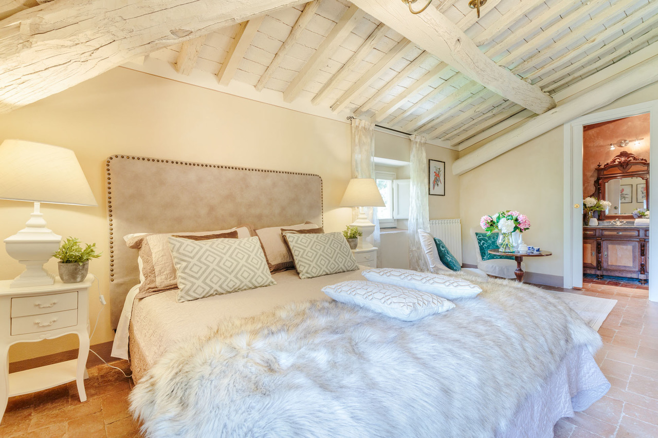 This charming house located on the outskirts of Lucca will be your new favorite. Extremely well maintained, you will discover inside a mix between baroque and contemporary. This alliance gives the house an atmosphere so warm that we would like to enjoy it indefinitely. Here and there, you will find some typical Tuscan elements: exposed beams and terracotta floors have been preserved to bring that touch of authenticity that we love in Tuscany. With its very high ceilings, one might think of this villa that it looks like a castle. This impression is also underlined by the very elaborate gilding and chandeliers that adorn each room. All these luxurious details come from the noble family who decided to build this house in the 17th century.