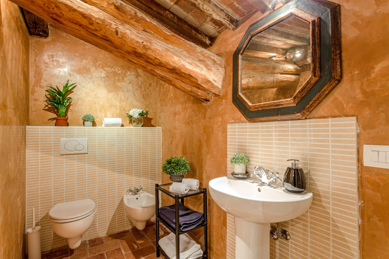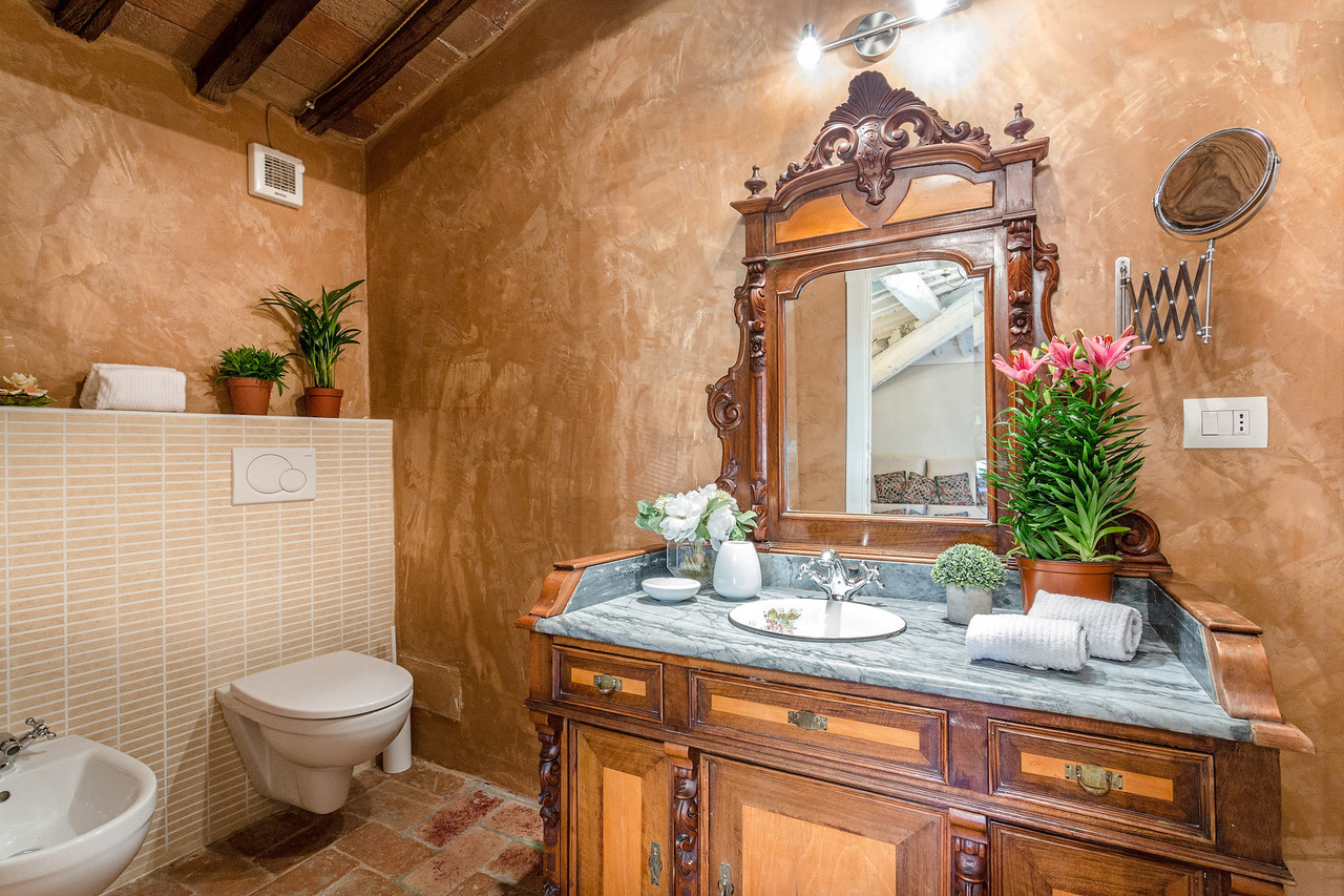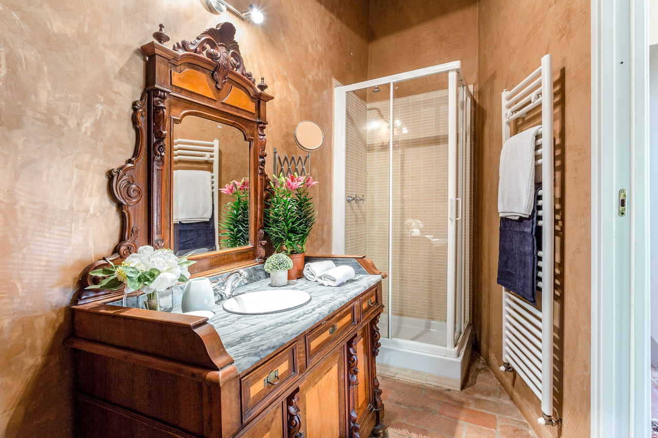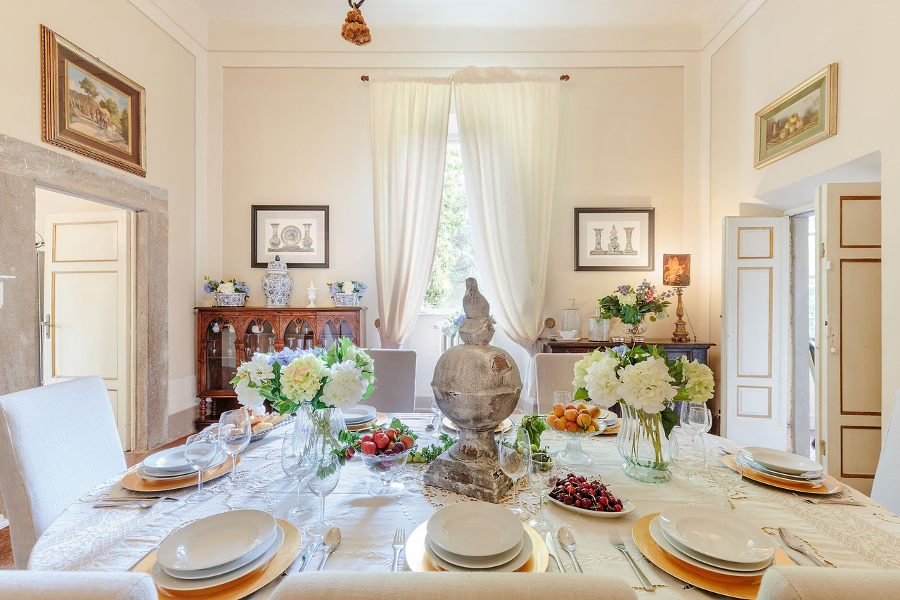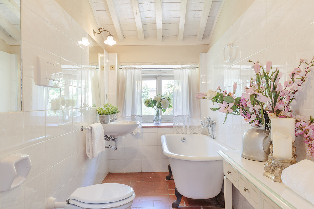 This charming house located on the outskirts of Lucca will be your new favorite. Extremely well maintained, you will discover inside a mix between baroque and contemporary. This alliance gives the house an atmosphere so warm that we would like to enjoy it indefinitely. Here and there, you will find some typical Tuscan elements: exposed beams and terracotta floors have been preserved to bring that touch of authenticity that we love in Tuscany. With its very high ceilings, one might think of this villa that it looks like a castle. This impression is also underlined by the very elaborate gilding and chandeliers that adorn each room. All these luxurious details come from the noble family who decided to build this house in the 17th century.