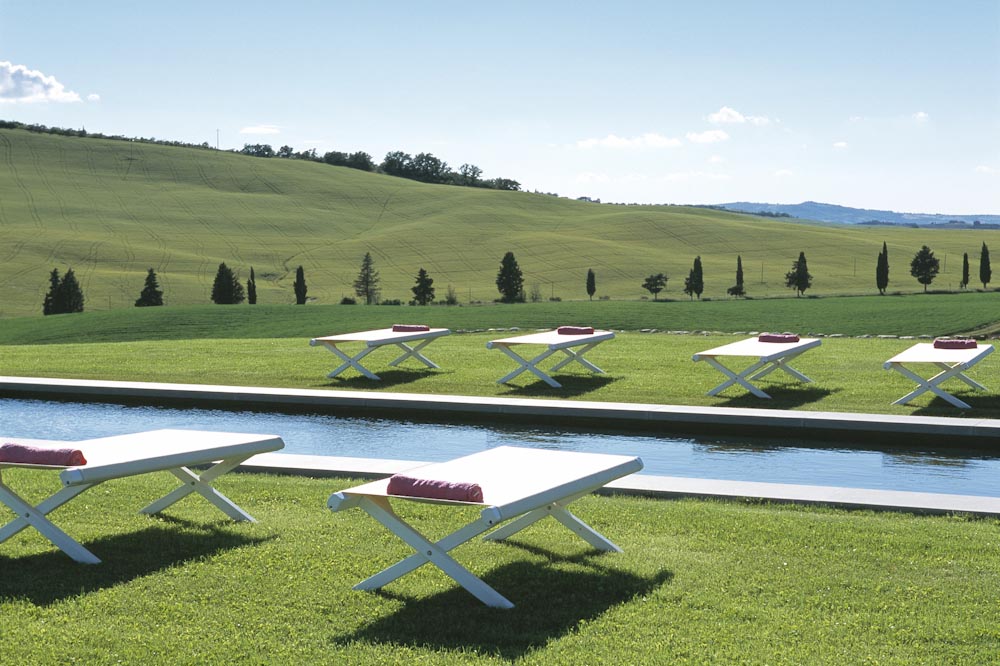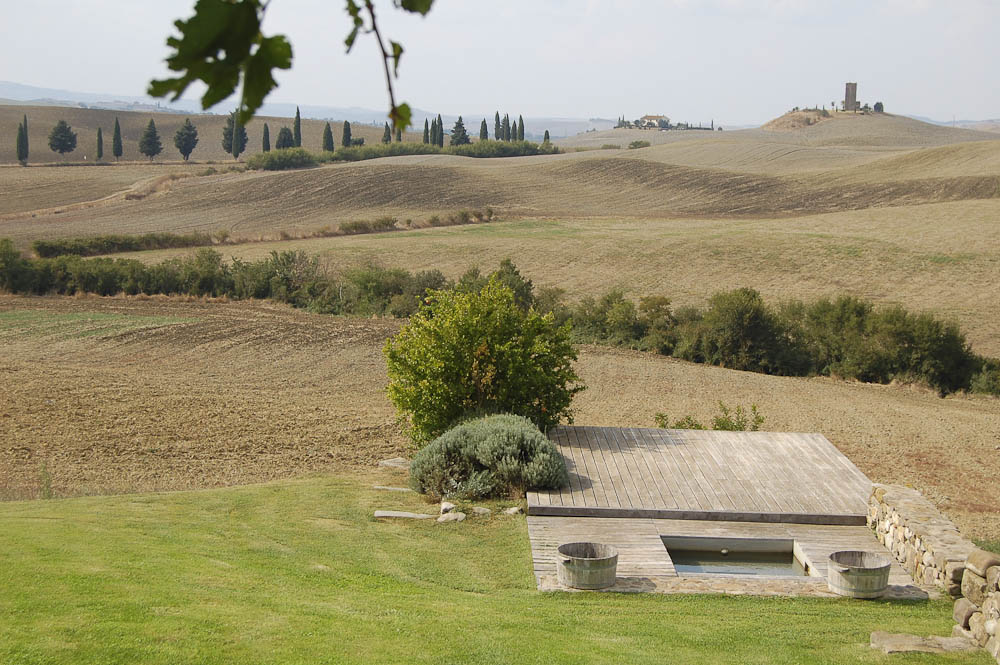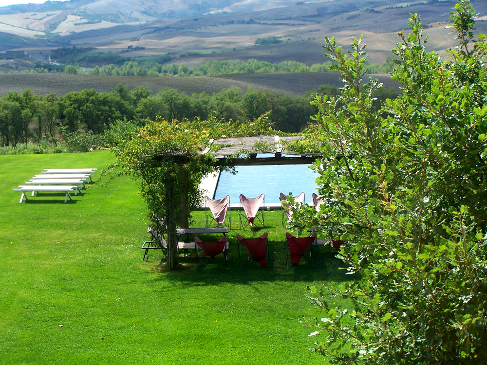 The open landscape of the Val d'Orcia offers exceptional panoramas that you will be able to admire from the heated hot tub for 6 people. The long narrow heated pool (20m x 4m) seems almost to be pouring itself onto the fields and farms below. A lower terrace along the west edge of the villa protects the well-organized and well-kept vegetable garden from the ceaseless breeze. In the garden, you will enjoy playing volley, croquet and football.