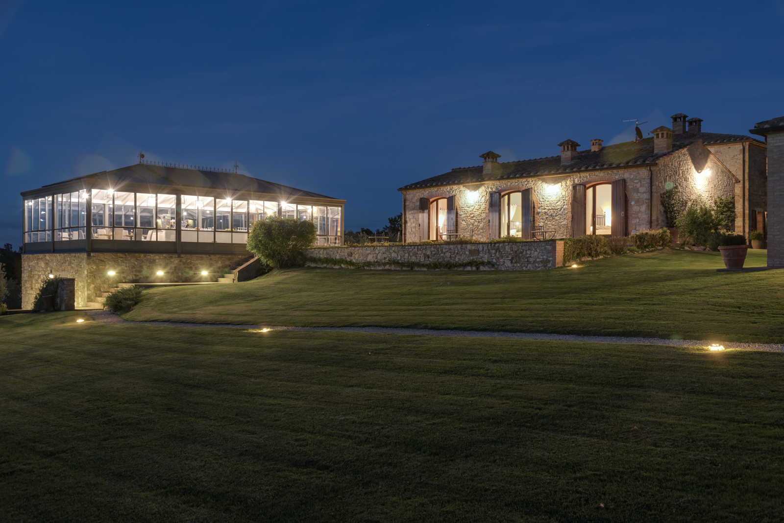 This elegant villa is located in the heart of the Romantic Tuscany between Pienza and Montefollonico. It has a panoramic position at the top of a hill that offers a 360° view on the surrounding countryside. The interiors are comfortable and refined, and each room is different. You will enjoy relaxing inside or outside the villa.