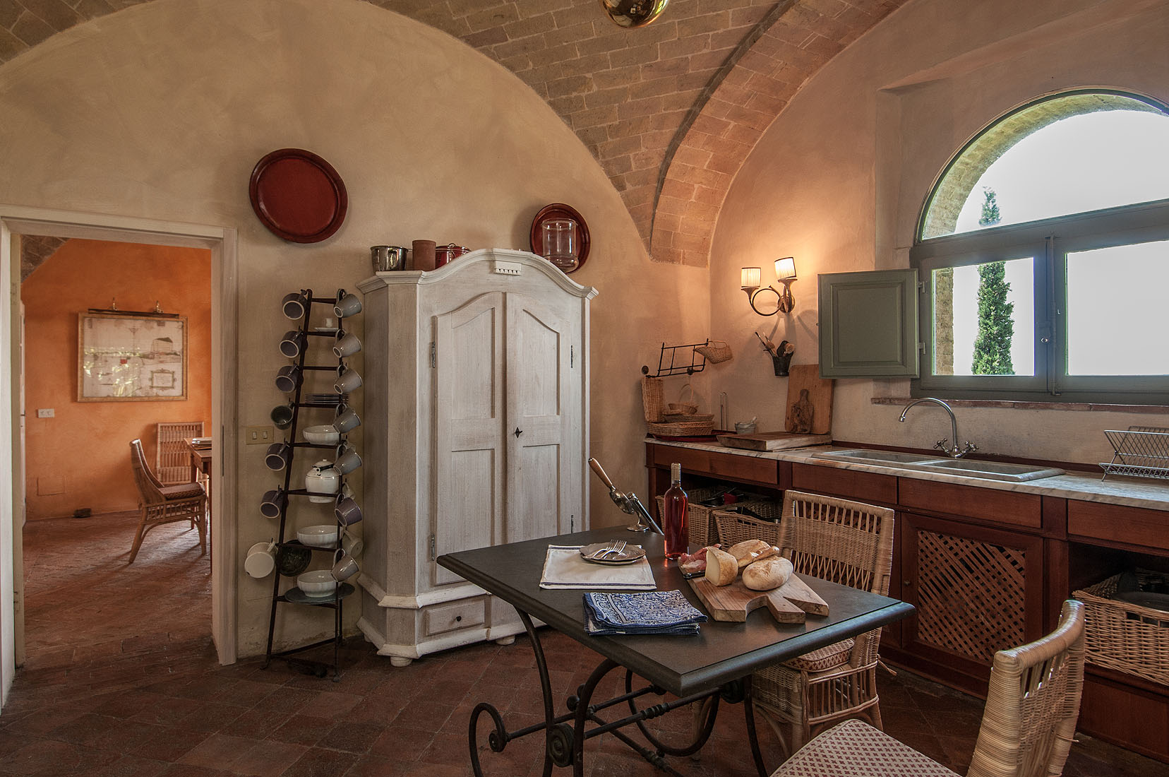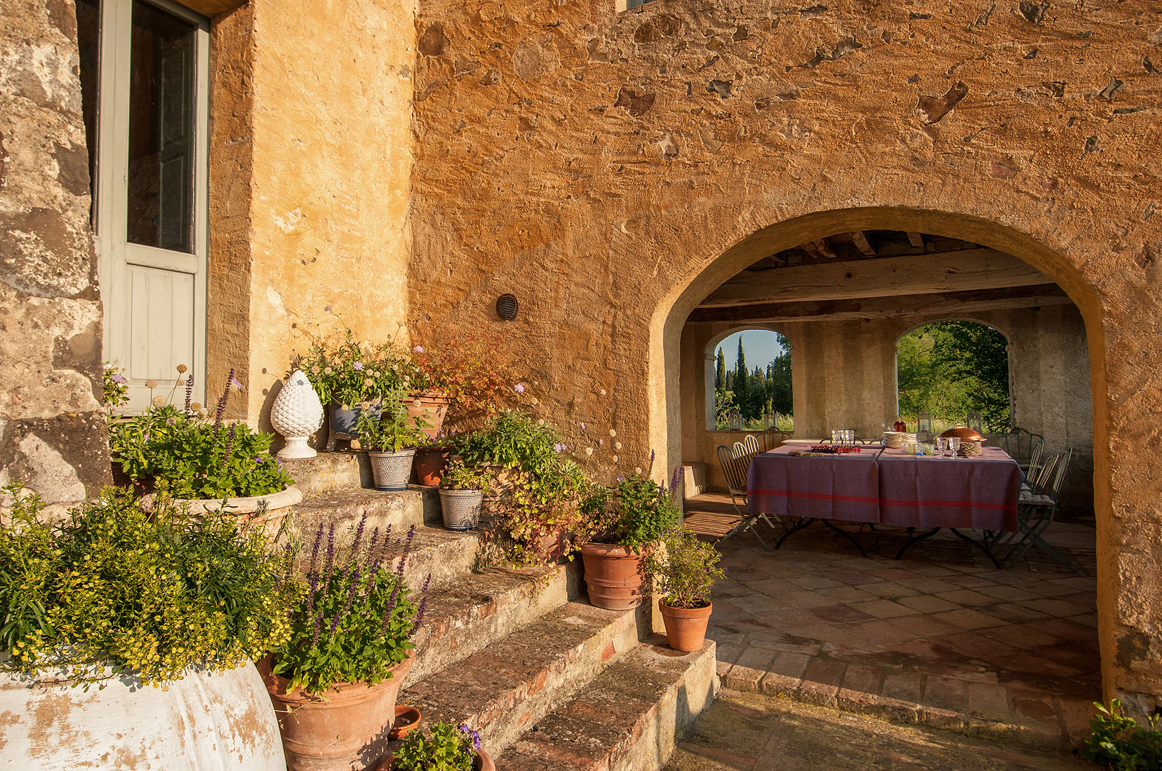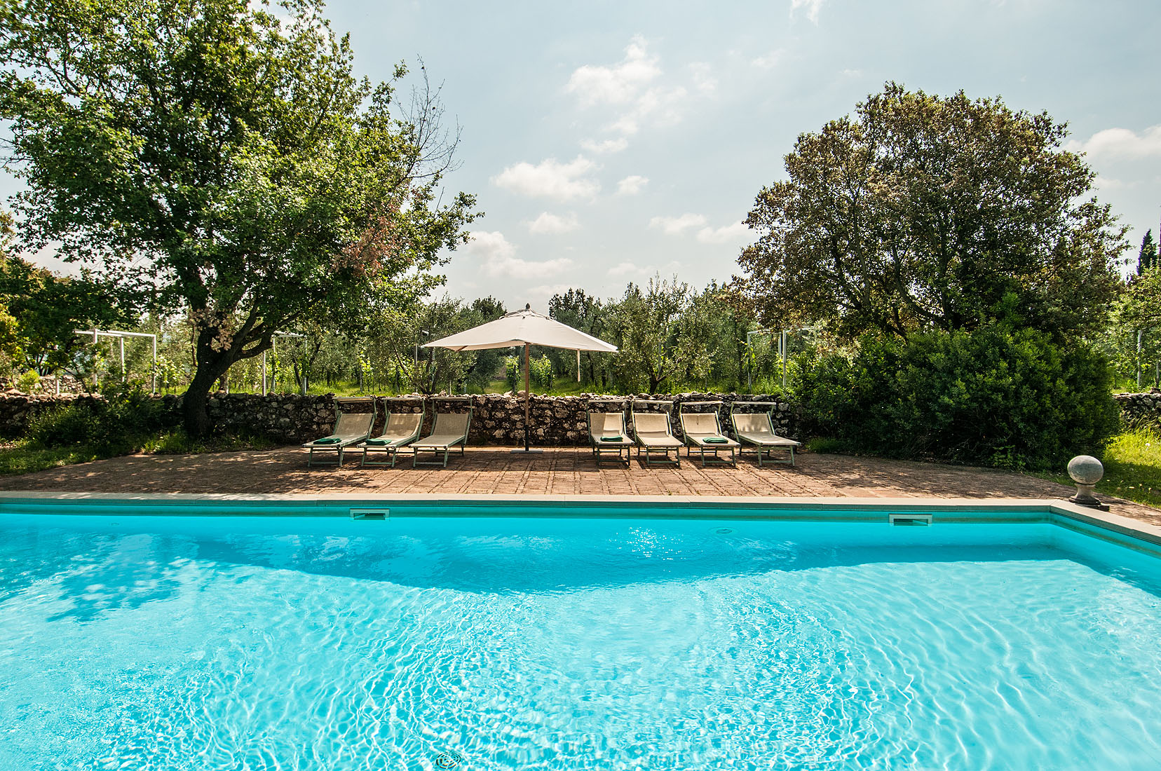 Meander through the lush garden, silhouetted against a picturesque backdrop of vineyards and rolling hills, until you reach the magnificent private swimming pool (12m x 6m), the ideal spot to relax and enjoy a glass of Brunello di Montalcino as night falls.