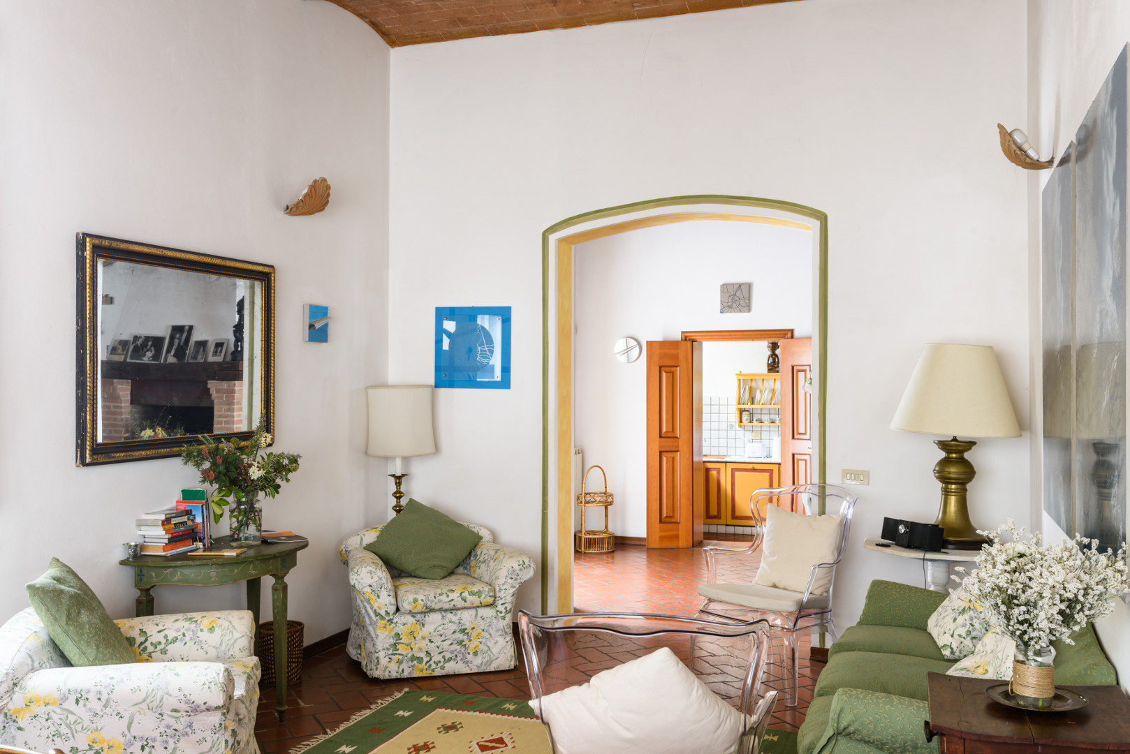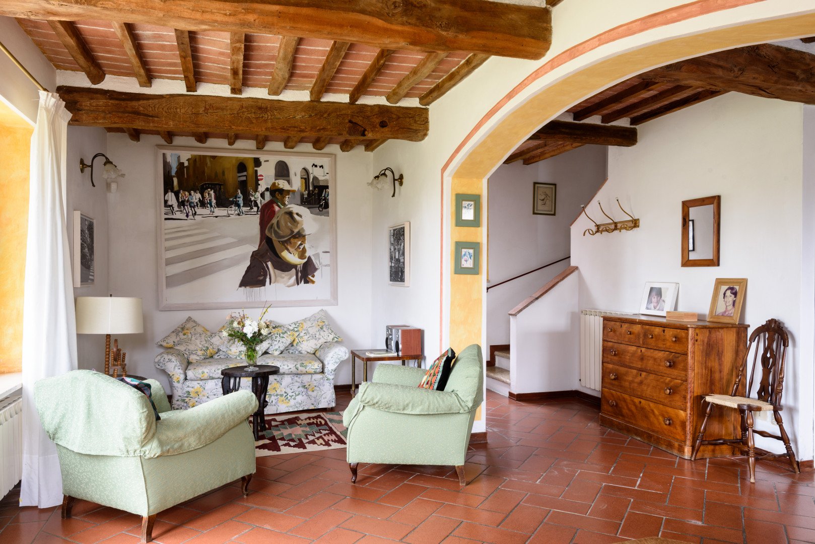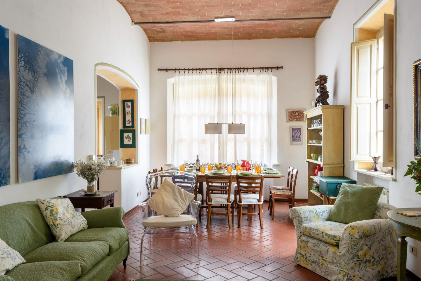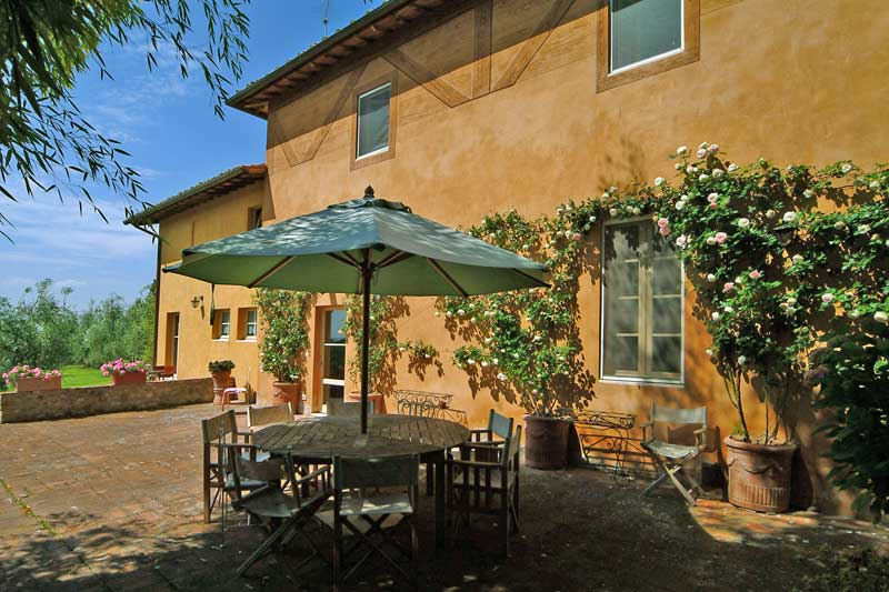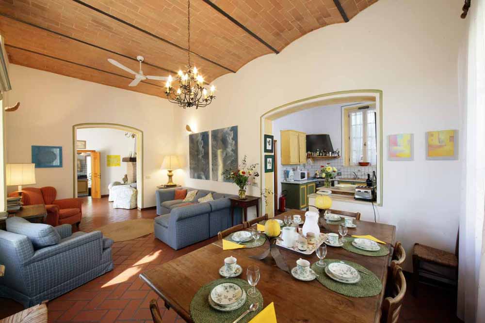 This charming 17th century villa was once a schoolhouse for a large estate, and has been restored as the private home of one of the family members. The restoration was carefully designed to retain the original architectural features with vaulted ceilings, cotta pavers, and brickwork floors. The villa is large and will comfortably accommodate 10 people. Views are classically Tuscan, surrounded on three sides by an olive grove, the property is very private and affords a wonderful view of the rolling hills of the countryside and vineyards. Here you're private and yet very close to dining, shopping, and many activities including touring Chianti, horseback riding, tennis court located on the property, and mountain biking