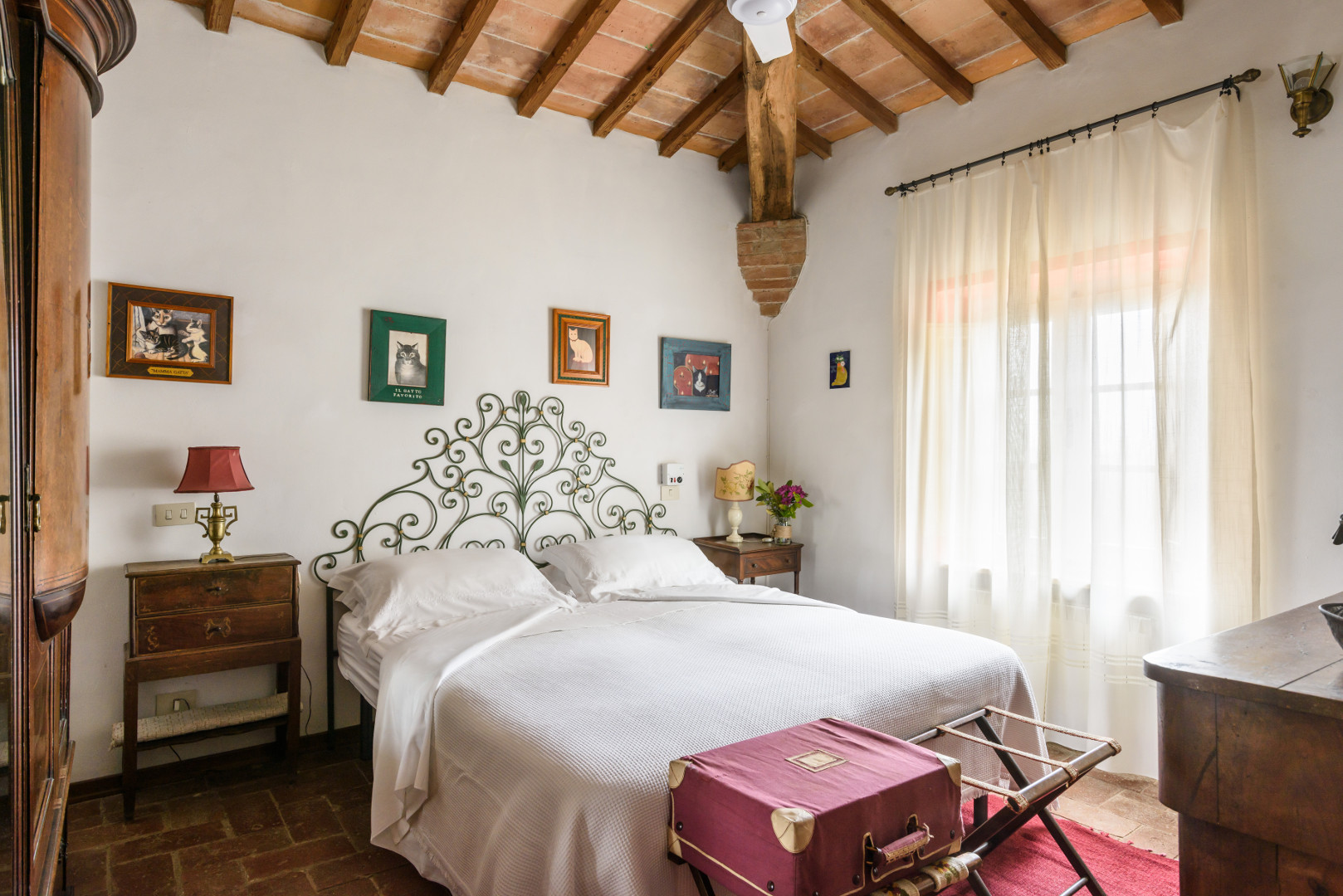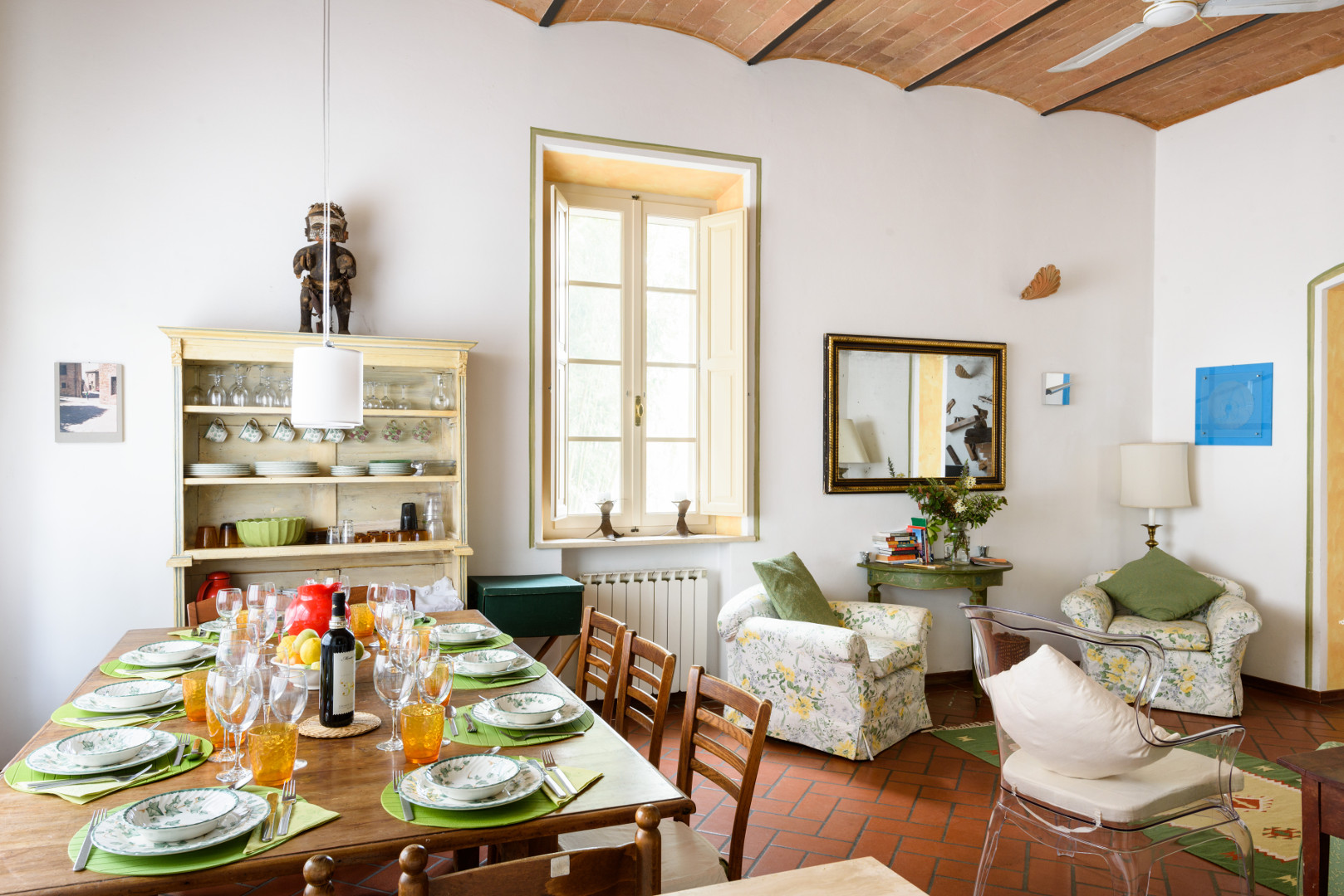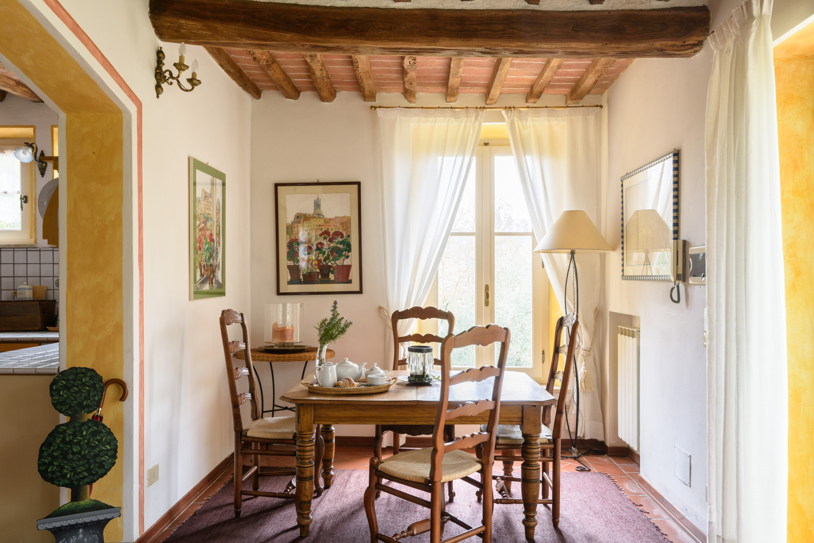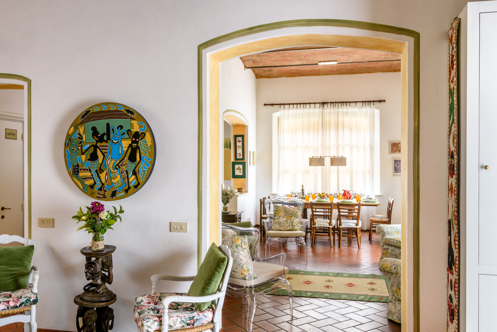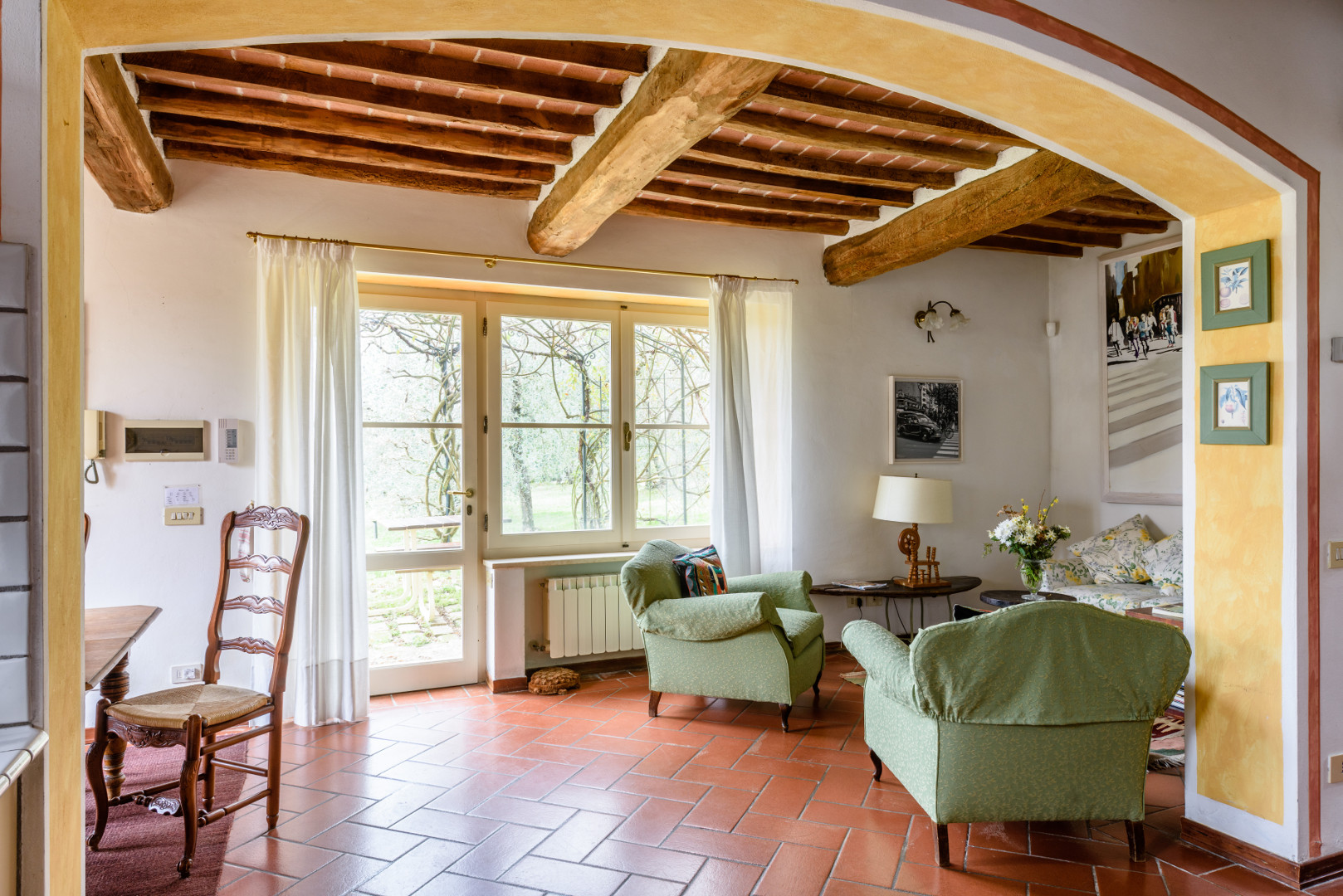 This charming 17th century villa was once a schoolhouse for a large estate, and has been restored as the private home of one of the family members. The restoration was carefully designed to retain the original architectural features with vaulted ceilings, cotta pavers, and brickwork floors. The villa is large and will comfortably accommodate 10 people. Views are classically Tuscan, surrounded on three sides by an olive grove, the property is very private and affords a wonderful view of the rolling hills of the countryside and vineyards. Here you're private and yet very close to dining, shopping, and many activities including touring Chianti, horseback riding, tennis court located on the property, and mountain biking