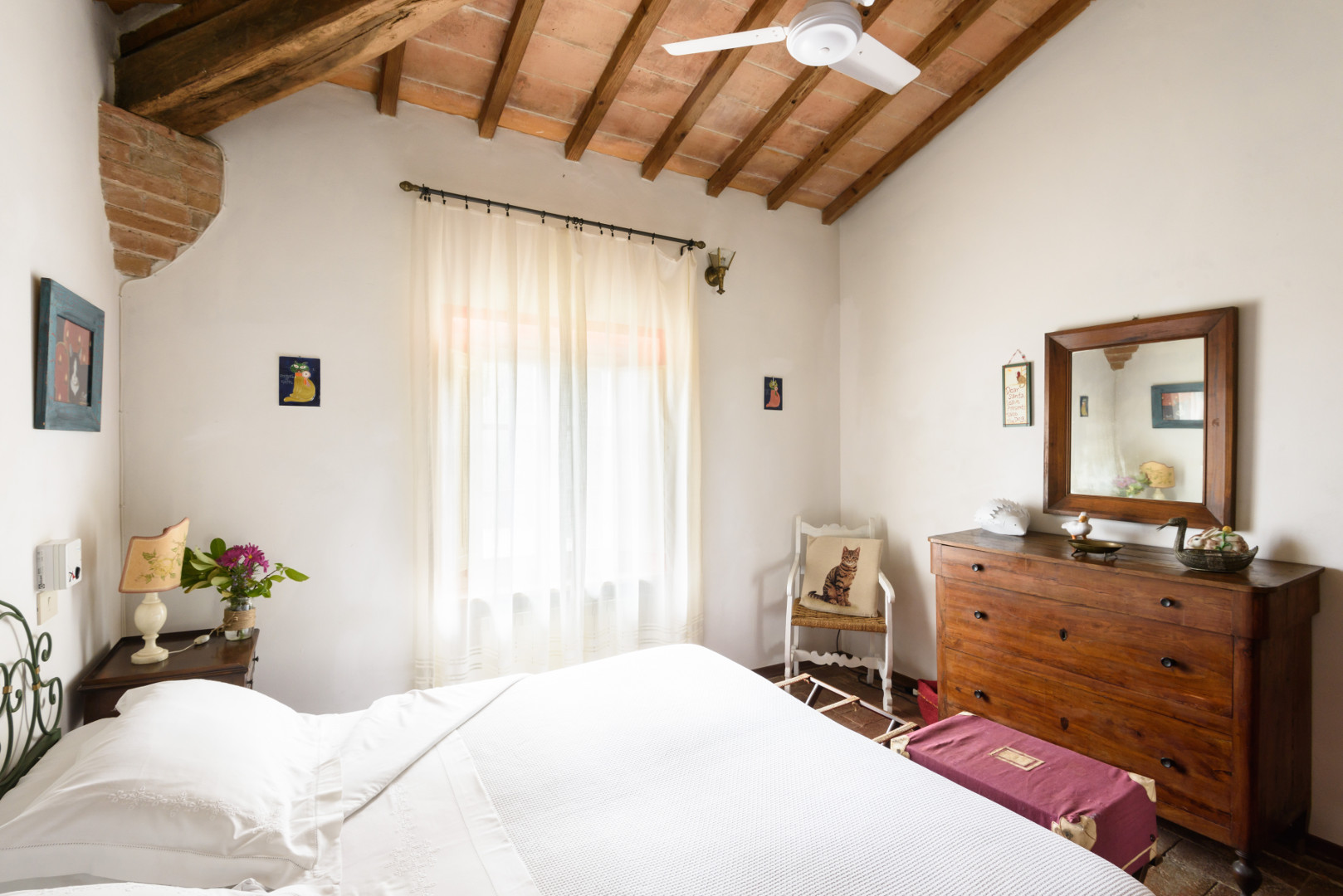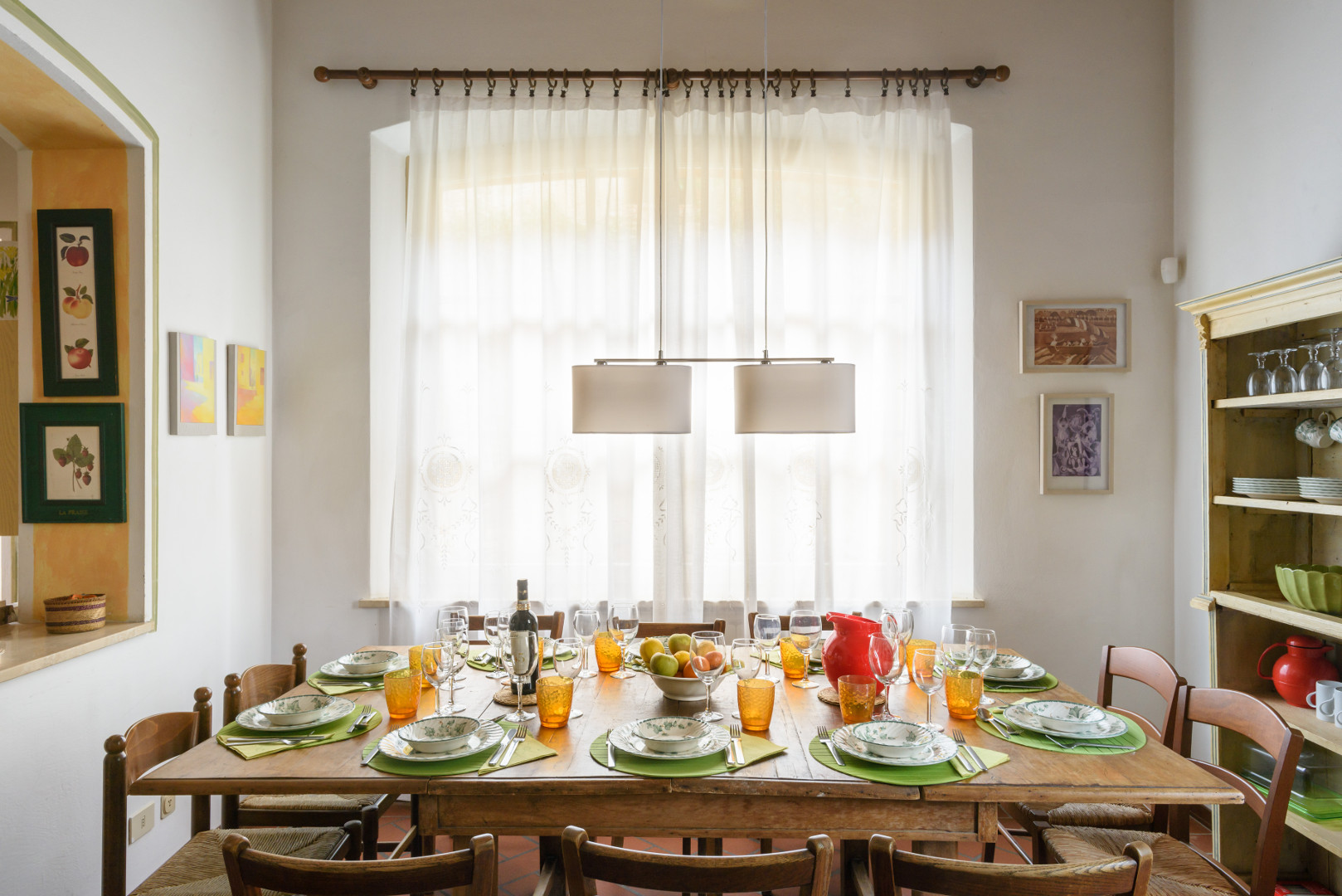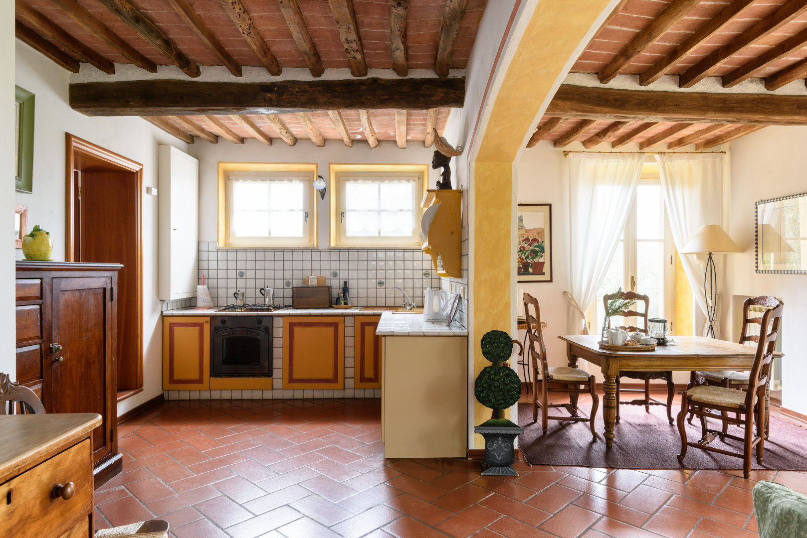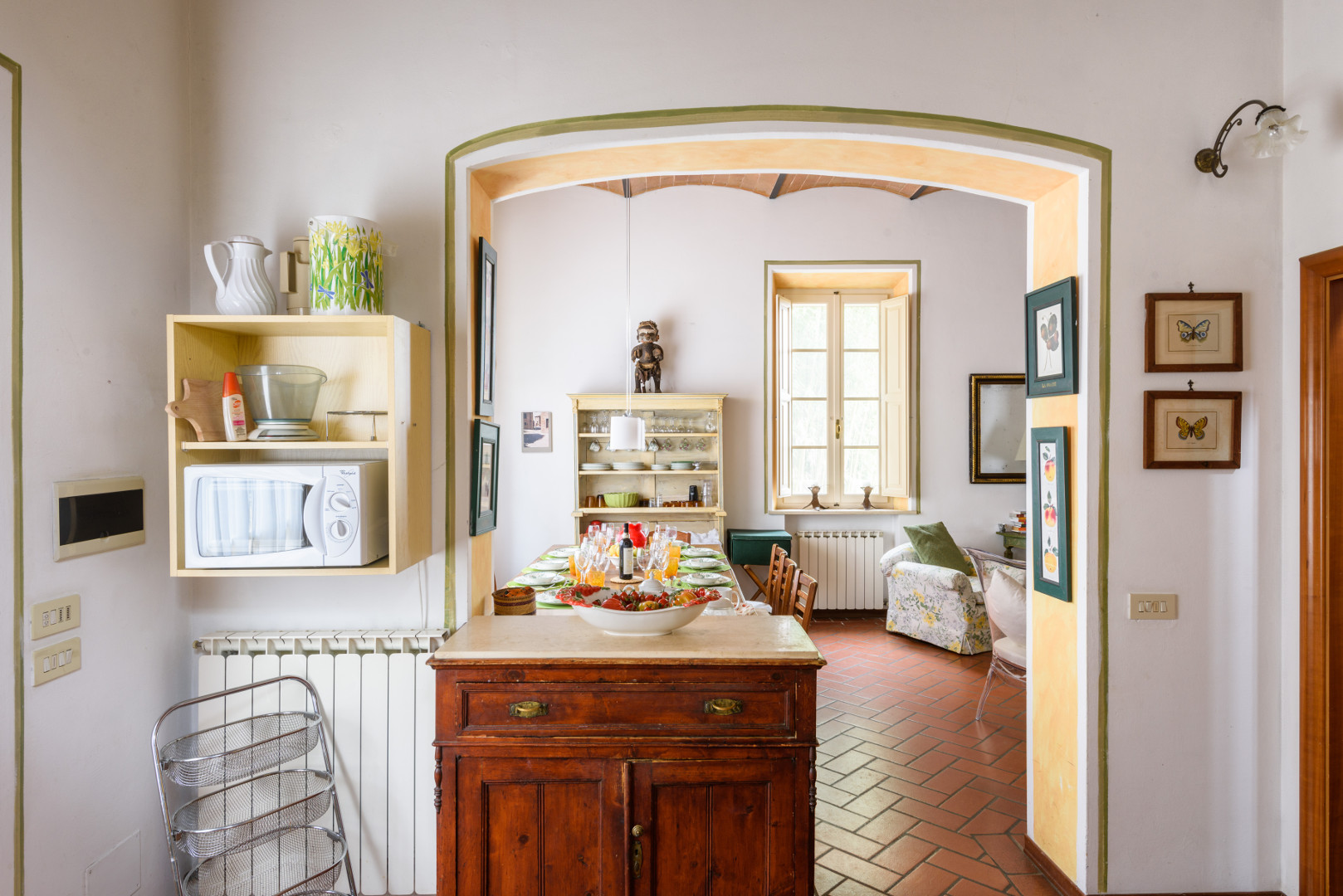 This charming 17th century villa was once a schoolhouse for a large estate, and has been restored as the private home of one of the family members. The restoration was carefully designed to retain the original architectural features with vaulted ceilings, cotta pavers, and brickwork floors. The villa is large and will comfortably accommodate 10 people. Views are classically Tuscan, surrounded on three sides by an olive grove, the property is very private and affords a wonderful view of the rolling hills of the countryside and vineyards. Here you're private and yet very close to dining, shopping, and many activities including touring Chianti, horseback riding, tennis court located on the property, and mountain biking