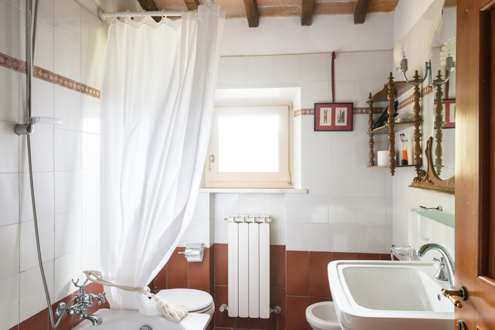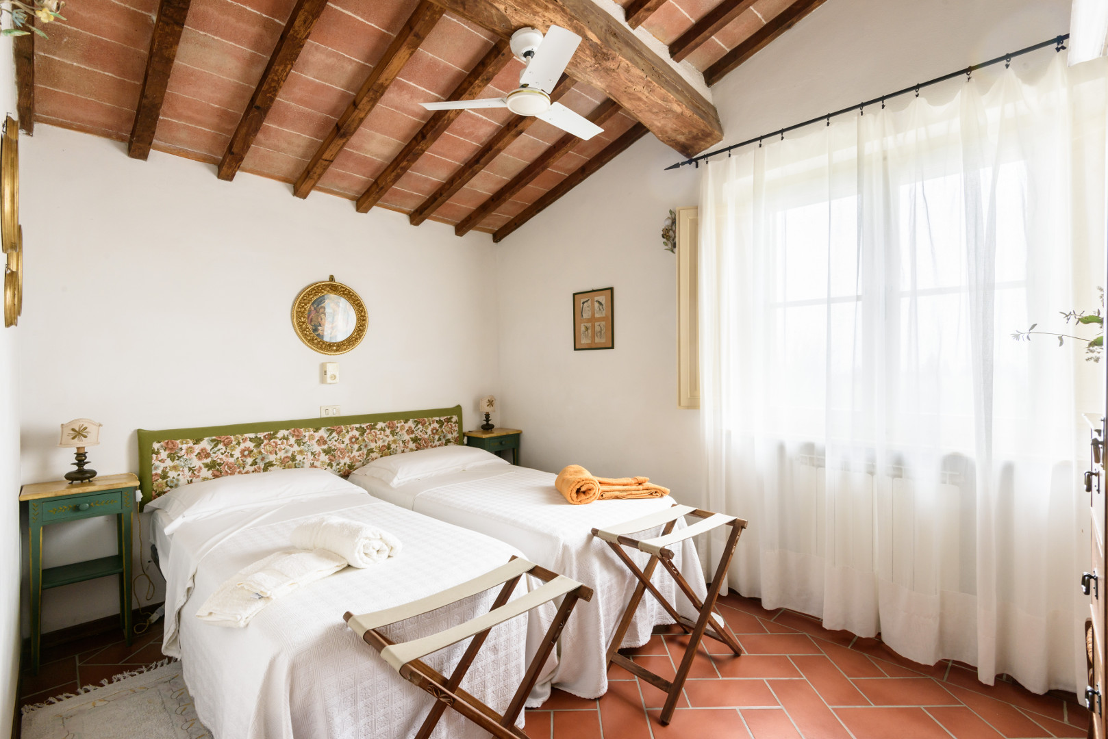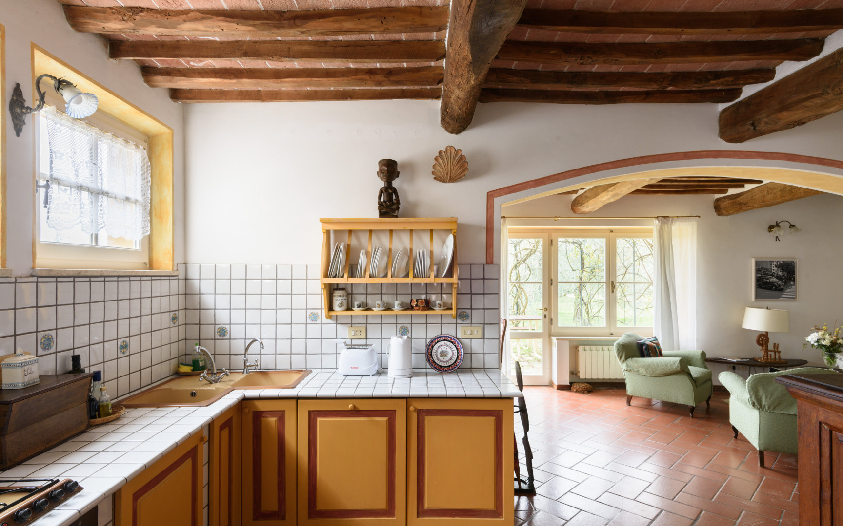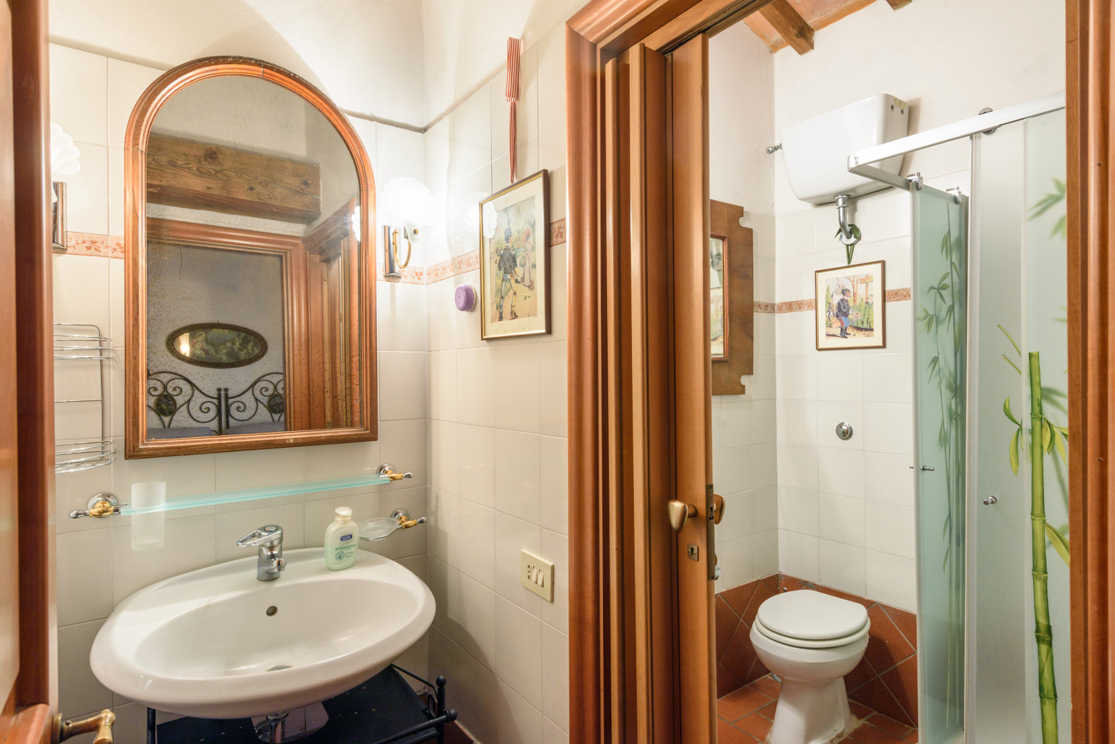This charming 17th century villa was once a schoolhouse for a large estate, and has been restored as the private home of one of the family members. The restoration was carefully designed to retain the original architectural features with vaulted ceilings, cotta pavers, and brickwork floors. The villa is large and will comfortably accommodate 10 people. Views are classically Tuscan, surrounded on three sides by an olive grove, the property is very private and affords a wonderful view of the rolling hills of the countryside and vineyards. Here you're private and yet very close to dining, shopping, and many activities including touring Chianti, horseback riding, tennis court located on the property, and mountain biking