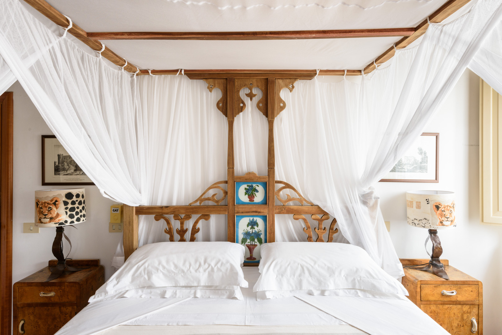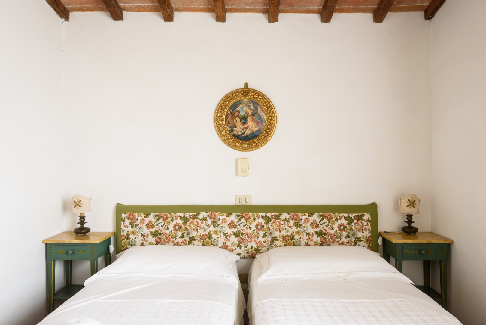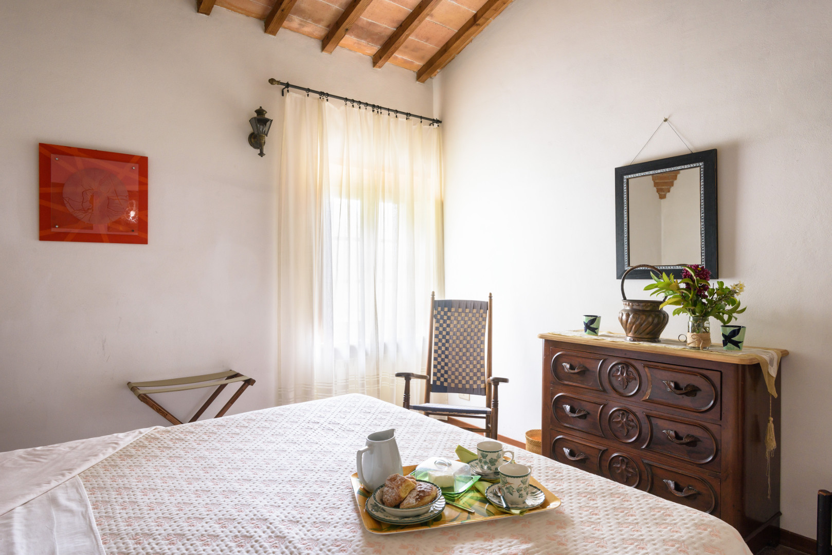 Double bedroom style zanzibar with wiev on Siena and Crète Senesi with king-size bed, fans and Independant Bathroom with bath, hair dryer