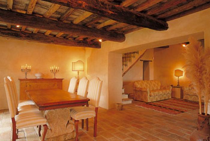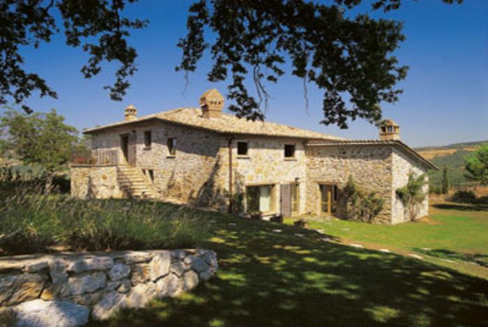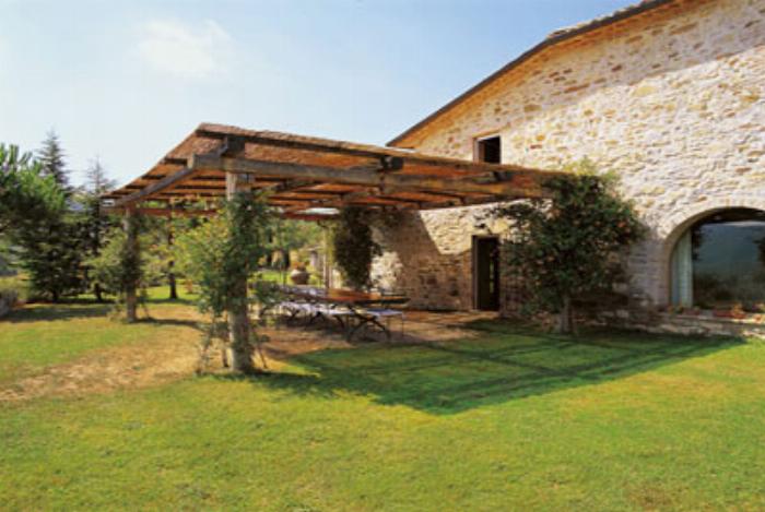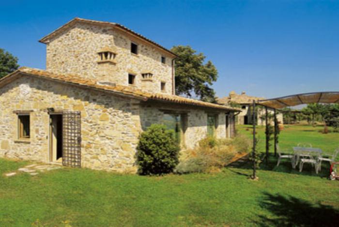 Situated in a dominating position close to the top of a hill, only a few kilometres away from Tuscany, this is a splendid villa, comprising a large stone farmhouse and its annex, just 40 metres away, each with its own private driveway. Set in a large garden, each of the houses has a well-equipped pergola for dining outdoors, with stunning views of the surrounding countryside. Large picture windows in the living area of both houses allow one to enjoy the panorama of the rolling Umbrian hills. The swimming pool is situated on a raised terrace next to the villa. The interiors have been finely restored with prestigious materials: antique doors, 18th Century oak-beamed ceilings, stone fireplaces and old terracotta floors. A shared hard tennis court located in an exclusive club can be used by the guests of the villa (3 min by car). Spectacular views, tranquil sunsets and a relaxed quality of life, all have been the inspiration of the owners, enchanted with the area and the villa.