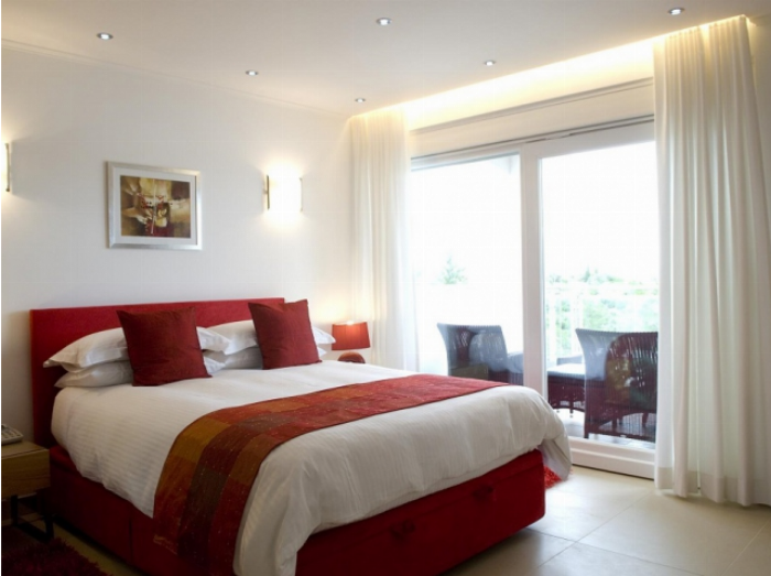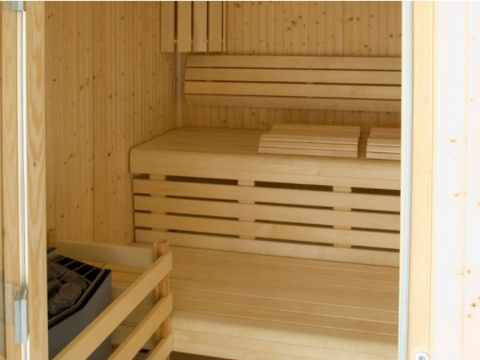 Master bedroom and Ensuite bathroom with bath, shower, sauna