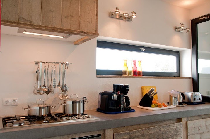 Open kitchen with freezer, coffee machine, microwave oven, dishwasher, toaster, fridge, gas stove, barbecue