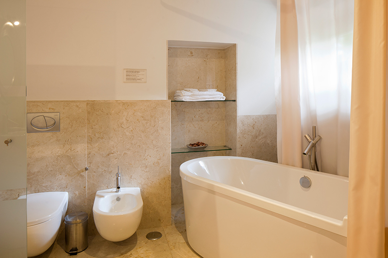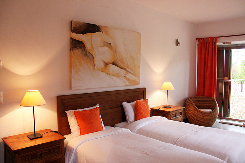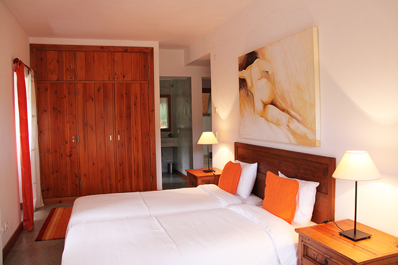 Twin bedroom with air conditioning and Ensuite bathroom with bath, wc