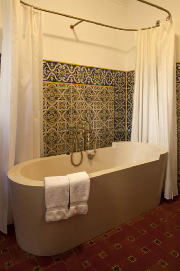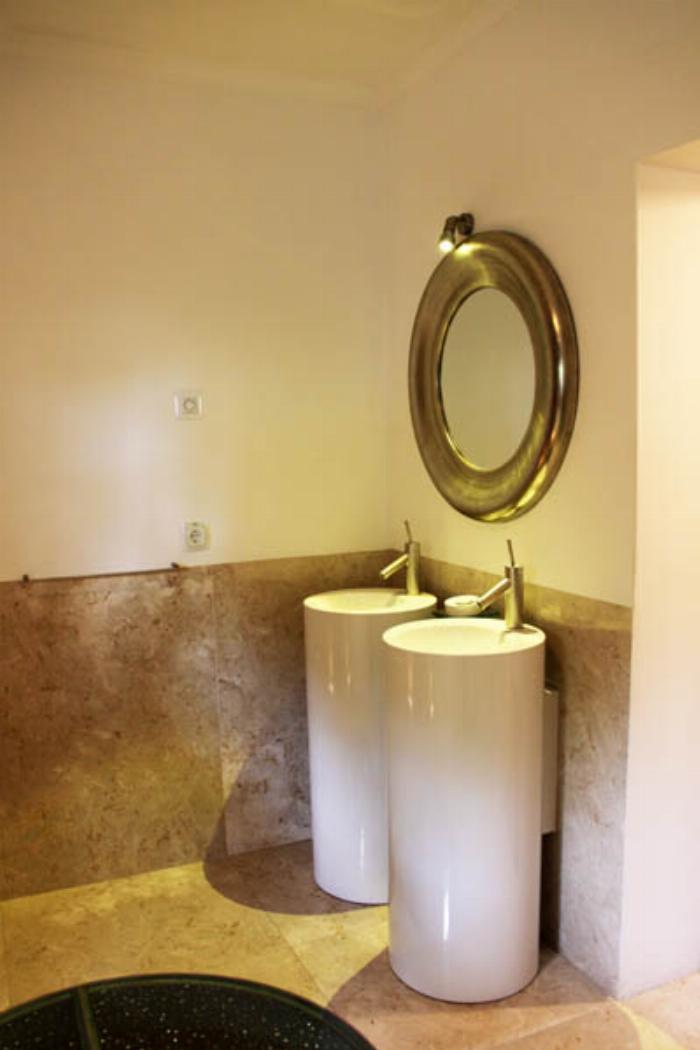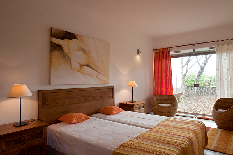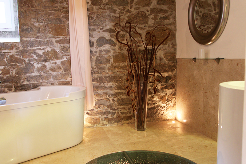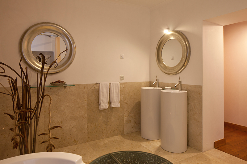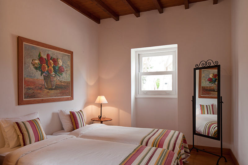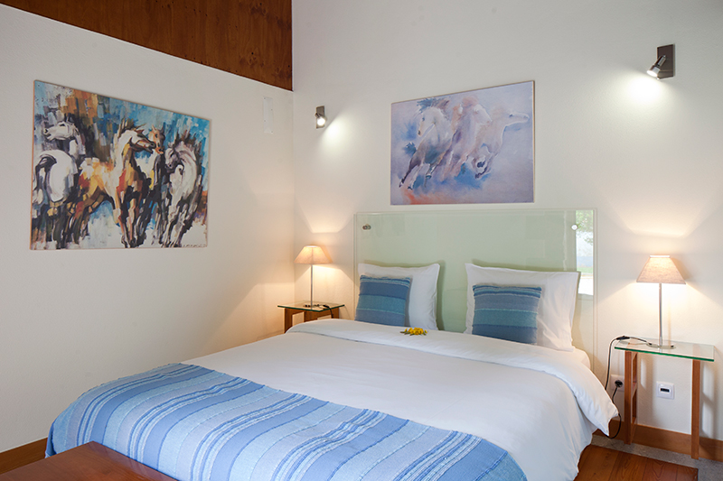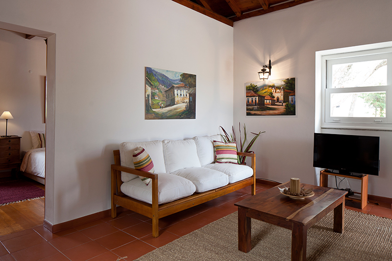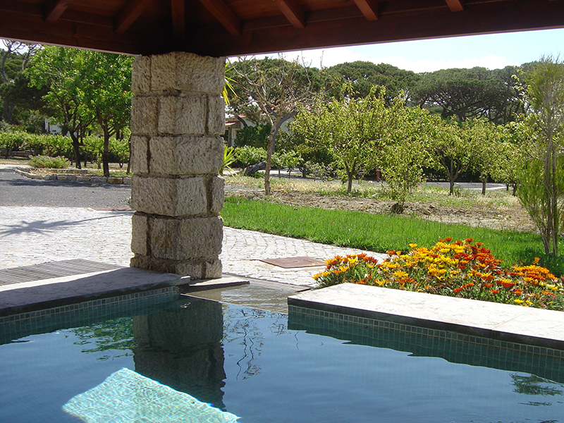 This luxury villa is located in the protected area of Sintra on the outskirts of Magoito, a small village that offers a glimpse of rural Portugal. Built in the early 1900s, this mansion was completely renovated in 2005. There are 2 cottages and a chapel attached to the main house. All buildings have been carefully renovated by the new owner using high quality materials, while retaining the charm of an old farm house with modern comforts. The tiles of the villa painted by hand has been preserved and restored. The water well was covered with glass and this is one of the special features of the bathrooms in the main house. The decor is simple with neutral colored sofas, discreet artistic works, a combination of large wooden beams and tiled floors, exposed brickwork and high ceilings creating a relaxing atmosphere reminiscent of the past.