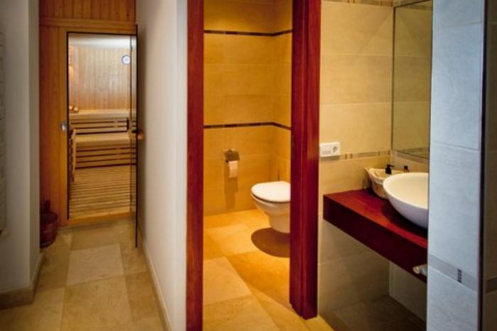 It offers a heated swimming pool with electric cover , a steam room, a sauna, a jacuzzi, a gym with showers and toilets, a cinema room , billiards.