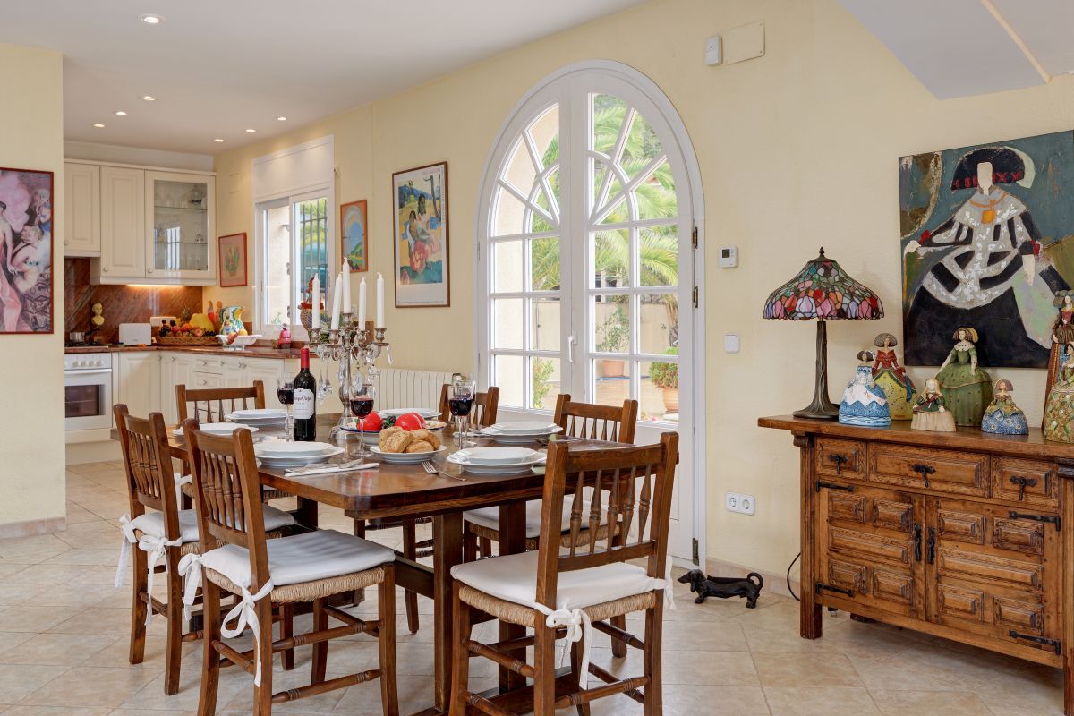 Located in the residential area of Aigua Gelida, this beautiful villa is only 1.5 km from Tamariu beach, has a beautiful garden, a private pool and a magnificent view of the sea. sea. The interiors are simple and comfortable, soothing colors in white and cream tones and furniture in a pretty wood.