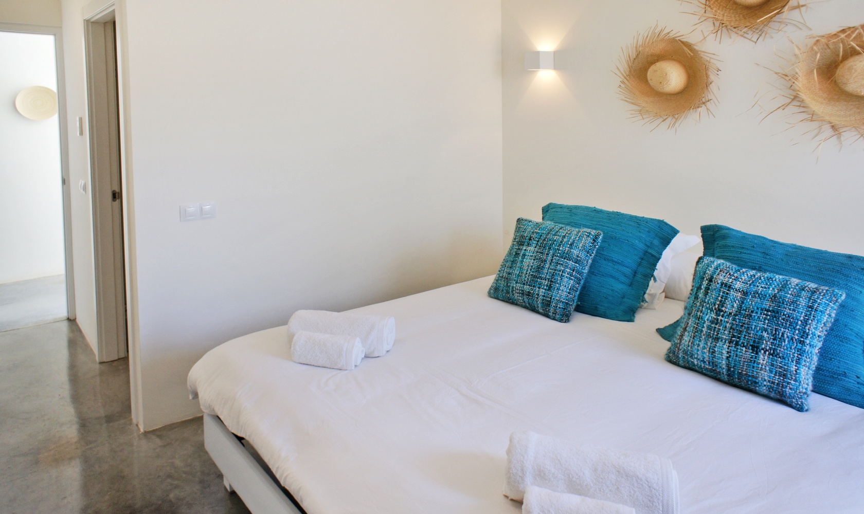This modern villa, made with white walls and stones, reminds the perfect balance of Ibiza, between modernity and tradition.