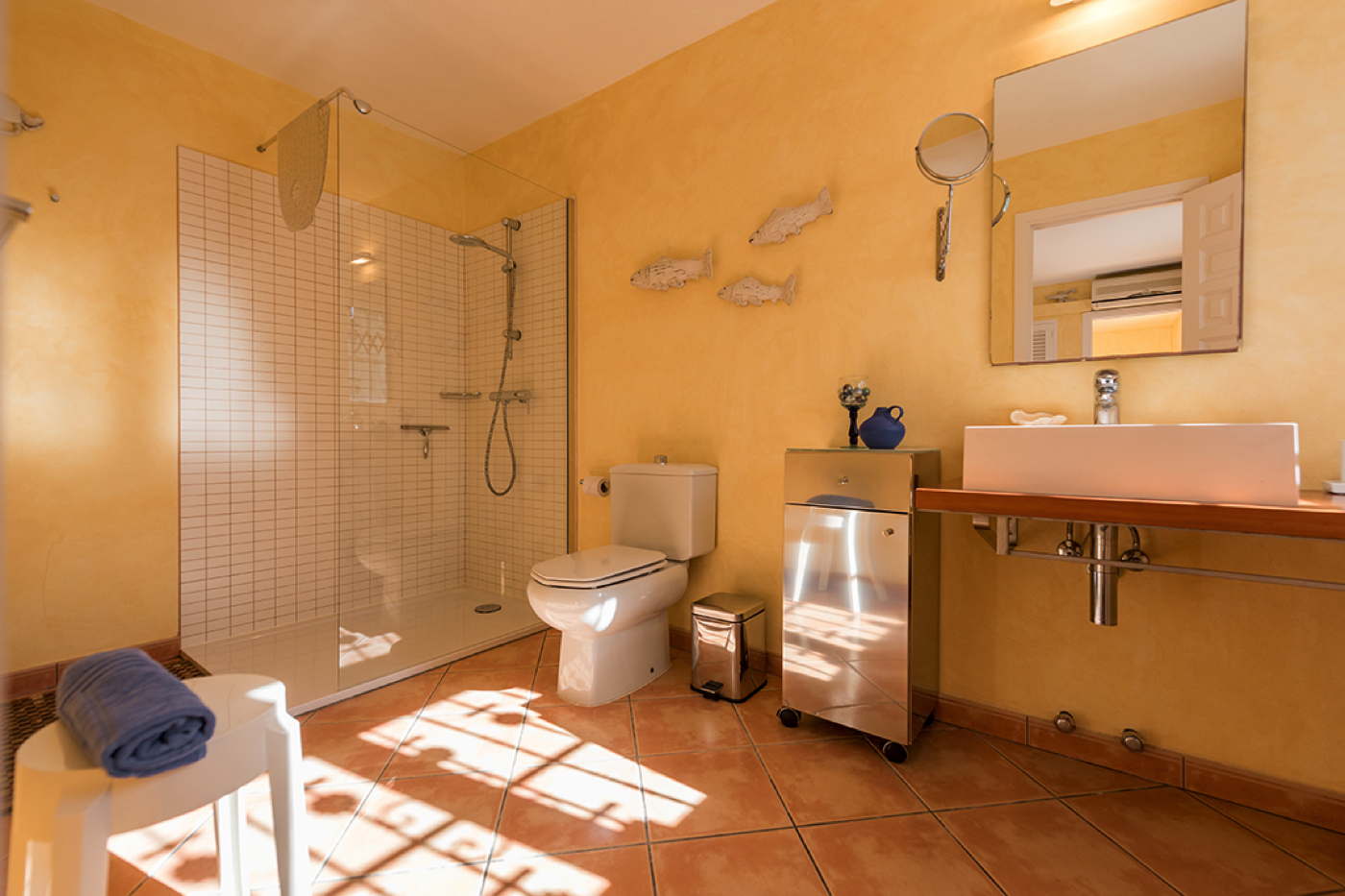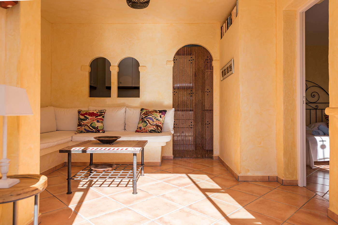 This enchanting finca lies in the beautiful bay of Cala Carbo, with stunning views of the sea and the storied rock of Vedra. From here, one can enjoy spectacular sunsets and watch yachts on their way between San Antonio and Formentera. The property is completely fenced in.