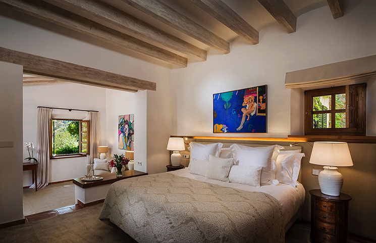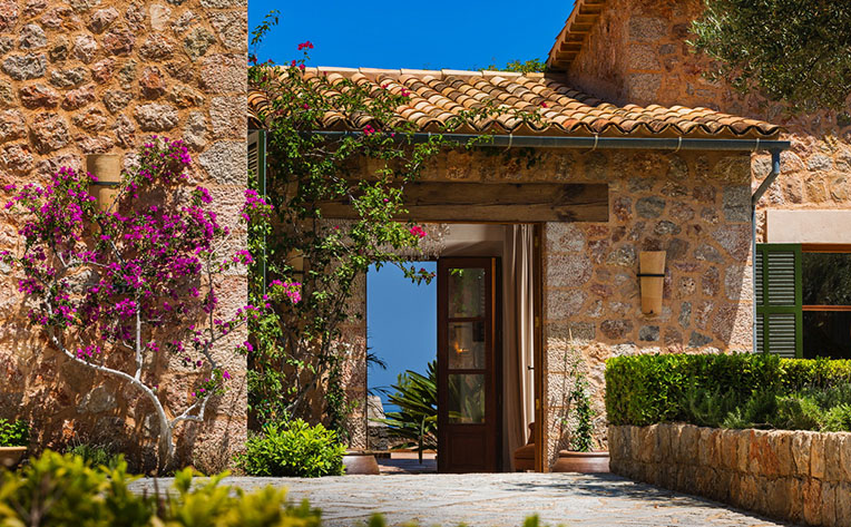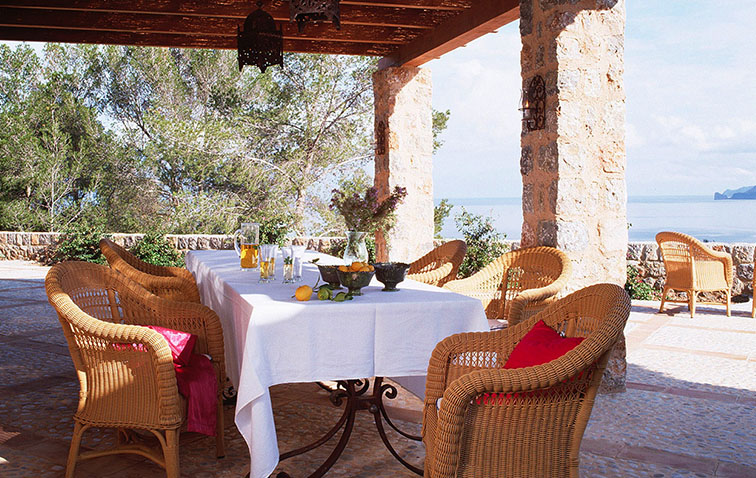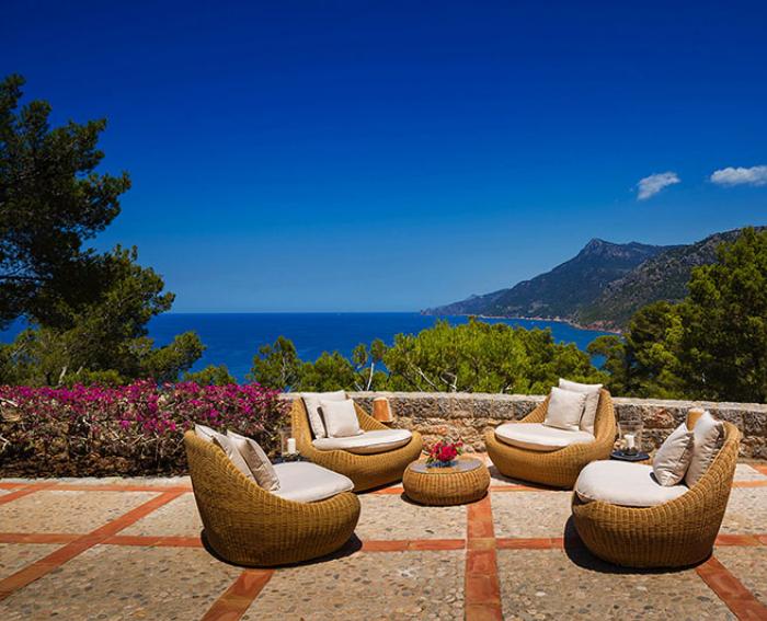 This villa is located in a completely secluded location. Dominating the west coast of the island of Majorca, it offers splendid panoramic views down to the sea. It was built in a Spanish style with an interior courtyard where many flowers and plants create a Mediterranean atmosphere.