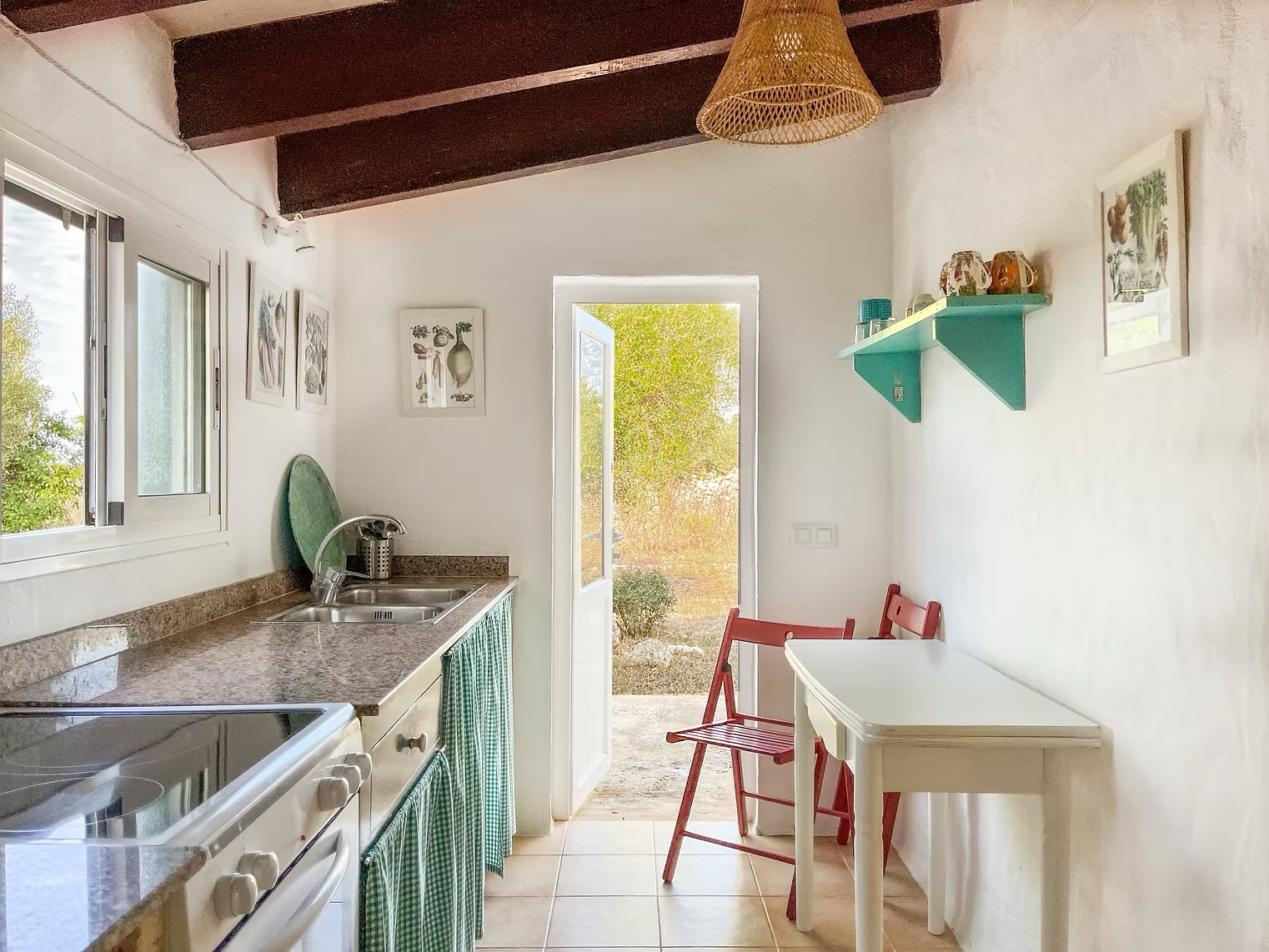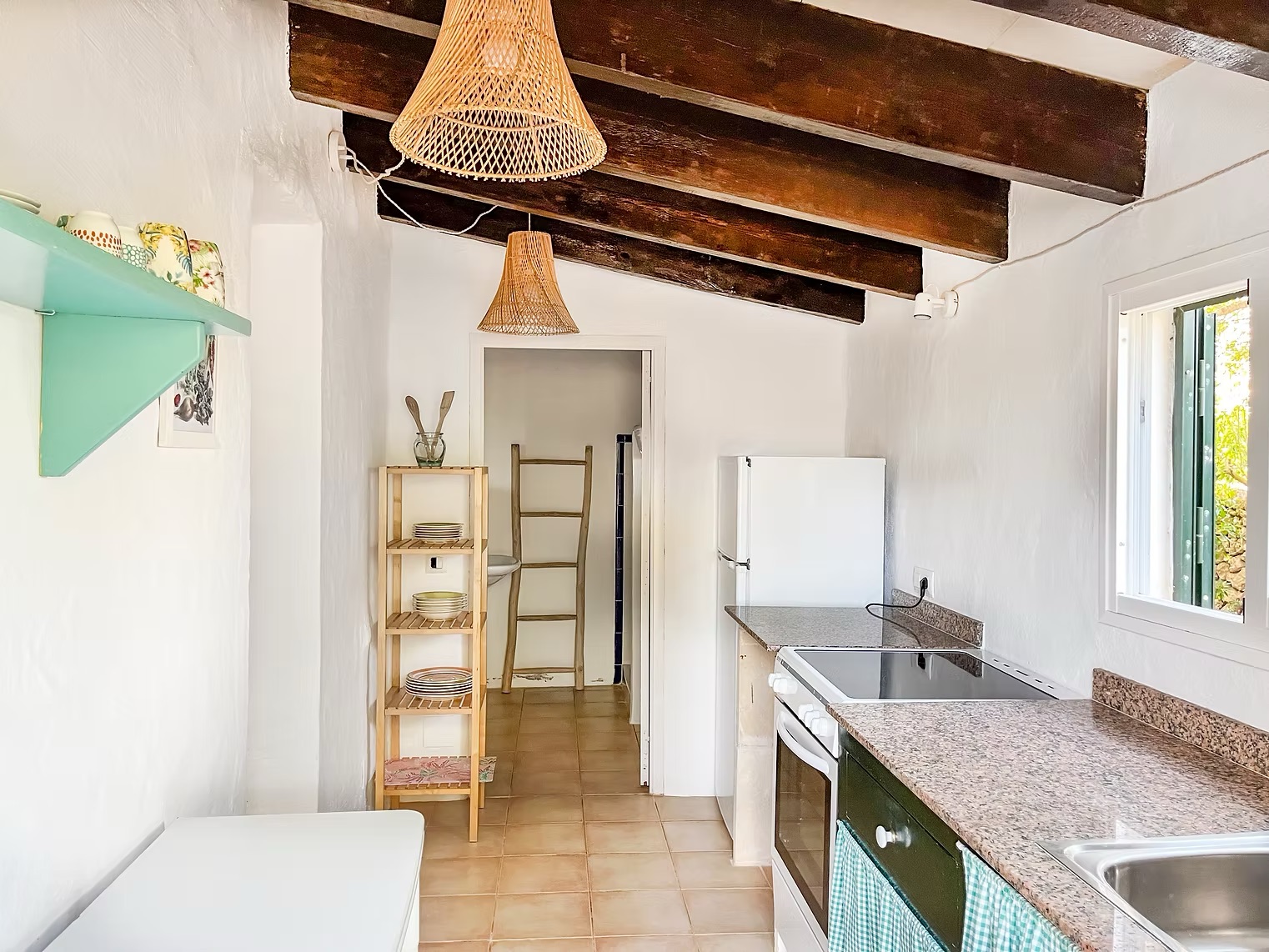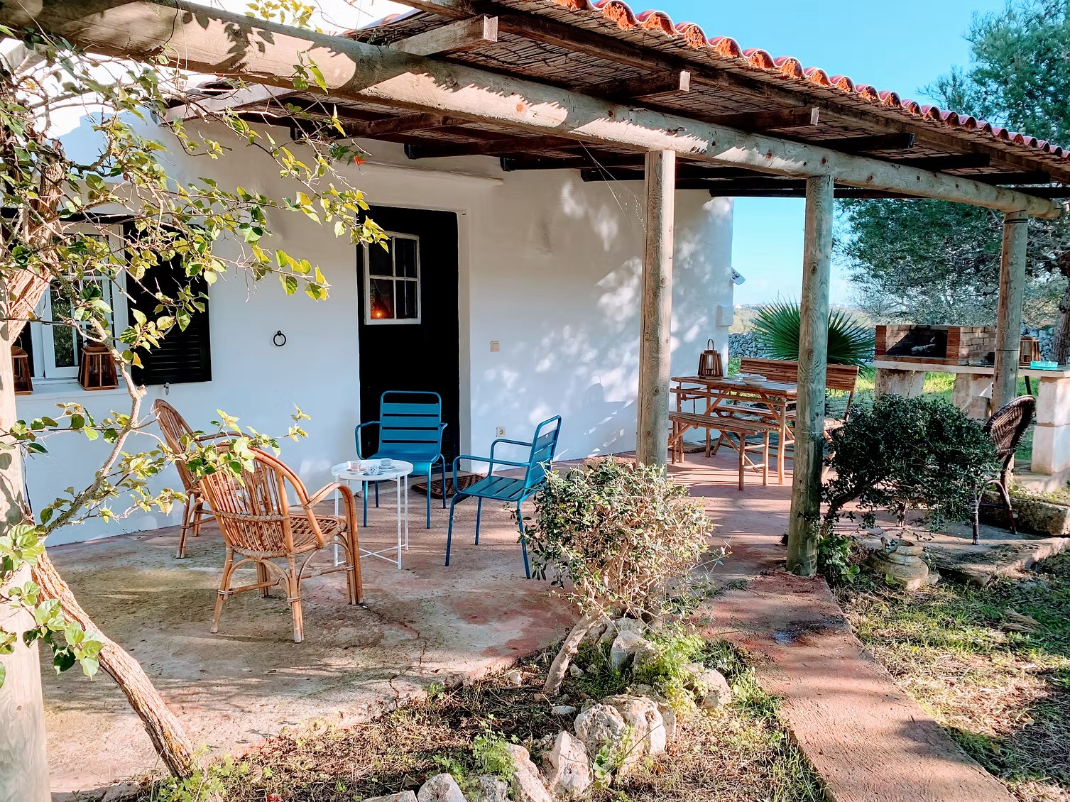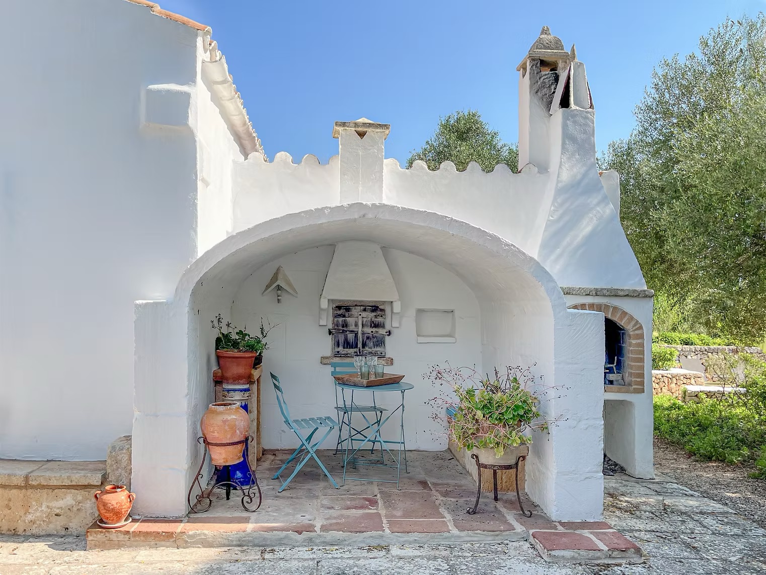 Here is a typically Menorcan house set in the rural area of S’Uestrá / Binidalí, close to the village of Sant Lluís, where you’ll find shops, bars, restaurants, banks and a pharmacy. The beaches of Binibeca and Binissafúller are about a five-minute drive away.